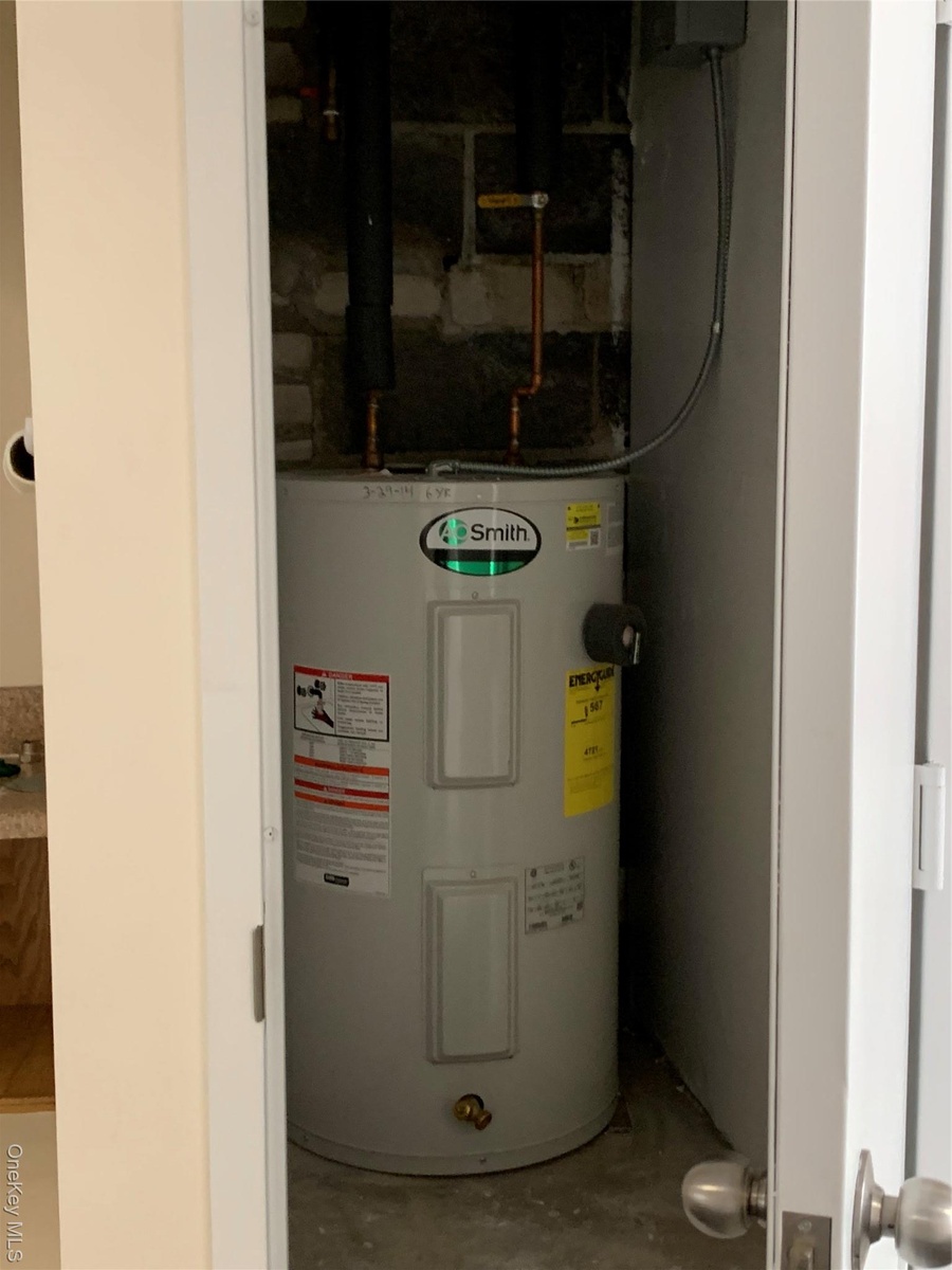 - Utility room featuring water heater