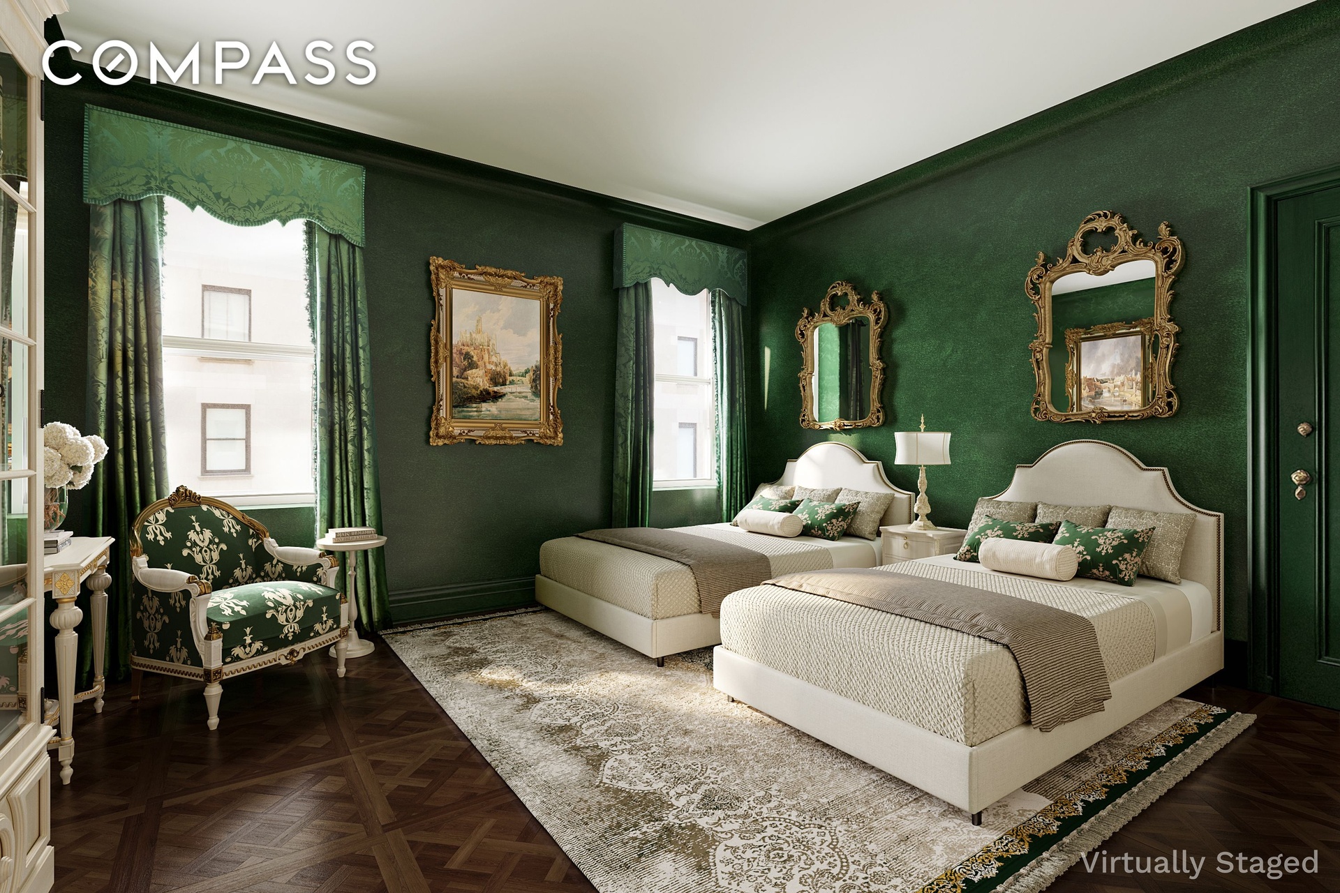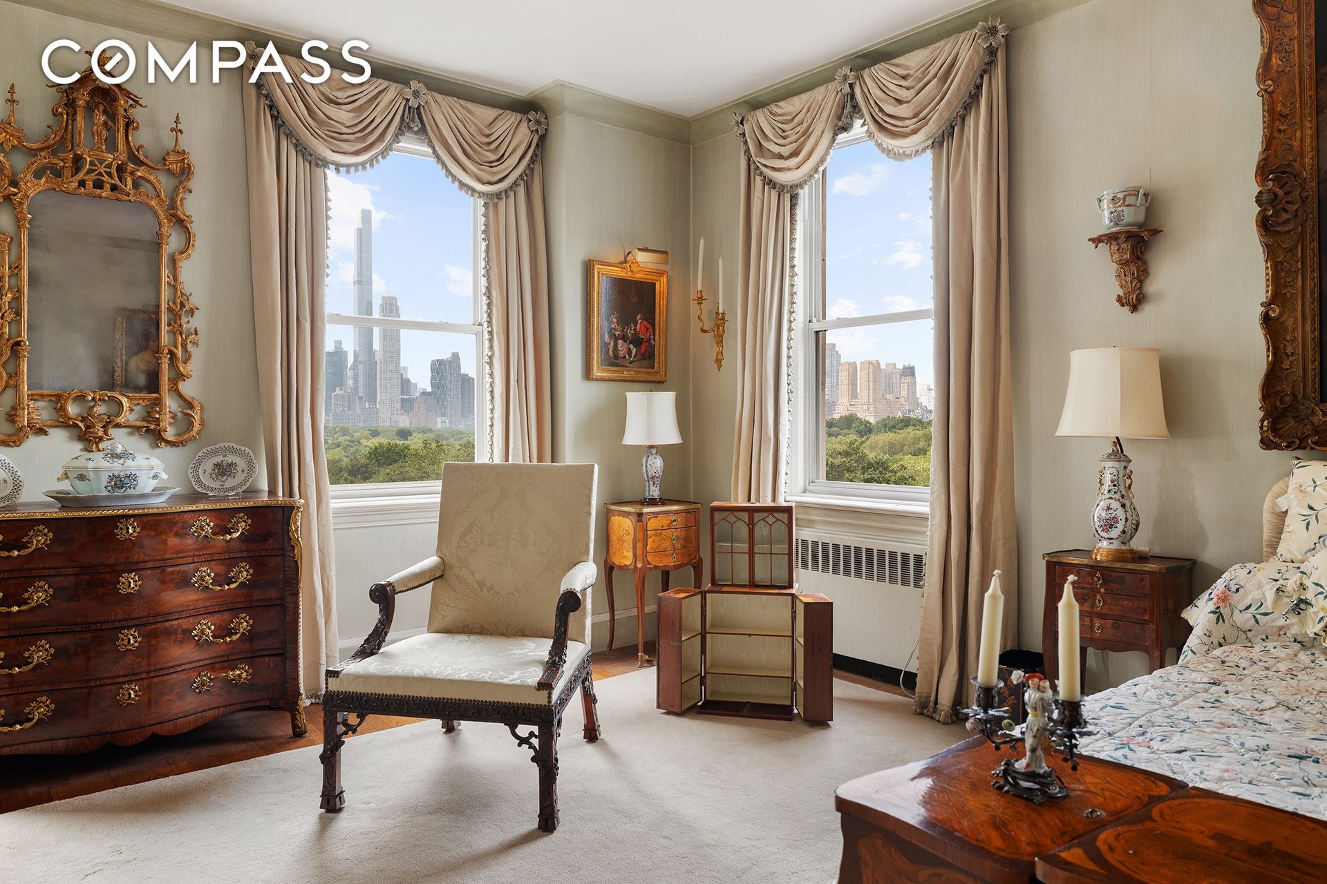This special residence has an extraordinary history. It was originally purchased by George Crawford in 1927, where he lived with his wife, Annie Laurie, and their daughter, Martha "Sunny" Sharp Crawford, the American heiress, who grew up in this apartment and went on to marry Prince Alfred von Auersperg of Austria and later Claus von Bülow.  Sunny's mother, Annie Laurie, later married Russell Barnett Aitken, a celebrated ceramic sculptor, sportsman, author, and big game hunter.  Together, they pursued their shared interests in houses, English and French furniture, arms and armor, and fine decoration, as well as many philanthropic causes. The Annie Laurie Aitken English Galleries and The Russell Barnett Aitken Arms and Armor Galleries, both at the Metropolitan Museum of Art, represent their generosity to that institution located across the street from their home. After nearly 30 years of marriage, Annie Laurie died in 1984. Years later, Russell Aitken married Irene Boyd Roosevelt, the widow of John Aspinwall Roosevelt, the youngest son of Eleanor and President Franklin D. Roosevelt, who lived in the apartment until her passing in the spring of 2025.