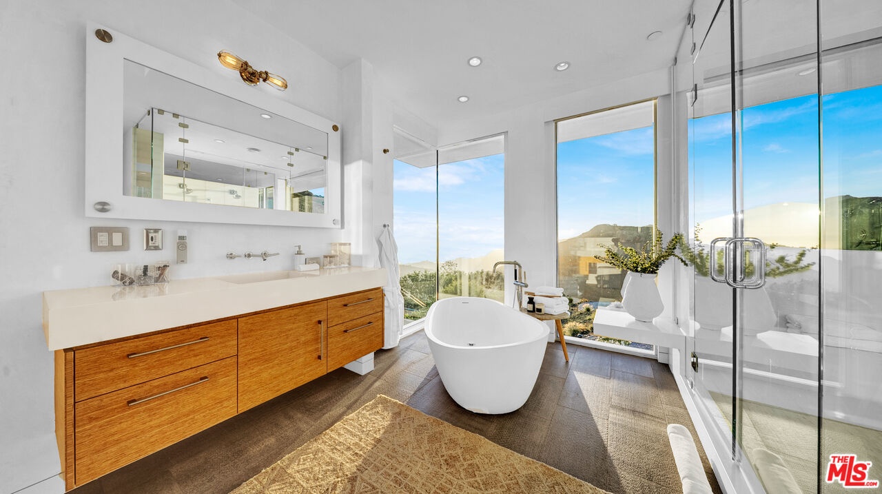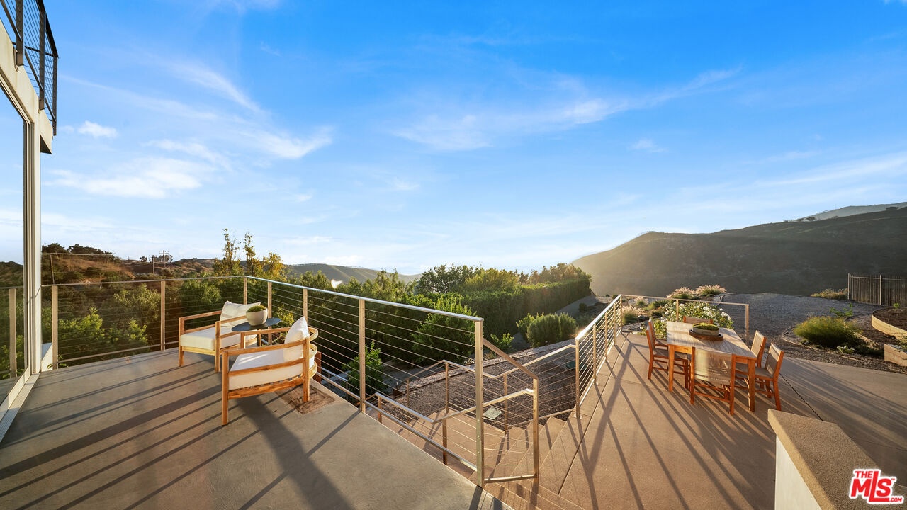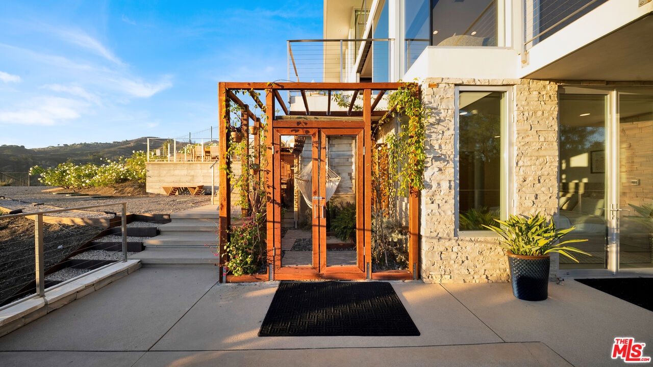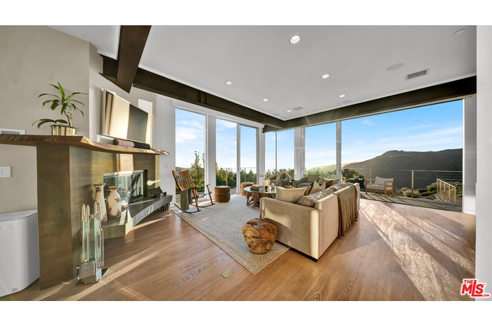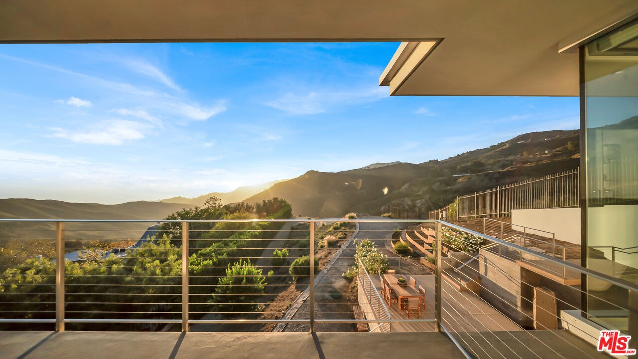 Experience one of Topanga's most captivating ocean-view estates, a modern architectural retreat surrounded by 2.4 acres of natural beauty. Set behind gates above Malibu's coastline, this residence captures sweeping vistas of the Pacific, rolling hills, and breathtaking sunsets that define coastal California living.Every detail was thoughtfully considered, blending steel, glass, and concrete with warm natural finishes to create a balanced, contemporary design. The home is equipped with solar power, backup energy systems, whole-home water filtration, and an upgraded Savant home automation platform that controls lighting, shades, sound, and climate throughout. A newly installed camera system enhances both security and convenience, and an electric vehicle charger adds everyday practicality.A serene water feature welcomes you at the entry, setting the tone for the tranquil atmosphere that flows throughout. Inside, walls of glass open to expansive patios, filling the interiors with natural light and cool ocean breezes. The living room centers around one of three fireplaces and connects effortlessly to the dining area and the chef's kitchen. The kitchen is an inspired space with professional-grade Wolf and Sub-Zero appliances, double ovens, multiple sinks, and dual Viking dishwashers, all curated for both daily living and entertaining.The ocean-view primary suite feels like a private retreat, with floor-to-ceiling glass, a spa-style bath with steam shower, and a spacious balcony perfect for morning coffee or sunset views. Two additional guest suites complete the main level, while the lower level features a media lounge with wet bar and an additional en suite bedroom ideal for a home office or gym.For cat lovers, the property includes a custom-built catio that blends seamlessly with the home's architecture, offering a safe outdoor space for pets to enjoy the fresh air.Designed for both connection and escape, this property offers privacy and scale while remaining only minutes from the beach via scenic Tuna Canyon Road. With parking for up to 10 cars, an electric vehicle charger, nearby hiking and biking trails, and cinematic ocean views from nearly every room, it's a rare opportunity to experience design, nature, and coastal living in perfect harmony.