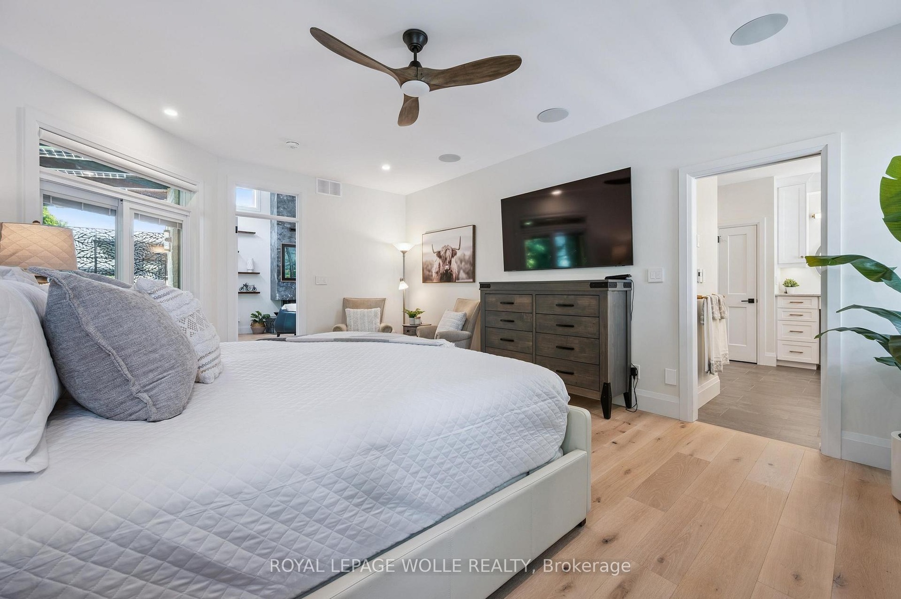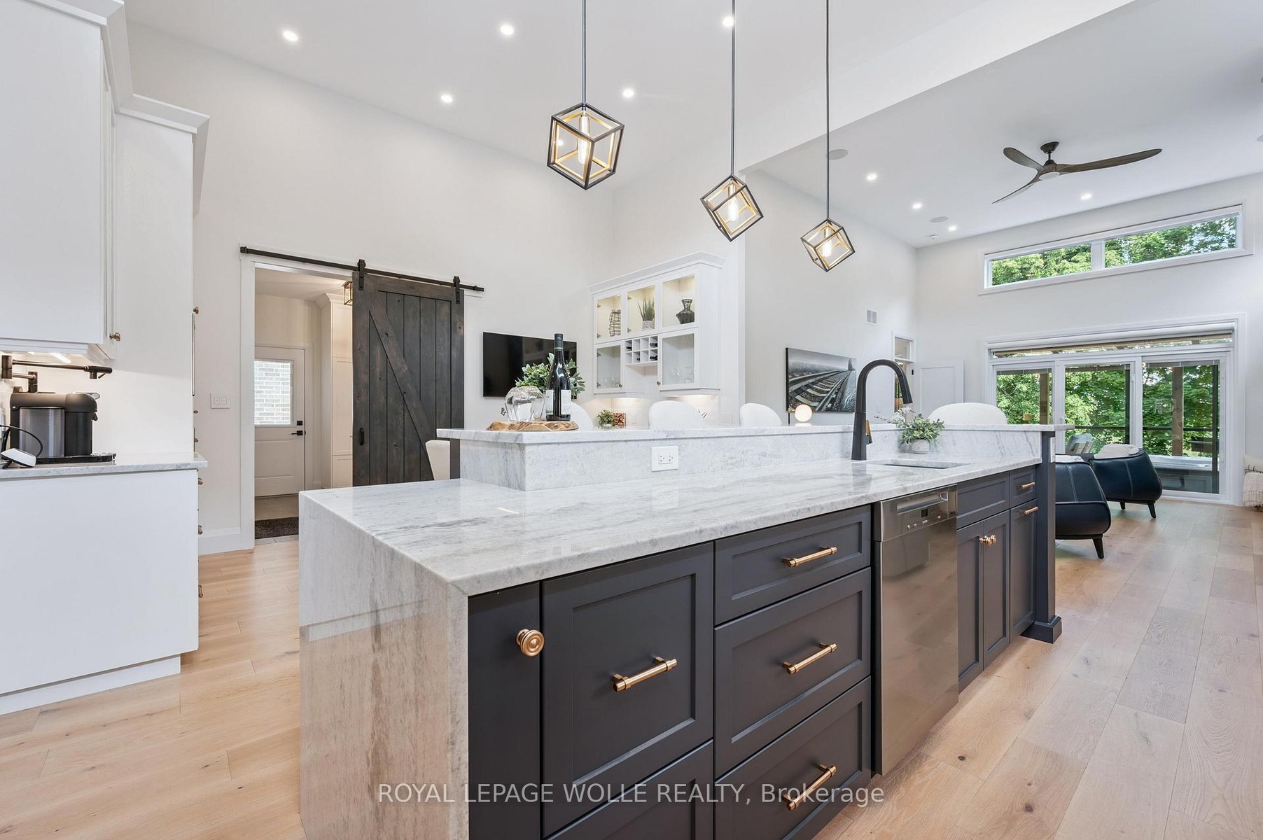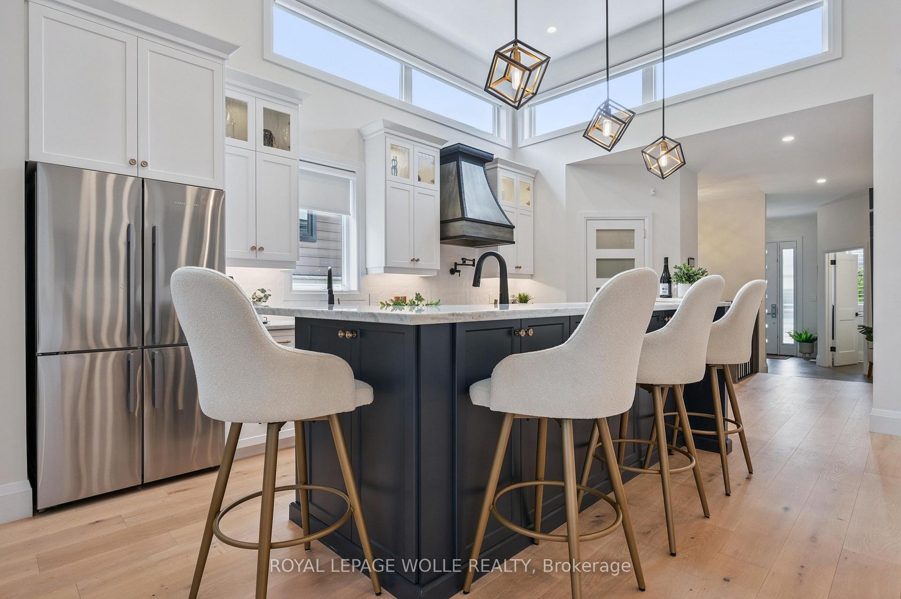 SPECTACULAR ONE OF A KIND HOME! Welcome to this stunning, energy efficient, smart home with $422k in owner upgrades and $250k in builder upgrades! This executive style 1+1 bed bungalow, located just outside Waterloo, in Elmira, provides the conveniences you didn't know you needed. Enjoy your very own home technology assistant (AKA Josh) which controls the lights, fireplaces, speaker system, custom electric blinds and much more. This home offers owned solar panels which generate enough power to cover the majority of your hydro costs, year round and a comprehensive Tesla generator system is in place as back up, should you need it. Stepping into the home you'll be amazed by the soaring 13.5 ft high ceilings in the main living space. An entertainers dream Kitchen, living and dining area, all centered around the floor to ceiling porcelain surround fireplace and exquisite kitchen hood range and cabinetry. Many unique features enjoyed in this main kitchen and dining space including a pot filler at your coffee bar, a bar area with wine cooler, high end appliances and stunning quartz countertops. The oversized primary bedroom features a massive ensuite with walk in porcelain shower & large walk in closet. Doors off the living room and primary bedroom lead to your very own private backyard oasis with covered deck, luxury hot tub and underneath the deck you'll find a workshop fully enclosed in concrete. The 2 car garage enjoys heated epoxy floors, 2 electric EV chargers, high end cabinets & an additional heater for your convenience. The basement provides great inlaw potential or additional living space, perfect for entertaining, with in floor heating, a custom wet bar/ kitchenette open onto a large living room with built in electric fireplace, space for dining or games and tons of storage. A bedroom with a walk-in closet and a 3 piece bathroom complete this level. There is so much to see with this thoughtfully designed & fully custom home. Book your private tour today!