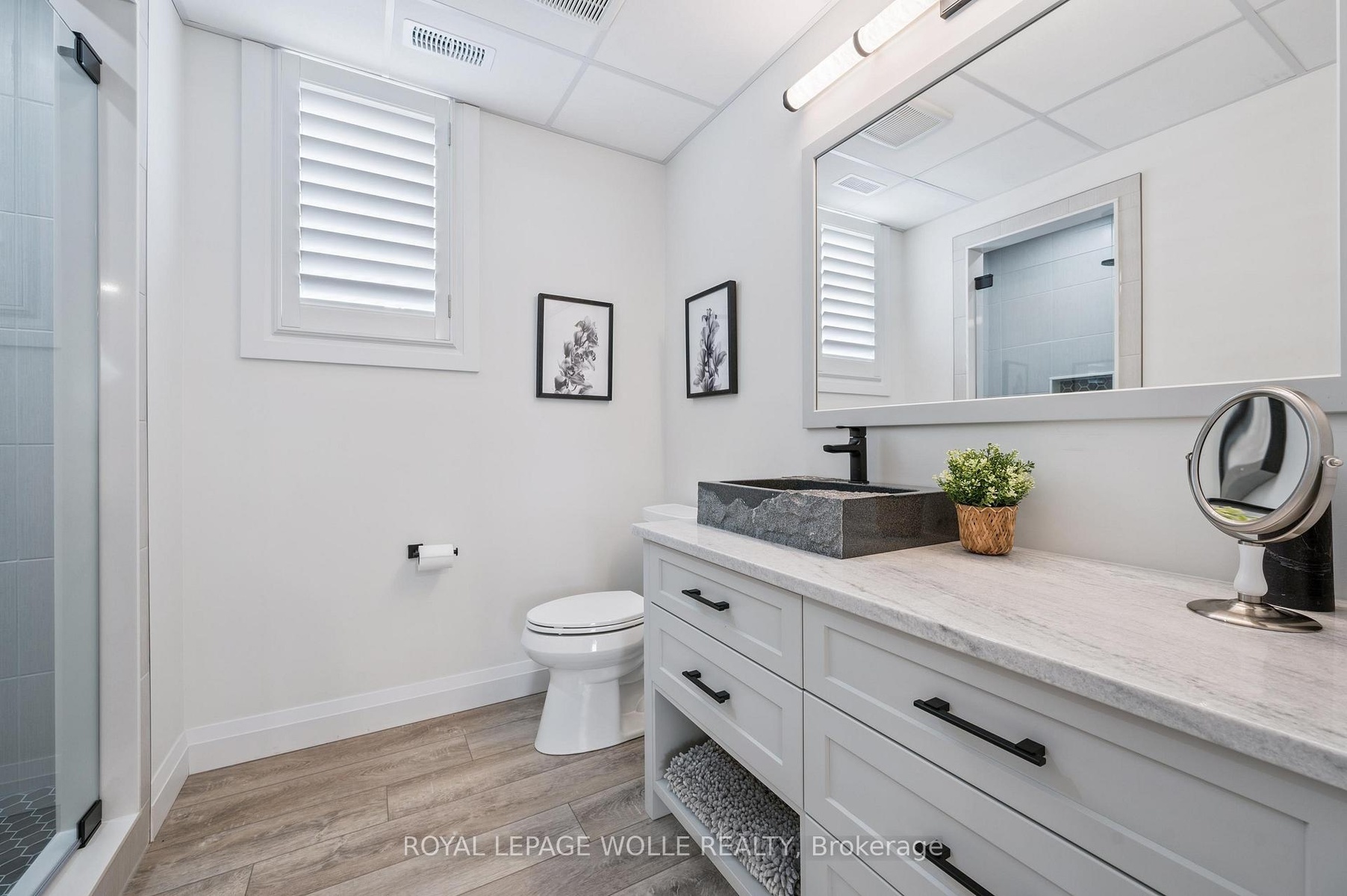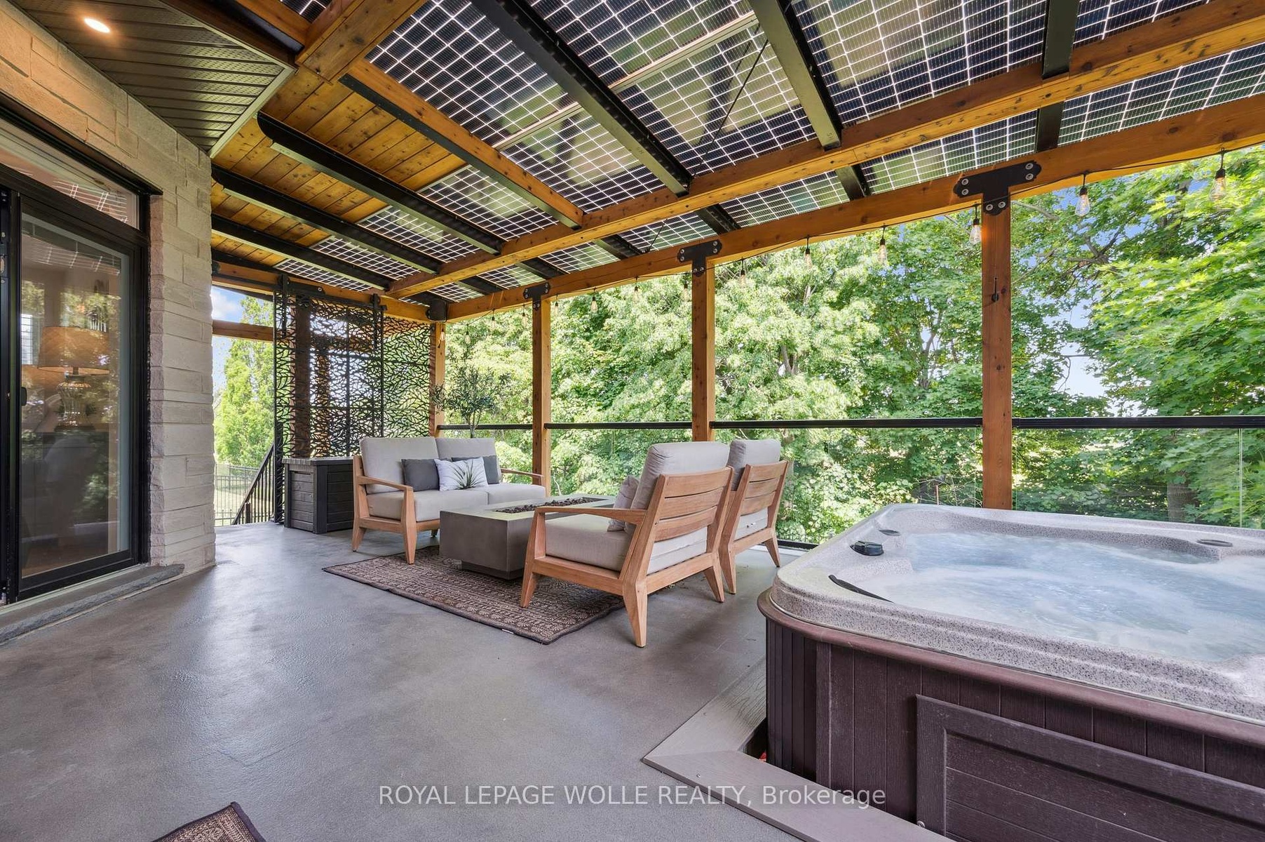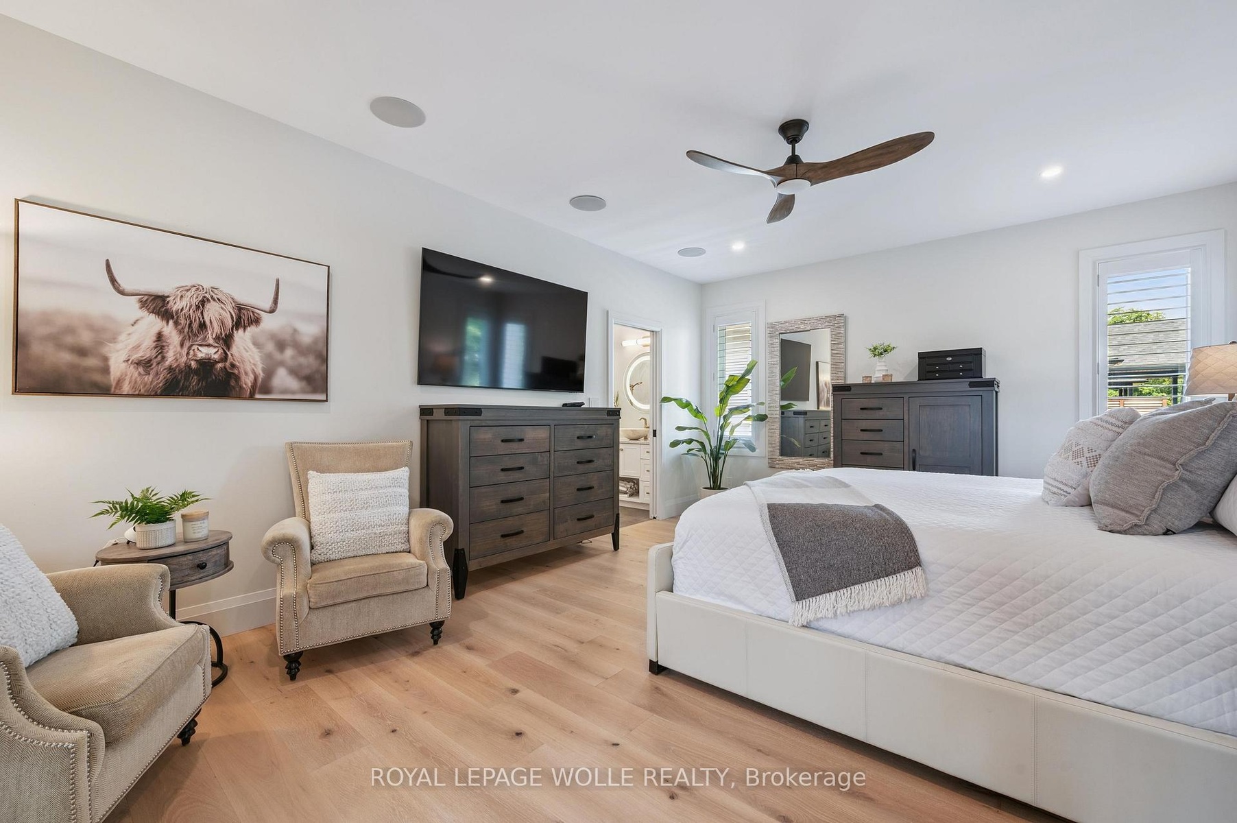 SPECTACULAR ONE OF A KIND HOME! Welcome to this stunning, energy efficient, smart home with $422k in owner upgrades and $250k in builder upgrades! This executive style 1+1 bed bungalow, located just outside Waterloo, in Elmira, provides the conveniences you didn't know you needed. Enjoy your very own home technology assistant (AKA Josh) which controls the lights, fireplaces, speaker system, custom electric blinds and much more. This home offers owned solar panels which generate enough power to cover the majority of your hydro costs, year round and a comprehensive Tesla generator system is in place as back up, should you need it. Stepping into the home you'll be amazed by the soaring 13.5 ft high ceilings in the main living space. An entertainers dream Kitchen, living and dining area, all centered around the floor to ceiling porcelain surround fireplace and exquisite kitchen hood range and cabinetry. Many unique features enjoyed in this main kitchen and dining space including a pot filler at your coffee bar, a bar area with wine cooler, high end appliances and stunning quartz countertops. The oversized primary bedroom features a massive ensuite with walk in porcelain shower & large walk in closet. Doors off the living room and primary bedroom lead to your very own private backyard oasis with covered deck, luxury hot tub and underneath the deck you'll find a workshop fully enclosed in concrete. The 2 car garage enjoys heated epoxy floors, 2 electric EV chargers, high end cabinets & an additional heater for your convenience. The basement provides great inlaw potential or additional living space, perfect for entertaining, with in floor heating, a custom wet bar/ kitchenette open onto a large living room with built in electric fireplace, space for dining or games and tons of storage. A bedroom with a walk-in closet and a 3 piece bathroom complete this level. There is so much to see with this thoughtfully designed & fully custom home. Book your private tour today!