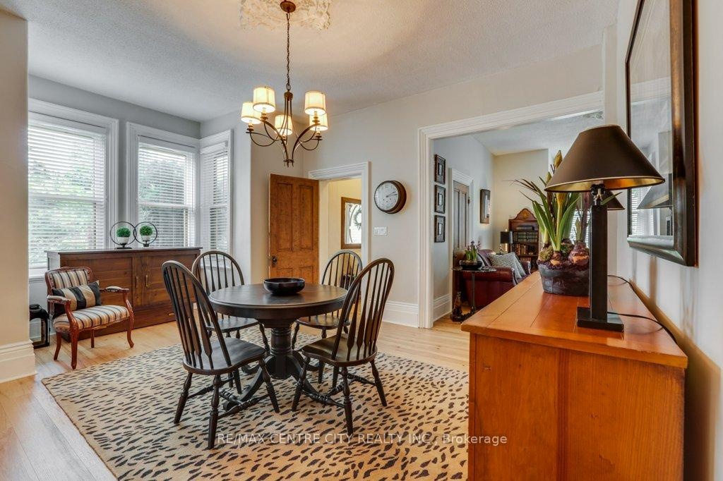 Welcome to 65 Bruce Street, a beautifully preserved circa 1893 century home located in the heart of the award-winning Wortley Village. This charming duplex offers a rare blend of historic character and modern functionality, ideal for both owner-occupiers and investors alike. Situated on a corner lot with two driveways and ample parking, the home spans over 2,700 sq. ft. of meticulously maintained living space and offers excellent income potential with the main floor unit estimated to generate $2,500+/month and the upper unit $2,300+/month. The main floor unit features two spacious bedrooms, a 4-piece bath, and an expansive living/dining area highlighted by bay windows that fill the space with natural light. 10-foot ceilings add to the sense of openness, while new hardwood floors (2021) bring warmth and timeless appeal. Additional updates include in-unit laundry (2022) and a new dishwasher (2022) for everyday convenience. Step outside to enjoy a private courtyard, beautifully landscaped with stone and lush gardens-an ideal spot for relaxing or entertaining.Upstairs, the three-bedroom, 4-piece bath unit offers a functional layout with a galley kitchen that includes a new butcher block countertop, granite sink with gooseneck faucet, and a refrigerator (2022). A cozy sunroom provides a peaceful space to unwind,and laundry facilities are available in the basement. There is also potential for further development in the attic, offering even more versatility.Extensive recent upgrades enhance both the property's aesthetic and long-term durability, including paved driveway (2022), gutter guard installation (2022), flat and sloped roof replacements (2023), exterior painting (2023), and multiple interior lighting upgrades (2022). With its unbeatable location, historic charm, and modern enhancements, 65 Bruce Street is a truly exceptional opportunity in one of London's most desirable neighbourhoods.