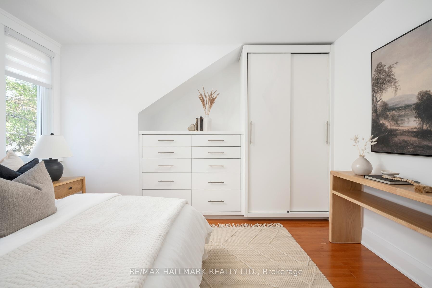 An exceptional offering on Mountjoy, just steps away from beautiful Fieldsted Park .This impeccably renovated 3+1 Bed, 3.5 bath, 2-storey detached home with over 2200 sq. ft. of living space, including the basement, and sitting on a large 22*100 ft lot with two parallel parking spaces through a laneway. It showcases exquisite craftsmanship, premium finishes, and a nearly 7-ft high ceiling professionally finished basement with a walk-out. The main floor features a cozy, enclosed porch with exposed brick, a welcoming foyer with a double closet, and a bright open-concept with hardwood floors and pot lights. The modern kitchen is equipped with granite countertops, sleek custom cabinetry, ceramic flooring, pot lights, and stainless steel appliances. A convenient powder room and a laundry complete this floor, along with a walk-out to a private deck with built-in seating. Upstairs, the bright and spacious primary bedroom offers a 3-piece ensuite bath, double windows, two large double closets, 10 built-in drawers and extra storage. Two additional bedrooms featuring hardwood floors and bright windows share a stylish 4-piece bathroom. All windows on the main and second floors are fitted with custom blinds. The finished basement features a sprawling recreation/sitting room, a beautifully finished 3-piece bathroom, and a spacious additional bedroom. The main level boasts an elegant open-concept layout, illuminated by a stunning bay window that floods the space with natural light. Situated on an oversized lot within walking distance to the Greenwood subway station, and all essential amenities on The Danforth offering boutique cafes, dining and shopping. Whether for families, professionals, or investors, this home delivers sophisticated living, multi-functional space, and outstanding long-term value. A rare, refined, and move-in-ready gem truly exceptional in every way. Must see in person !