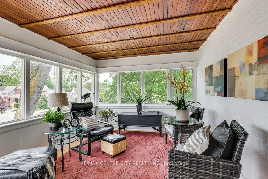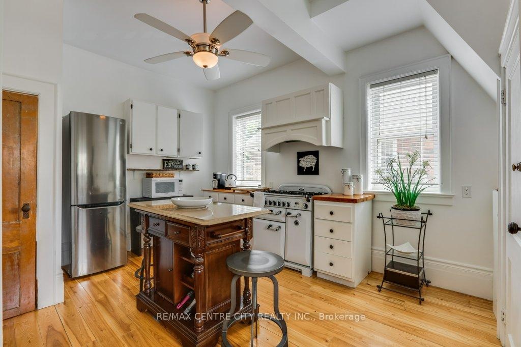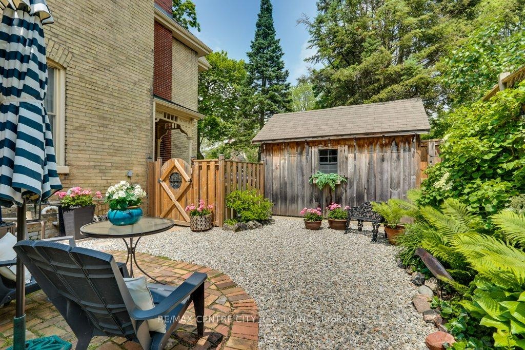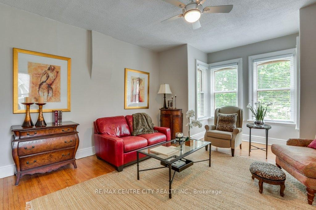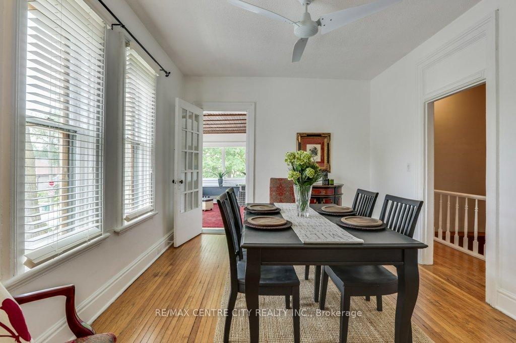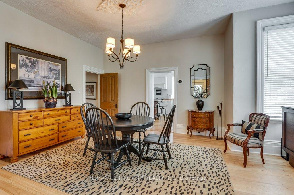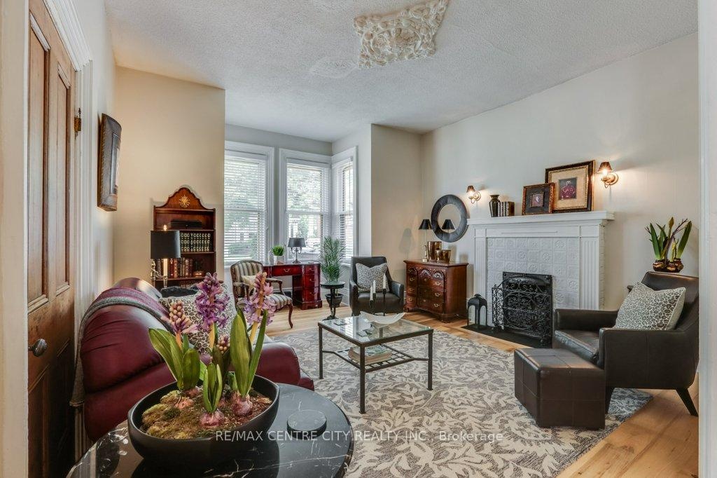 Welcome to 65 Bruce Street, a beautifully preserved circa 1893 century home located in the heart of the award-winning Wortley Village. This charming duplex offers a rare blend of historic character and modern functionality, ideal for both owner-occupiers and investors alike. Situated on a corner lot with two driveways and ample parking, the home spans over 2,700 sq. ft. of meticulously maintained living space and offers excellent income potential with the main floor unit estimated to generate $2,500+/month and the upper unit $2,300+/month. The main floor unit features two spacious bedrooms, a 4-piece bath, and an expansive living/dining area highlighted by bay windows that fill the space with natural light. 10-foot ceilings add to the sense of openness, while new hardwood floors (2021) bring warmth and timeless appeal. Additional updates include in-unit laundry (2022) and a new dishwasher (2022) for everyday convenience. Step outside to enjoy a private courtyard, beautifully landscaped with stone and lush gardens-an ideal spot for relaxing or entertaining.Upstairs, the three-bedroom, 4-piece bath unit offers a functional layout with a galley kitchen that includes a new butcher block countertop, granite sink with gooseneck faucet, and a refrigerator (2022). A cozy sunroom provides a peaceful space to unwind,and laundry facilities are available in the basement. There is also potential for further development in the attic, offering even more versatility.Extensive recent upgrades enhance both the property's aesthetic and long-term durability, including paved driveway (2022), gutter guard installation (2022), flat and sloped roof replacements (2023), exterior painting (2023), and multiple interior lighting upgrades (2022). With its unbeatable location, historic charm, and modern enhancements, 65 Bruce Street is a truly exceptional opportunity in one of London's most desirable neighbourhoods.