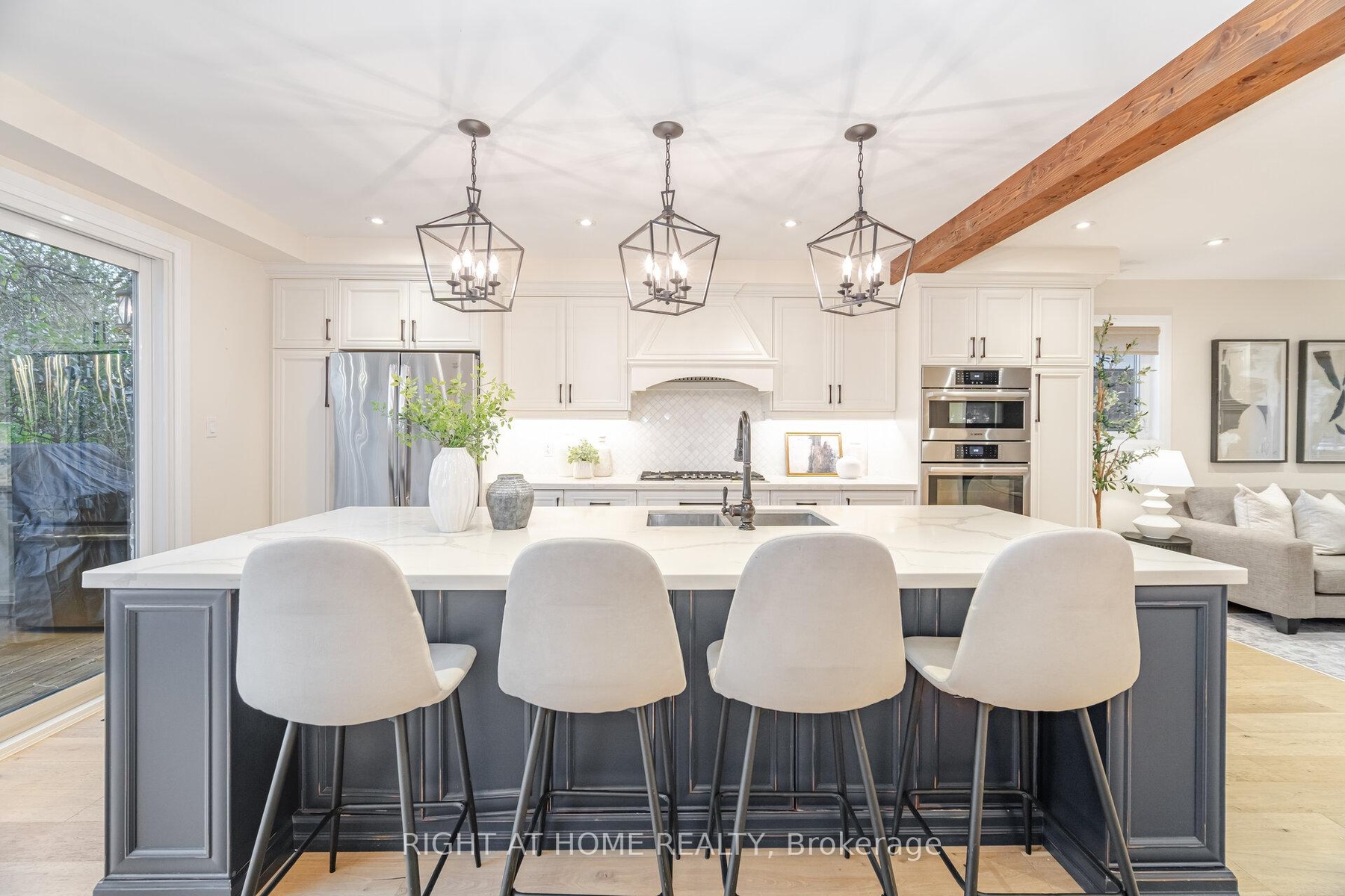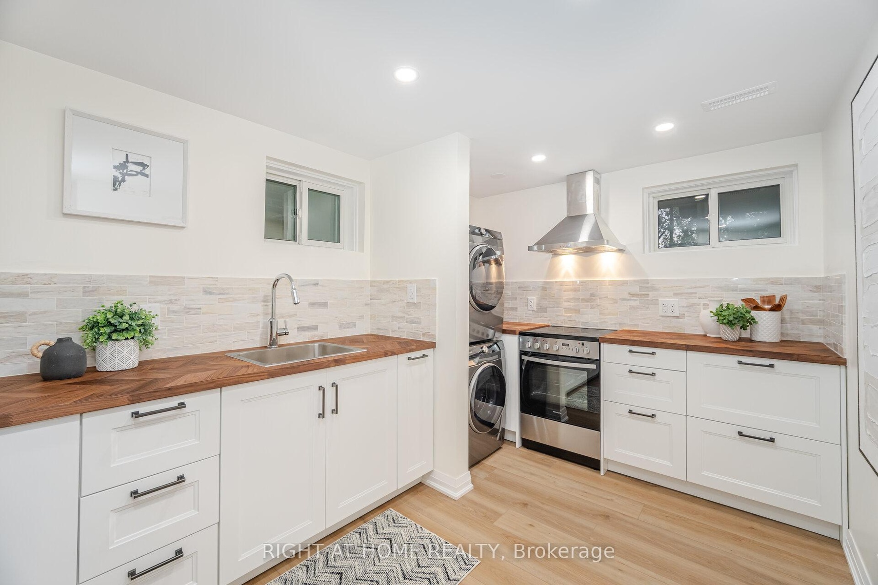 Welcome to the perfect blend of lakeside tranquility & the conveniences of city life. Situated between the Long Branch GO Station and Lake Ontario; this beautifully renovated home offers the best of both worlds. Enjoy proximity to Marie Curtis Park which is one block away, an outdoor exercise circuit, playground, wading pool, beaches and the upcoming Jim Tovey Conservation Area (2026), which will seamlessly link the Waterfront Trail between Toronto and Mississauga. Easy access to major highways & nearby shops & restaurants makes this location ideal for ease of living. Inside, the home has been beautifully updated with custom finishes throughout, including built-in cabinetry, a cozy reading bench, custom closets, shutters, blinds, accent walls, pocket doors, a stylish office nook, & engineered oak hardwood floors. Mechanical, electrical, heating, insulation & plumbing systems have been upgraded, making this a true turnkey home ready to move in & enjoy. On the main floor, enjoy open-concept living with a gourmet custom kitchen featuring an oversized maple island, quartz countertops, & grand sliding doors that fill the space with natural light. Step outside to a two-level deck overlooking green space with no homes overlooking the backyard at the edge of the property line thanks to the elevated lot. Upstairs features three bedrooms, including a spacious primary suite with a large ensuite washroom. The upper level also includes an abundance of windows, another four-piece washroom, laundry room with built-in cabinetry & a versatile landing area perfect for a second office or reading space. The basement offers exceptional flexibility complete with a side-door entry, two bedrooms, a full kitchen, a full bathroom, & a recreation room. It's ideal as a nanny or in-law suite, or as additional living space.The home offers sophisticated design, thoughtful upgrades, neutral color palette and an unbeatable location. Welcome to your next chapter!   See upgrades sheet & virtual tour.