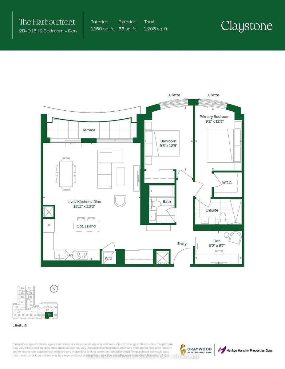 PRECONSTRUCTION DIRECT FROM BUILDER. GST RELIEF FOR ELIGIBLE PURCHASERS. Total 1203sf. Interior: 1150sf, Balcony: 53sf. Capturing the essence of Lakeshore living, Claystone will be located at 2375 Lakeshore Rd. W in the heart of Bronte Village in South Oakville. Located in the heart of Bronte Village in South Oakville, Claystone offers a prime Lakeshore address that combines the charm of small-town living with the convenience of urban amenities. Rising seven storeys, this boutique condominium has been designed by award winning Diamond Schmitt Architects and will offer a selection of sophisticated 1, 2 and 3 bedroom + den residences, elevated amenities and an unbeatable location in one of Ontario's most coveted communities