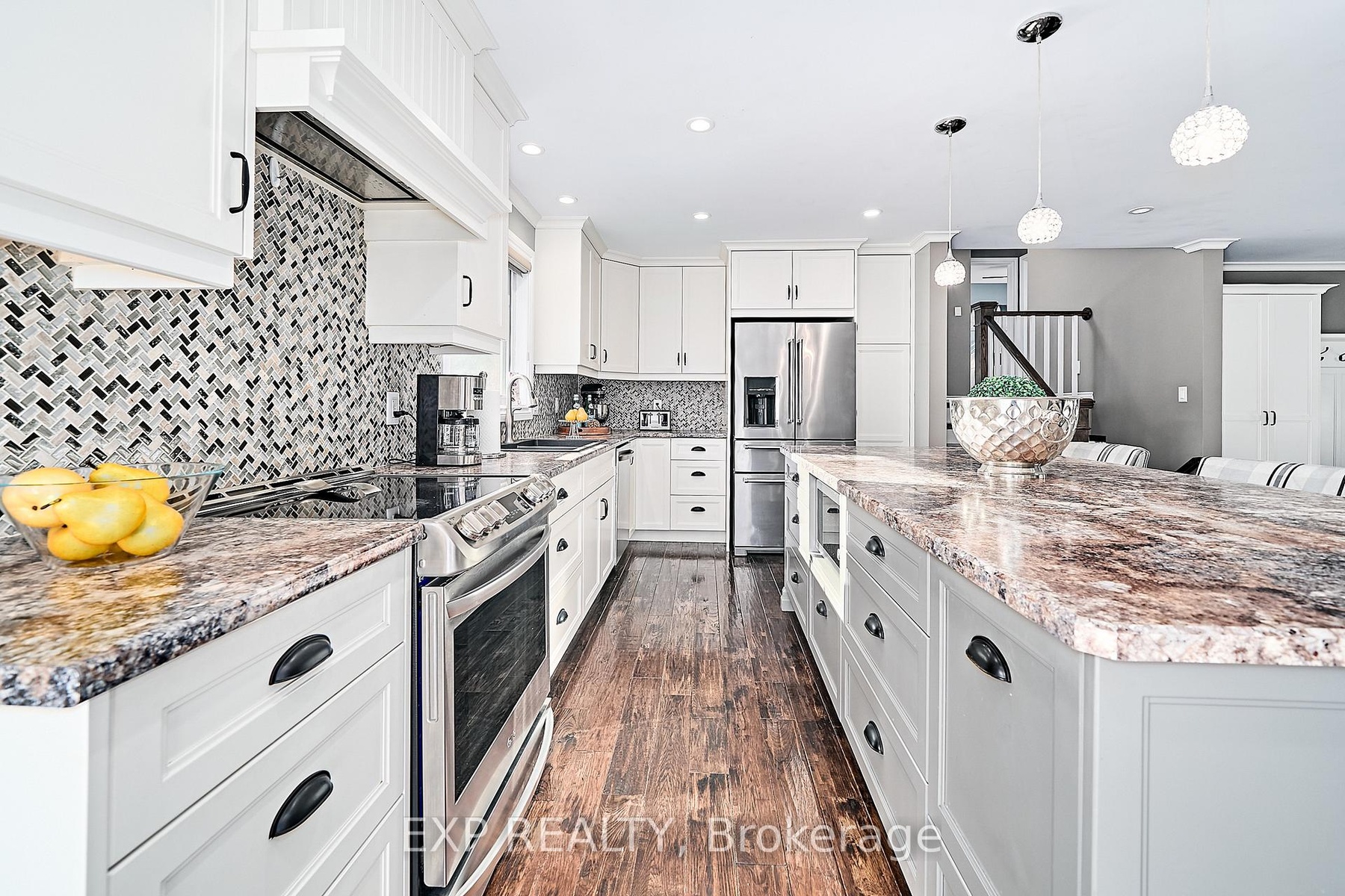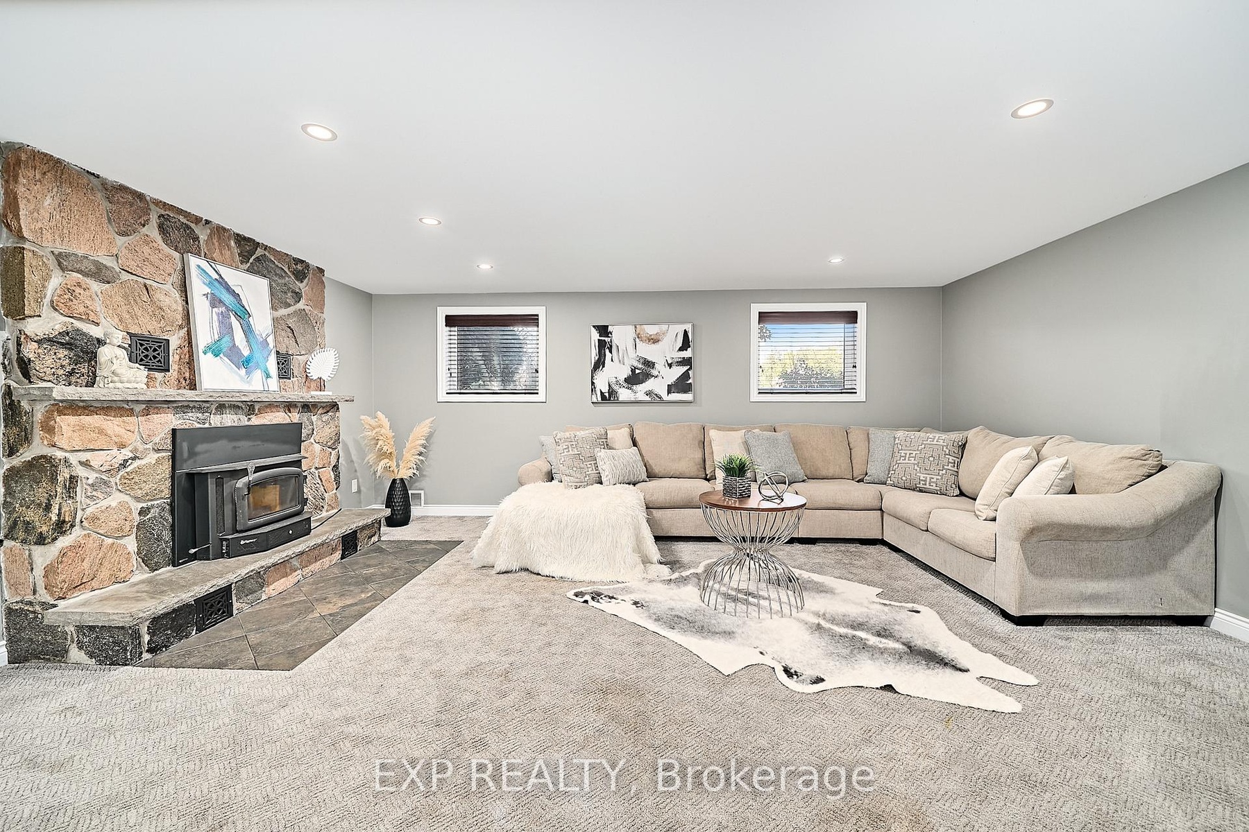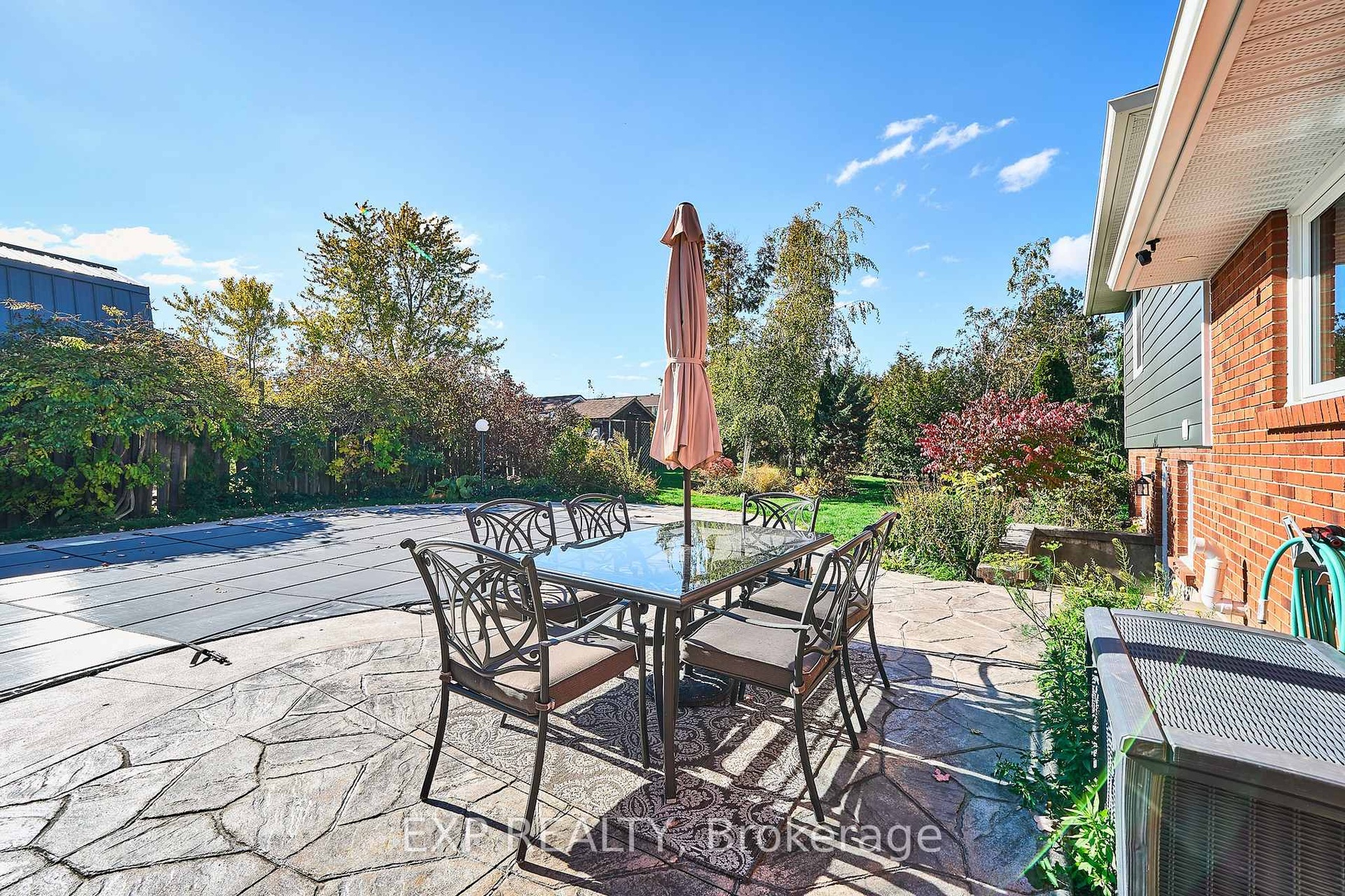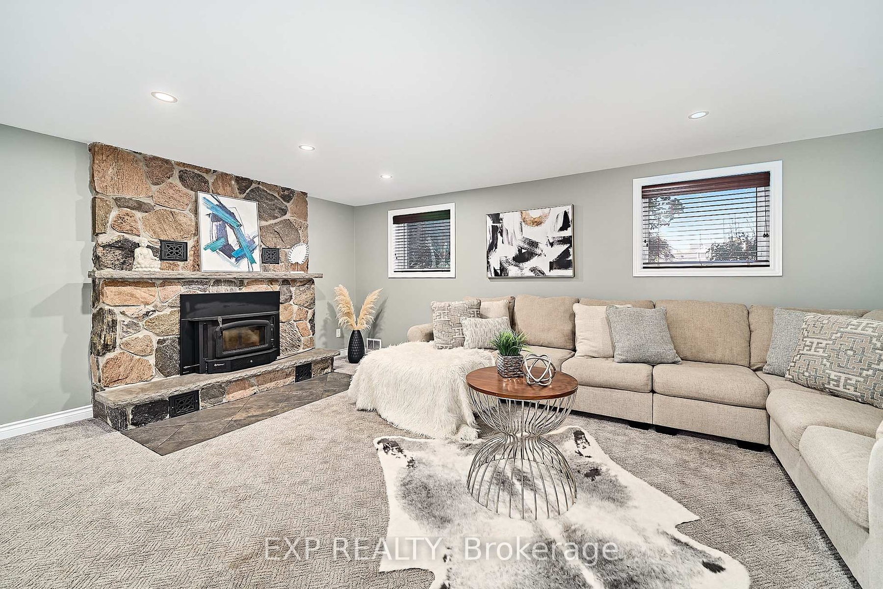 Updated & Upgraded this beautifull renovated, fully finished 4-level side split is nestled away on a cul-de-sac featuring a spectacular pie-shaped lot. The fully fenced backyard gives you the perfect entertaining spot, with an inviting in-ground pool, a stamped concrete patio, + small stocked pond & a covered porch. Inside discover an open concept main floor that boasts hardwood flooring & a custom kitchen. The lower levels have a Private & Separate Entrance with Bedroom & Bath large windows & a wood-burning fireplace. The basement includes an additional games room, providing ample space for guests or family activities. The home has excellent curb appeal with a double-wide asphalt driveway & a stamped concrete walkway leading to a covered front porch. Updates: 24 - soffits/fascia/eavestroughs/ siding, pool pump, front door/garage window; 23 - garage door; 22 - pool heater; 19 - baseboard & interior doors; 16 - kitchen; 15 - topped up attic insulation; 13- 16 - windows/exterior doors; 08 - shingles.