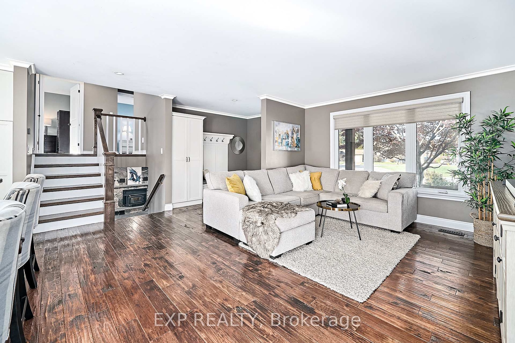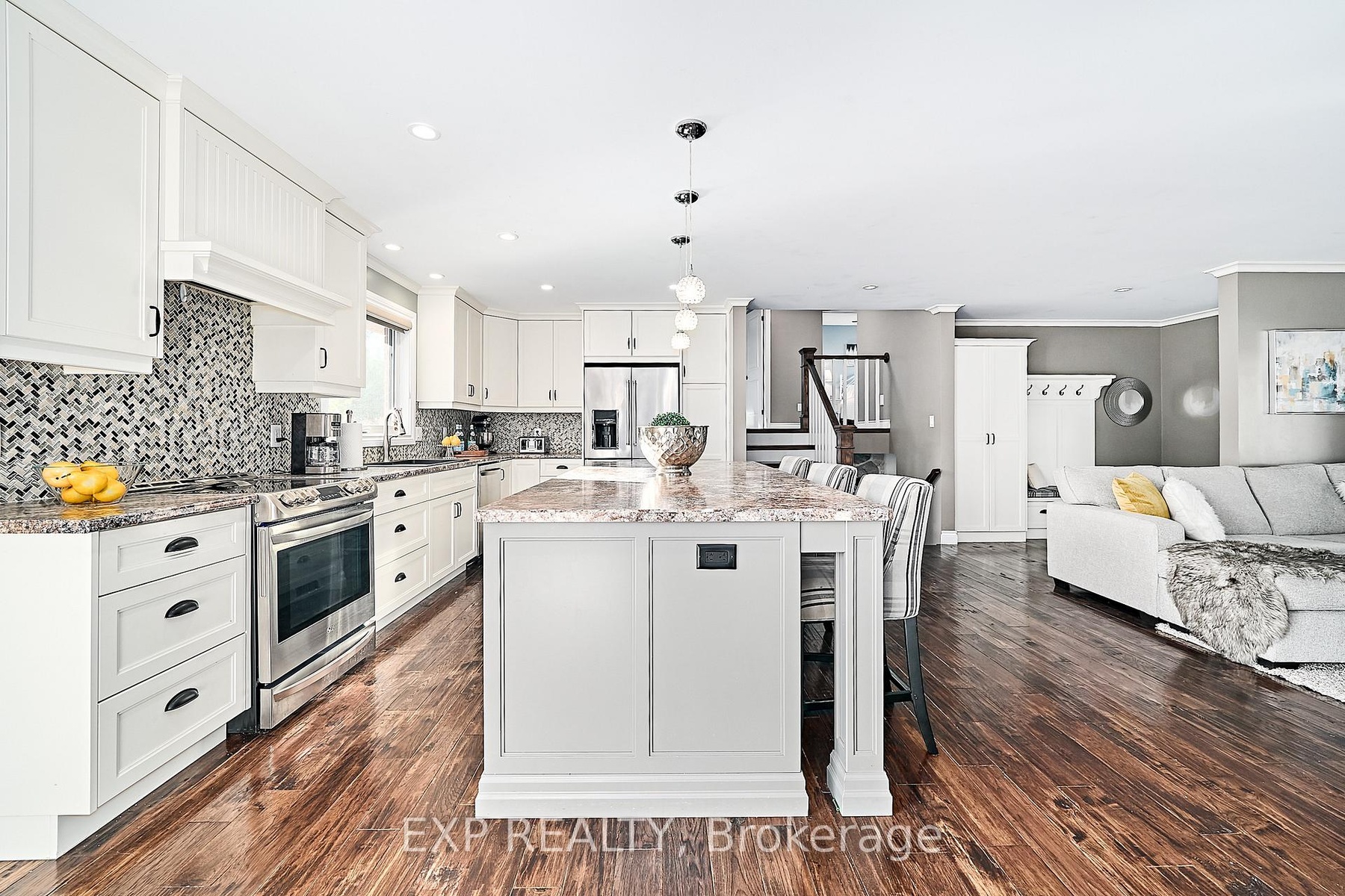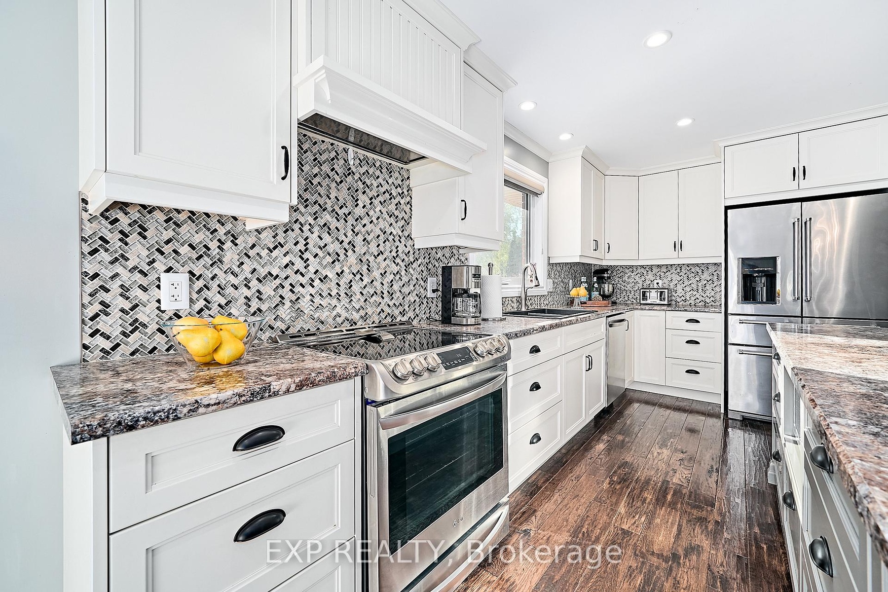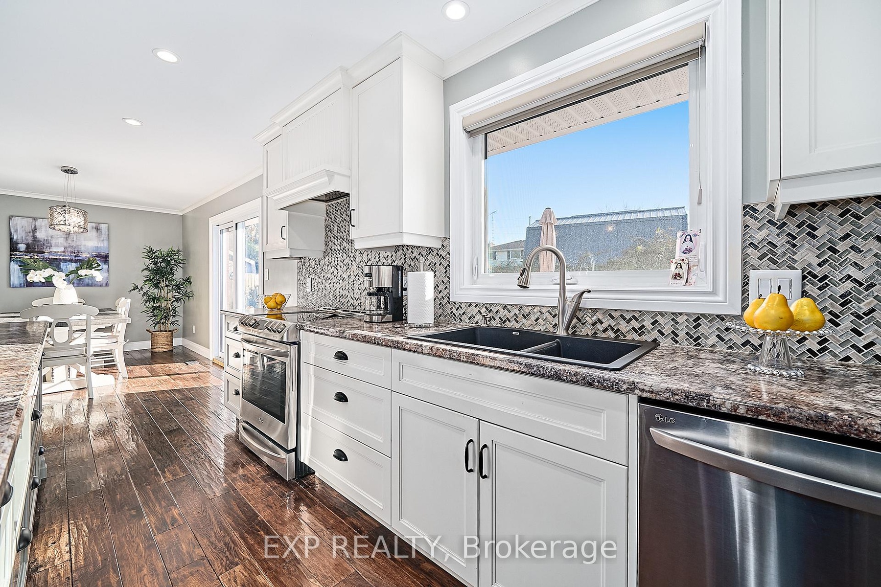 Updated & Upgraded this beautifull renovated, fully finished 4-level side split is nestled away on a cul-de-sac featuring a spectacular pie-shaped lot. The fully fenced backyard gives you the perfect entertaining spot, with an inviting in-ground pool, a stamped concrete patio, + small stocked pond & a covered porch. Inside discover an open concept main floor that boasts hardwood flooring & a custom kitchen. The lower levels have a Private & Separate Entrance with Bedroom & Bath large windows & a wood-burning fireplace. The basement includes an additional games room, providing ample space for guests or family activities. The home has excellent curb appeal with a double-wide asphalt driveway & a stamped concrete walkway leading to a covered front porch. Updates: 24 - soffits/fascia/eavestroughs/ siding, pool pump, front door/garage window; 23 - garage door; 22 - pool heater; 19 - baseboard & interior doors; 16 - kitchen; 15 - topped up attic insulation; 13- 16 - windows/exterior doors; 08 - shingles.