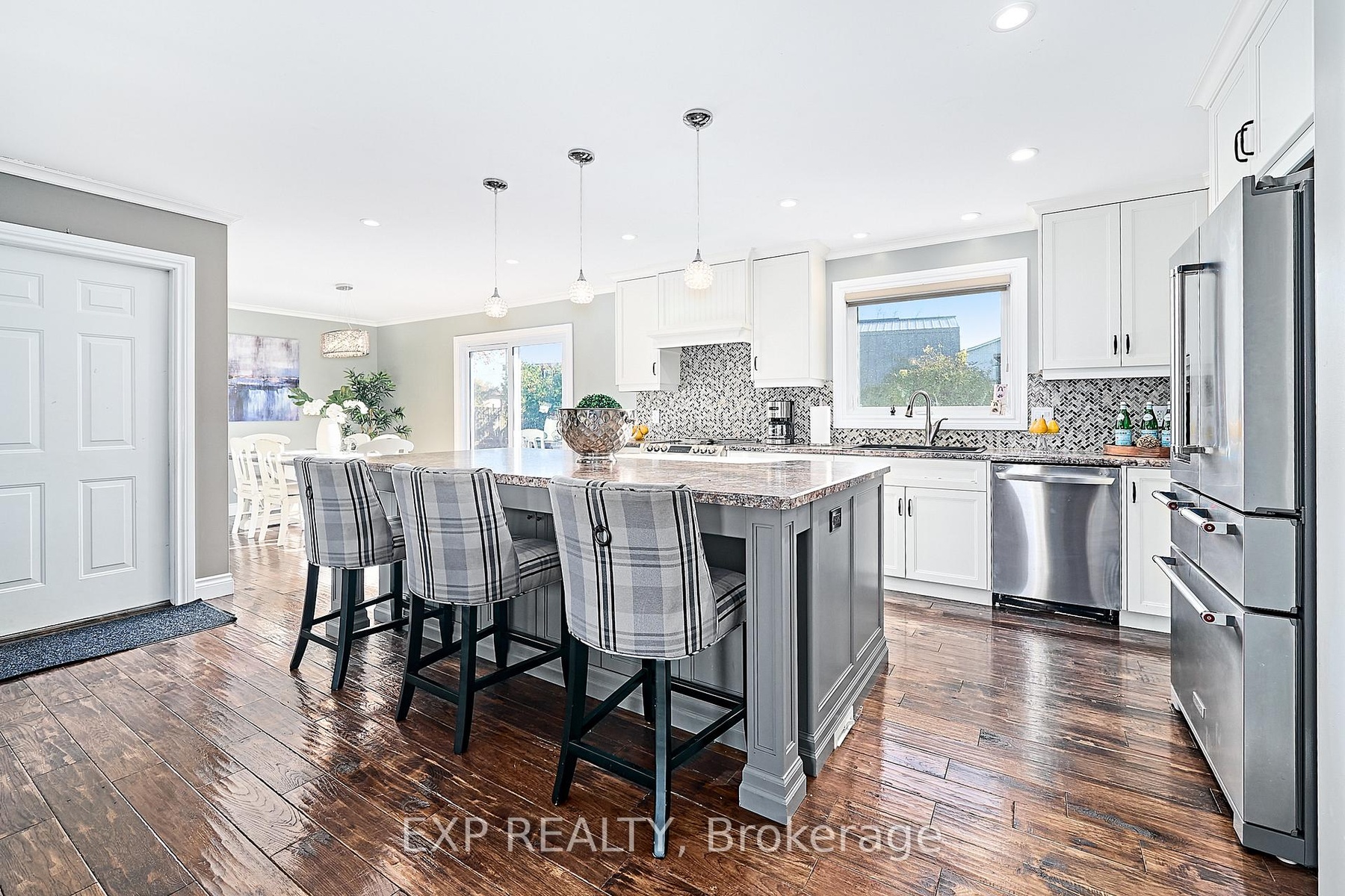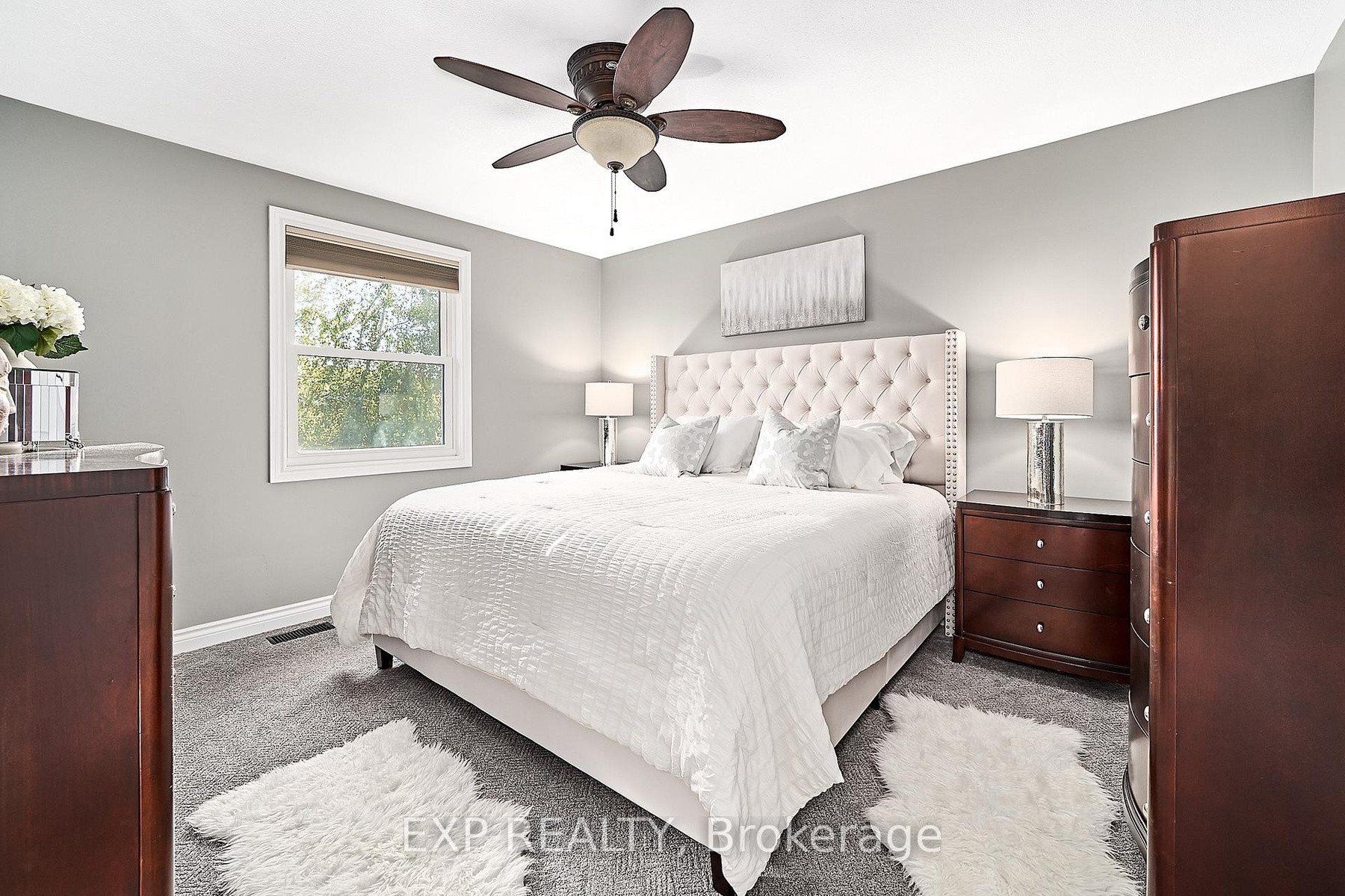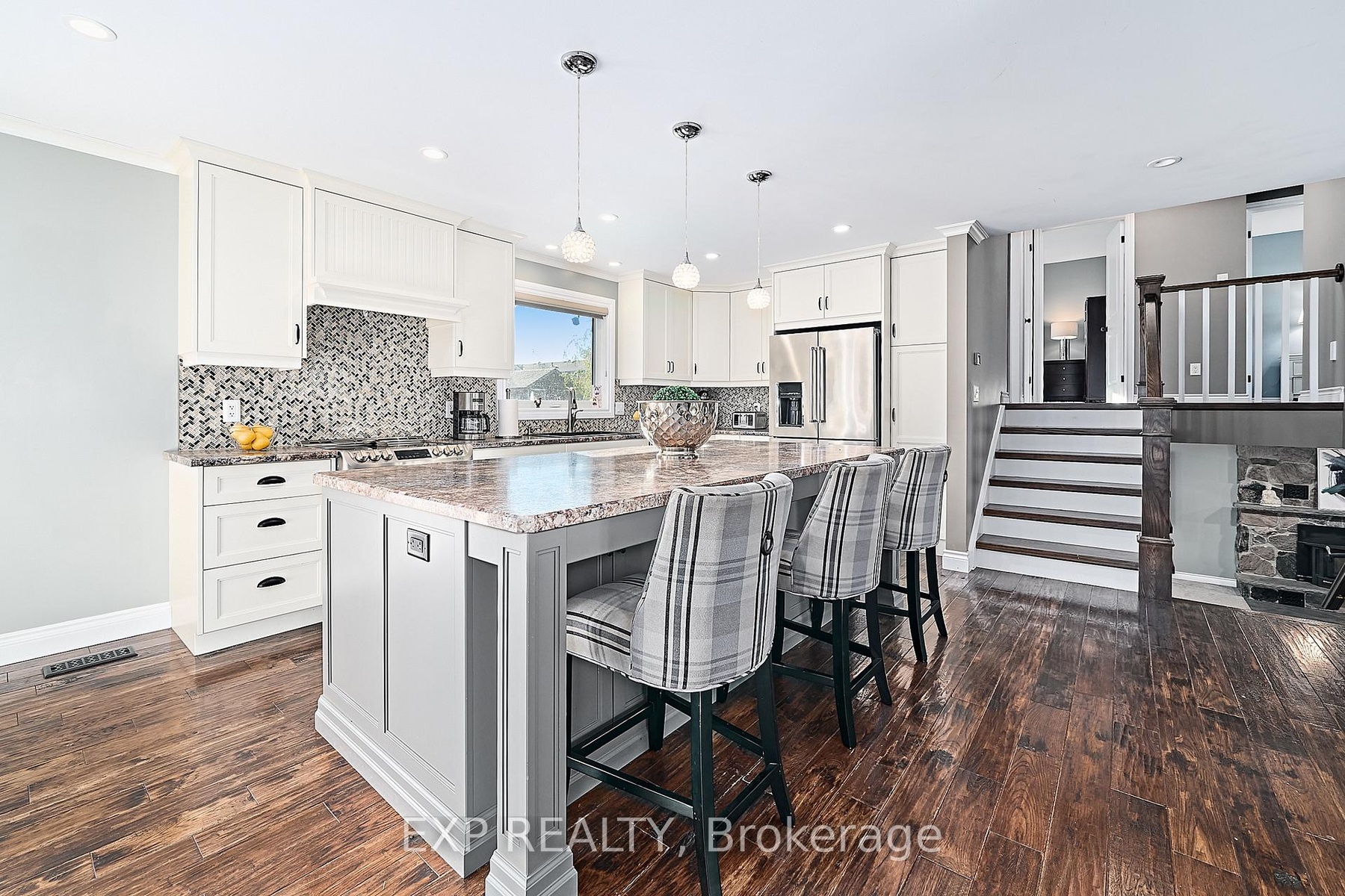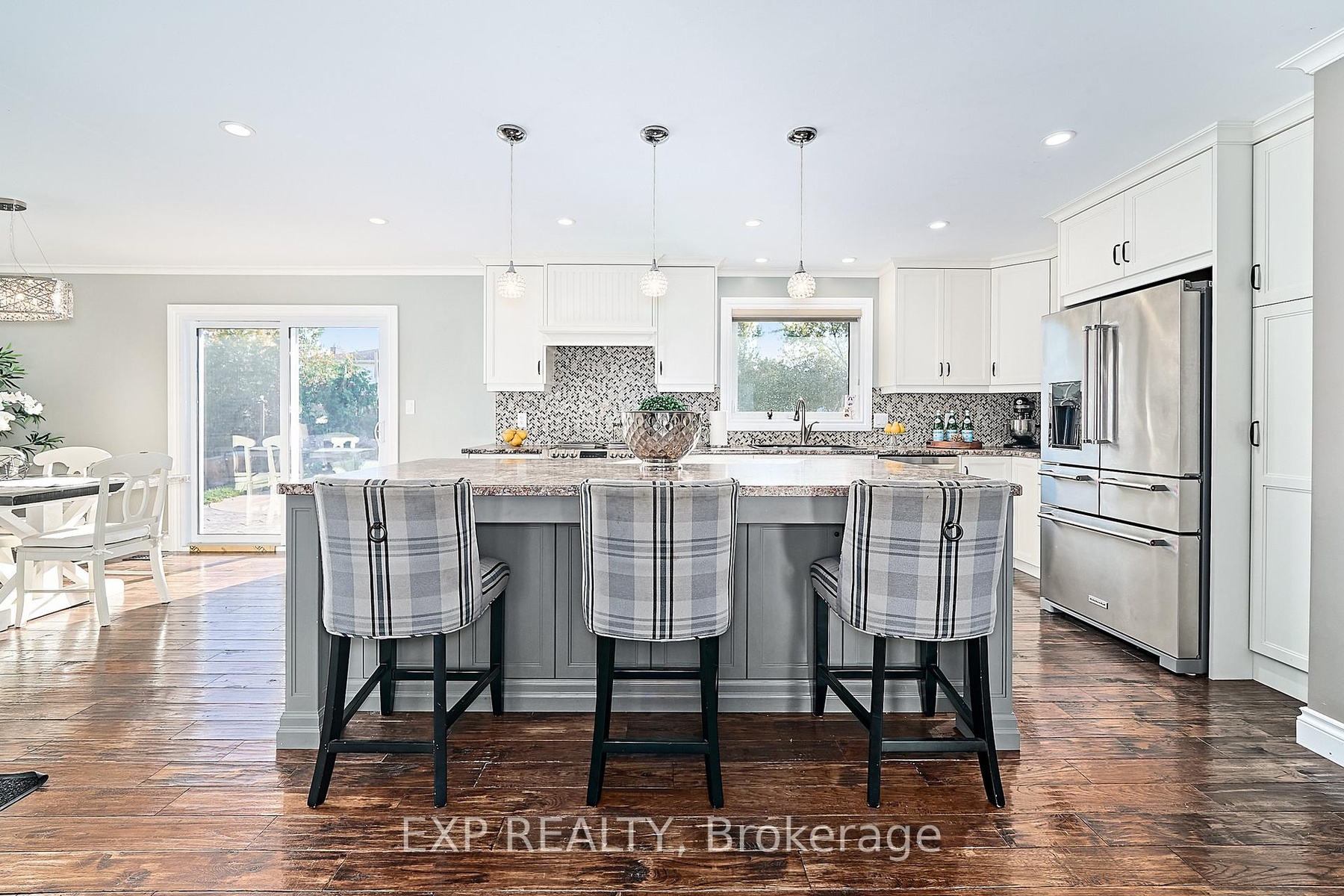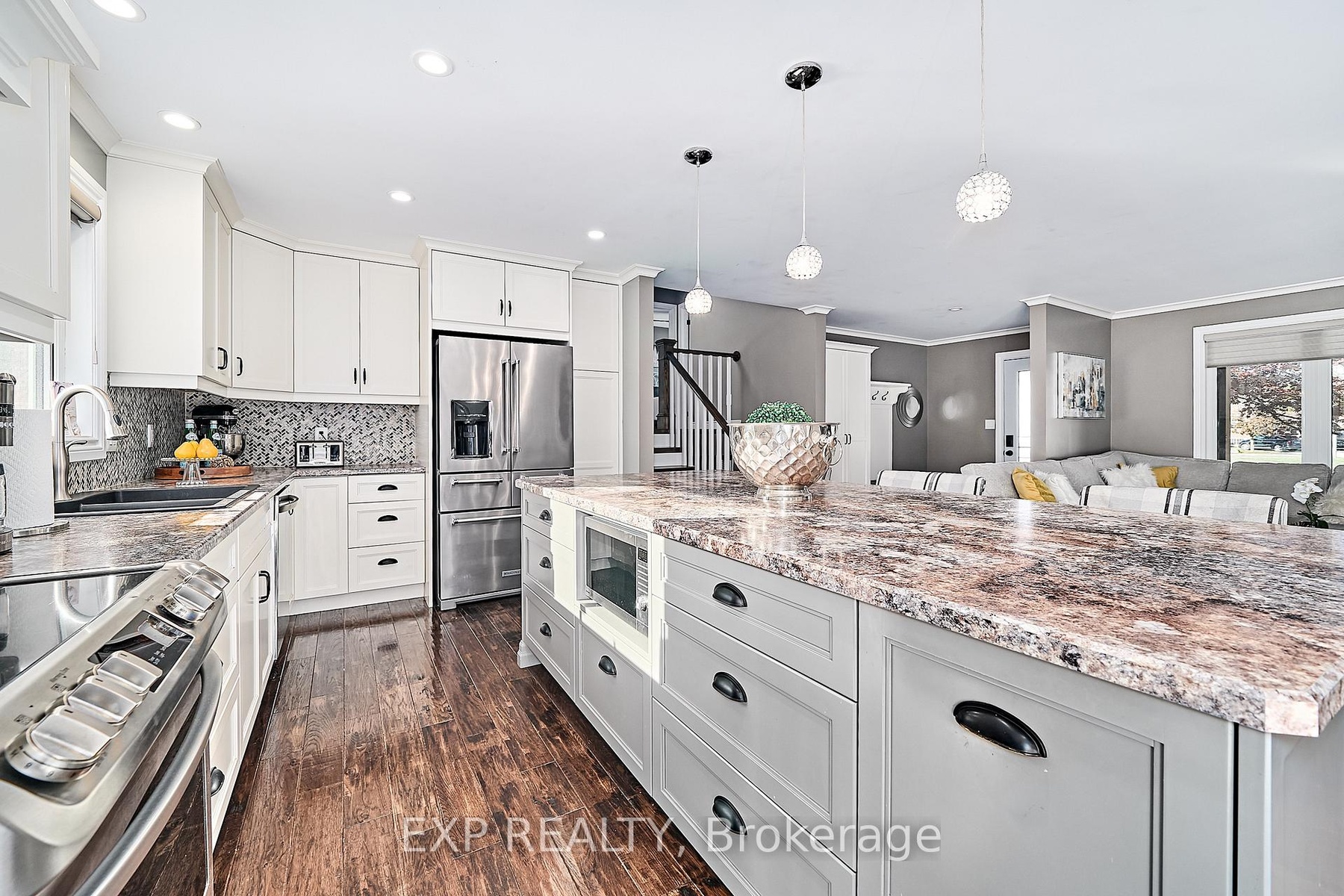 Updated & Upgraded this beautifull renovated, fully finished 4-level side split is nestled away on a cul-de-sac featuring a spectacular pie-shaped lot. The fully fenced backyard gives you the perfect entertaining spot, with an inviting in-ground pool, a stamped concrete patio, + small stocked pond & a covered porch. Inside discover an open concept main floor that boasts hardwood flooring & a custom kitchen. The lower levels have a Private & Separate Entrance with Bedroom & Bath large windows & a wood-burning fireplace. The basement includes an additional games room, providing ample space for guests or family activities. The home has excellent curb appeal with a double-wide asphalt driveway & a stamped concrete walkway leading to a covered front porch. Updates: 24 - soffits/fascia/eavestroughs/ siding, pool pump, front door/garage window; 23 - garage door; 22 - pool heater; 19 - baseboard & interior doors; 16 - kitchen; 15 - topped up attic insulation; 13- 16 - windows/exterior doors; 08 - shingles.