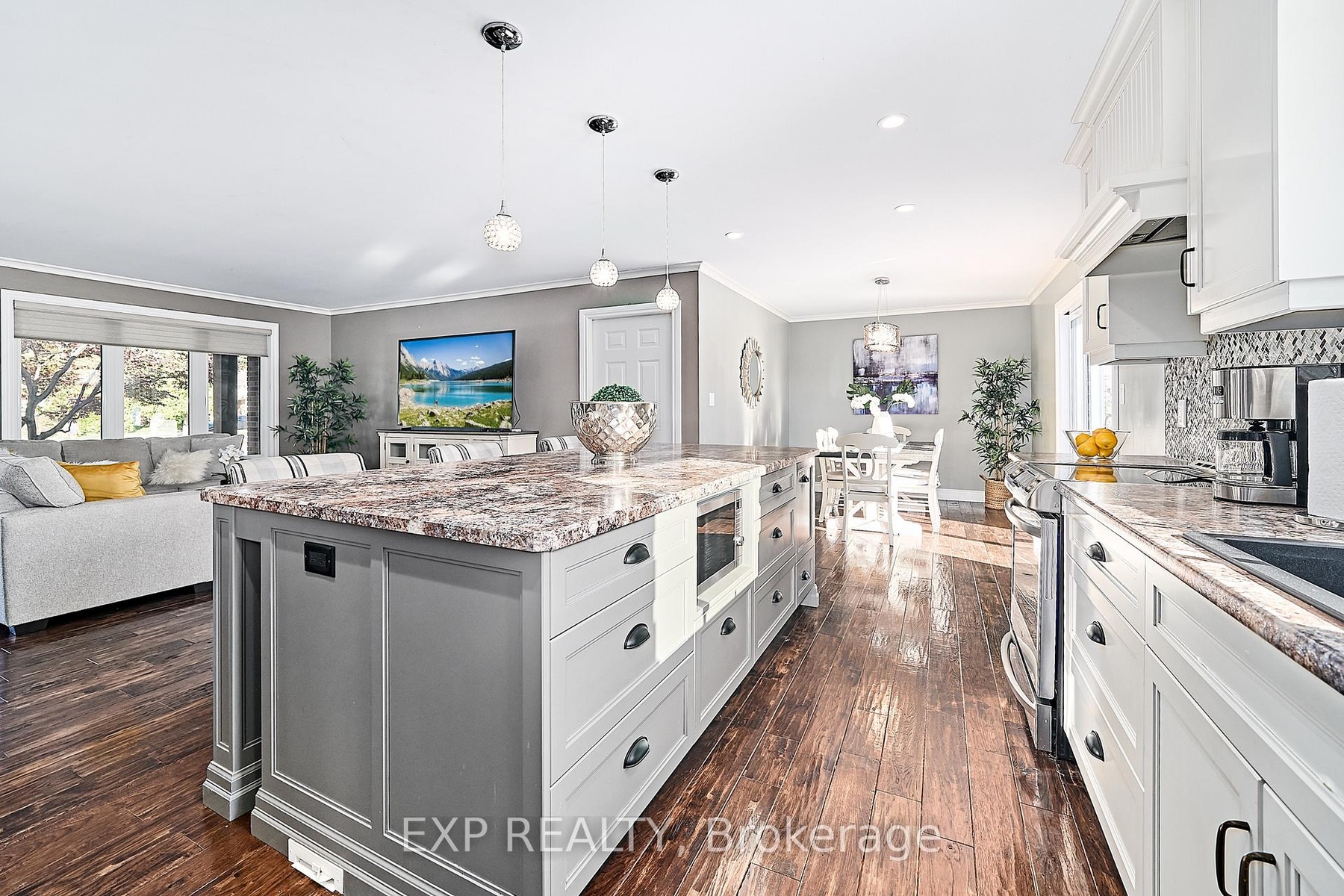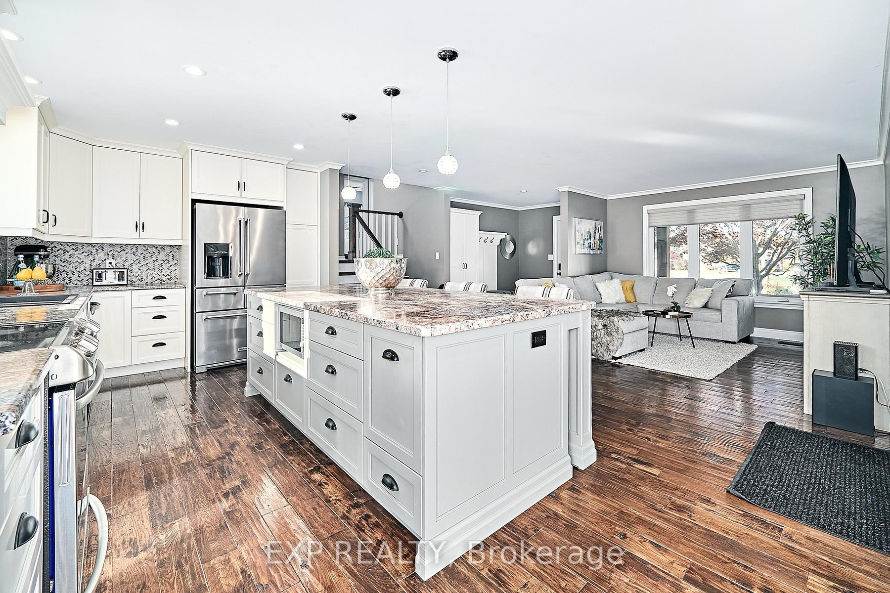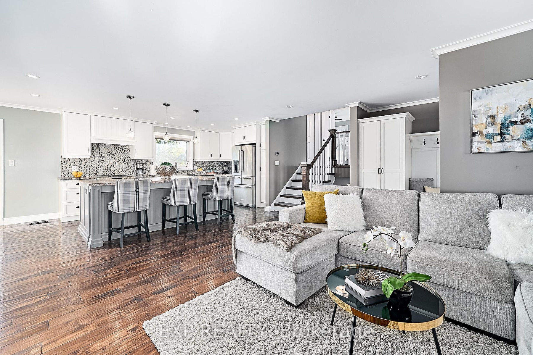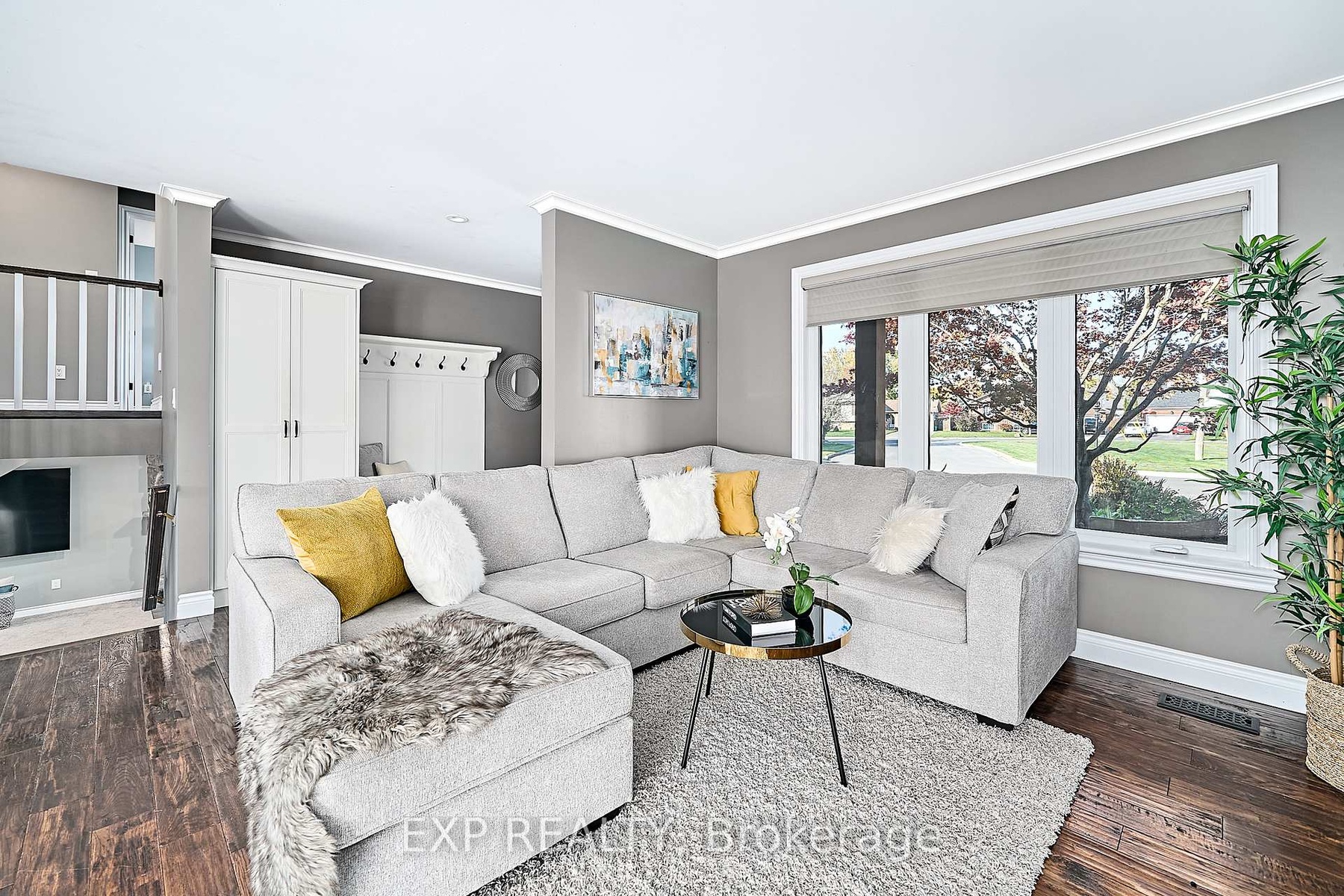 Updated & Upgraded this beautifull renovated, fully finished 4-level side split is nestled away on a cul-de-sac featuring a spectacular pie-shaped lot. The fully fenced backyard gives you the perfect entertaining spot, with an inviting in-ground pool, a stamped concrete patio, + small stocked pond & a covered porch. Inside discover an open concept main floor that boasts hardwood flooring & a custom kitchen. The lower levels have a Private & Separate Entrance with Bedroom & Bath large windows & a wood-burning fireplace. The basement includes an additional games room, providing ample space for guests or family activities. The home has excellent curb appeal with a double-wide asphalt driveway & a stamped concrete walkway leading to a covered front porch. Updates: 24 - soffits/fascia/eavestroughs/ siding, pool pump, front door/garage window; 23 - garage door; 22 - pool heater; 19 - baseboard & interior doors; 16 - kitchen; 15 - topped up attic insulation; 13- 16 - windows/exterior doors; 08 - shingles.