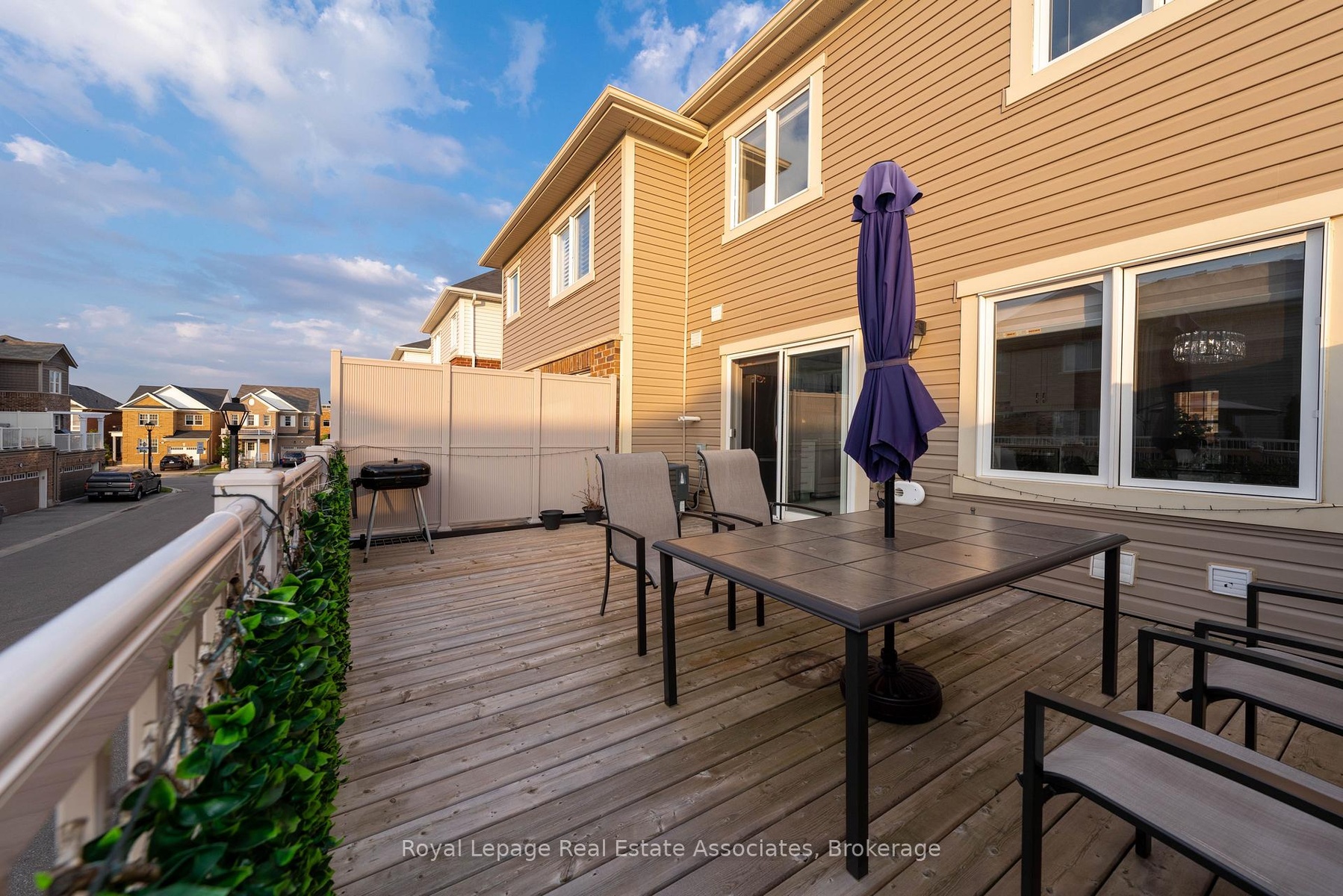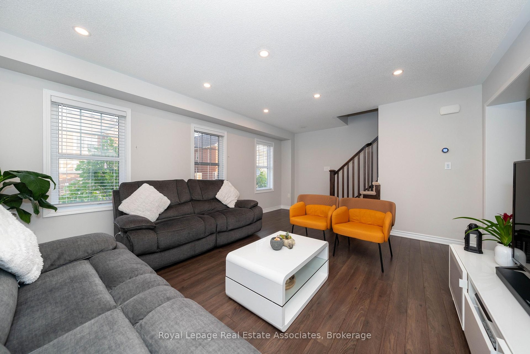 Welcome To This Mattamy-Built Executive Townhome! Features 3 Bedrooms + Den (Can Be Used As In-Law Or Nanny Suite) & 3 Baths. Open-Concept Layout W/Numerous Upgrades Incl Hardwood Flrs (Except Bdrms), Pot Lights & More. Modern Kitchen W/Upgraded Cabinets, S/S Appliances, Gorgeous Backsplash, Centre Island & W/O To Deck - Perfect For BBQs. Primary Bdrm W/3-Pc Ensuite & W/I Closet. Laundry Conveniently Located On Main Flr. Rear-End Double Car Garage. Lots Of Natural Light Throughout! Extras:High-Efficiency Home. Incl All