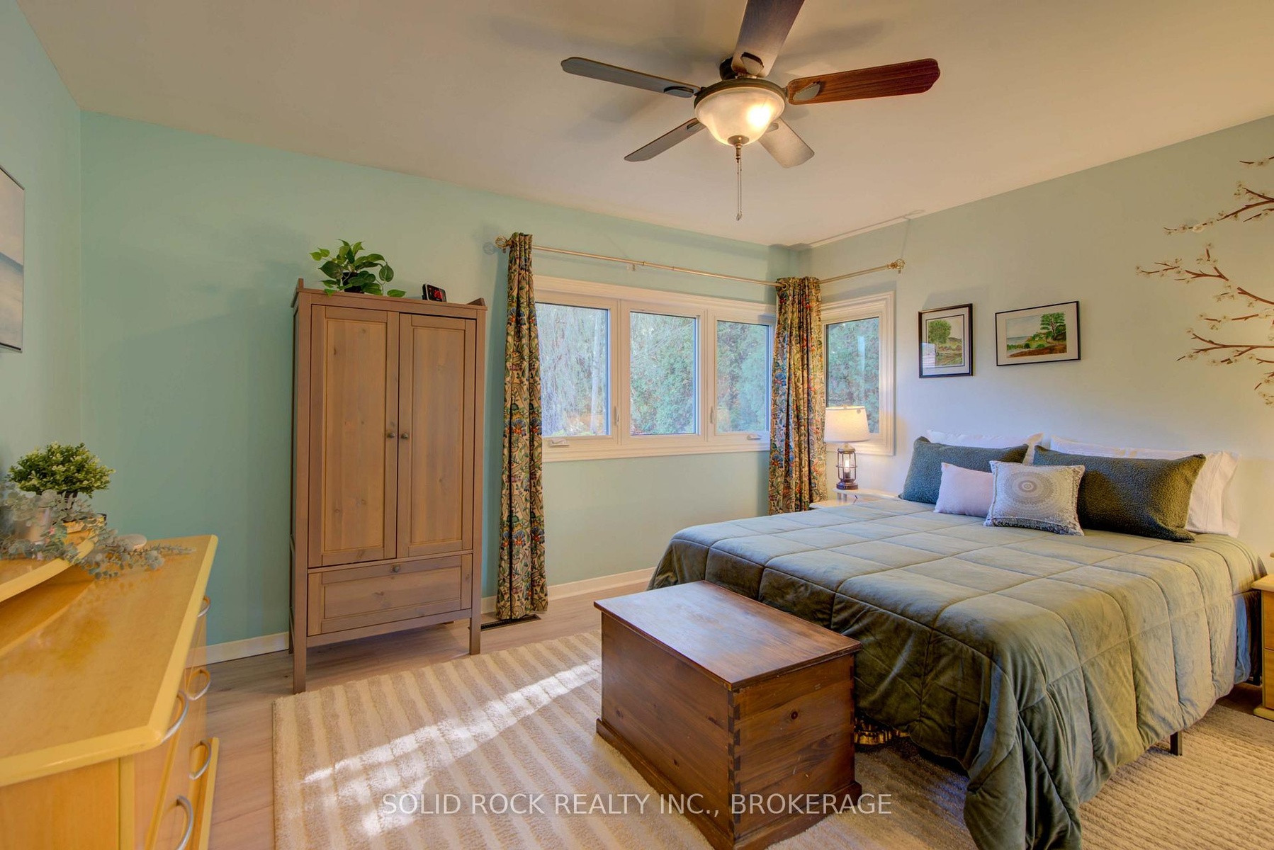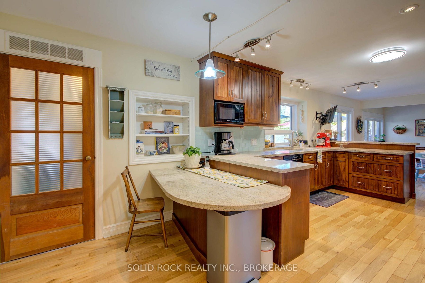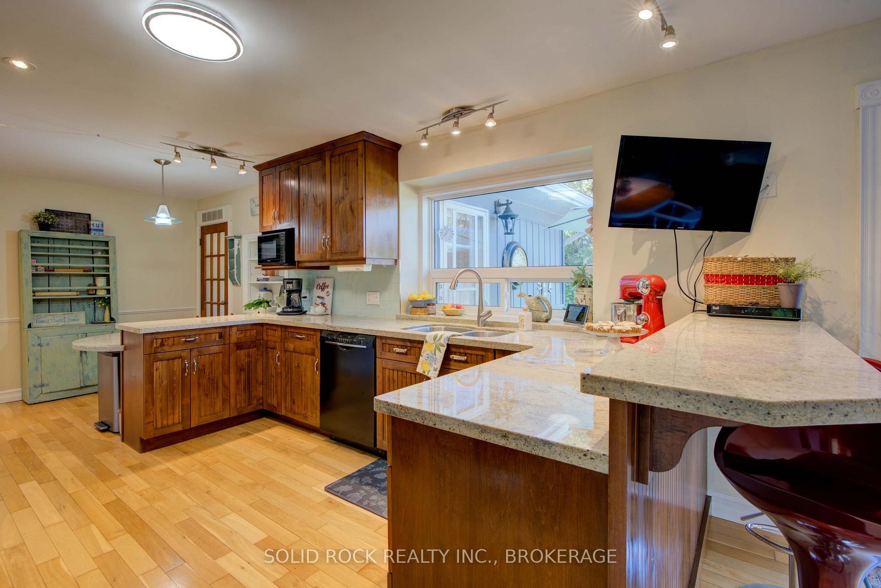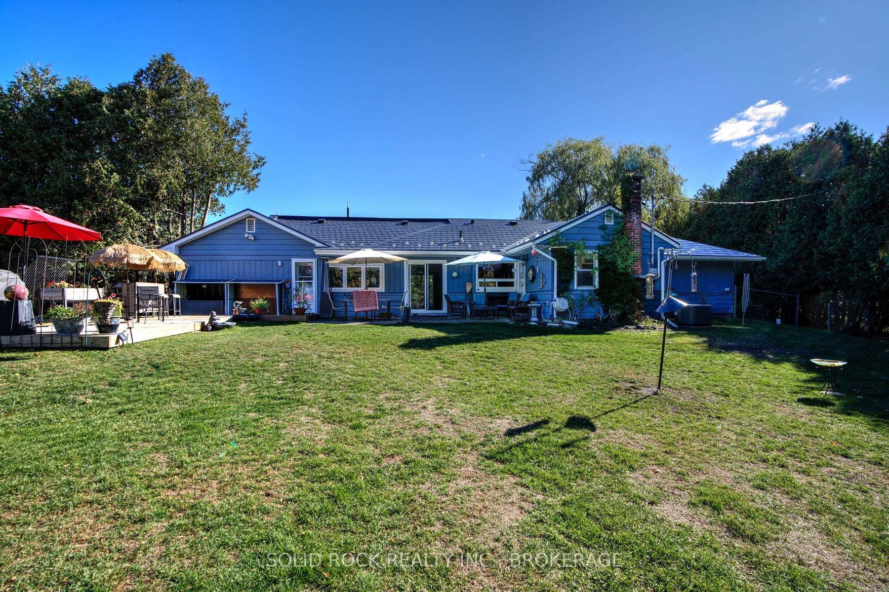 Peaceful country living meets polished comfort just minutes from Kingston and Napanee. Set on 1.75 acres, this beautifully updated 3-bedroom, 2-bathroom custom bungalow offers a bright family room, a chef's kitchen with granite countertops, and an impressive great room with cathedral ceiling, a new propane fireplace (converted from wood-burning, 2024), and wet bar - perfect for entertaining. Recent upgrades include a new (2024) metal roof with two skylights and GUTTERGUARDS ($62,000), and a new (2024) insulated outdoor shed with electricity ($17,000) - adding both style and function. Outside, enjoy the inground pool with a new liner, pump, solar blanket, and elephant cover, all surrounded by nature and frequent wildlife visitors. Four versatile outbuildings offer incredible flexibility, including one ideal for a studio, guest suite, or home office. At the rear, Millhaven Creek provides a peaceful setting to unwind by the water's edge. A move-in-ready retreat, offering space, privacy, and quality upgrades - all within easy reach of city amenities.