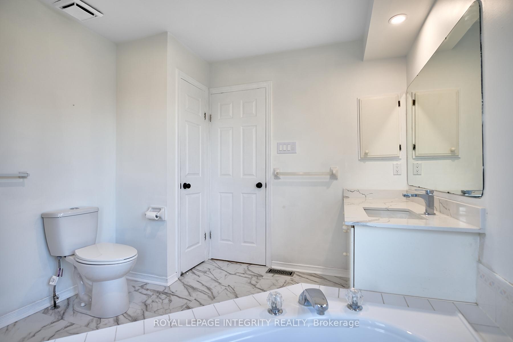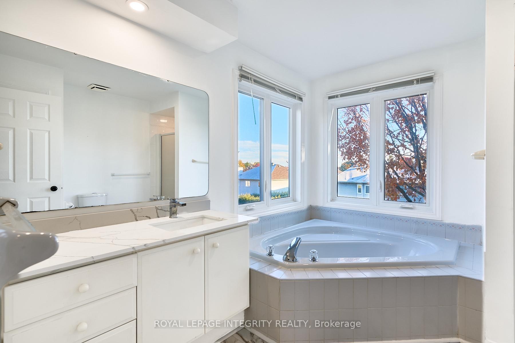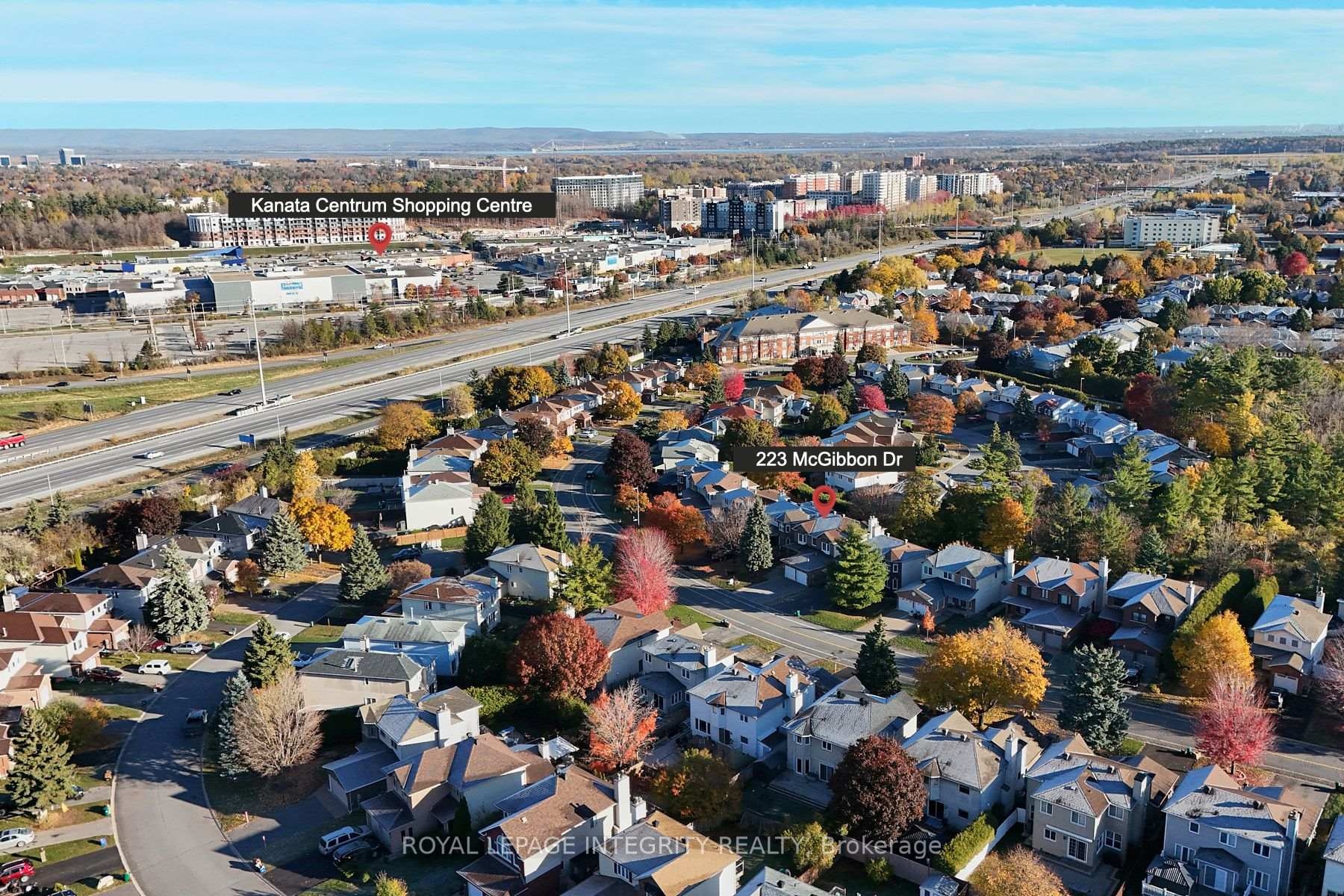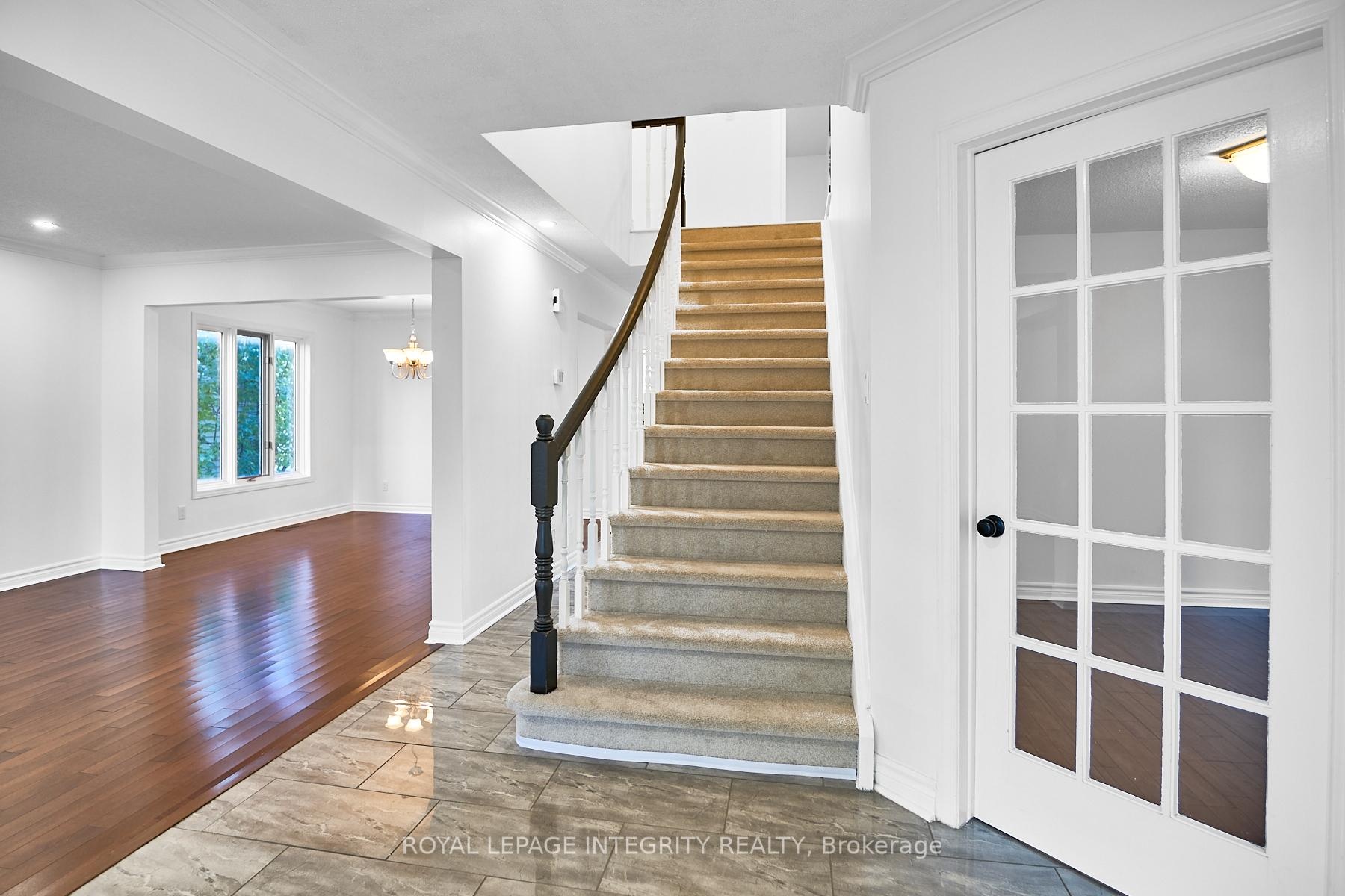 Welcome to this beautifully maintained and thoughtfully upgraded single-family home, ideally situated just off HWY 417 for effortless access to major routes, Kanata Centrum, parks, and top-rated schools - perfect for both families and commuters. From the moment you arrive, you're greeted by a wide driveway, elegant interlock walkway, and a charming front seating area. Inside, a bright and spacious foyer with a sweeping staircase opens to a formal dining and living room filled with natural light. A private main-floor office provides an ideal space to work from home, while the two-car garage and parking for four additional vehicles ensure everyday convenience. The home features updated flooring throughout and a modern kitchen with crisp white cabinetry, granite countertops, stainless steel appliances, and abundant prep space. The kitchen flows seamlessly into the eat-in area and a sun-filled family room - perfect for gatherings and entertaining. Step out onto the raised deck to enjoy tranquil, tree-lined views of the private backyard - ideal for children, pets, and outdoor dining. Upstairs, you'll find four generous bedrooms and two beautifully updated bathrooms. The luxurious primary suite offers space for a sitting area, a walk-in closet, built-in makeup vanity, and a spa-inspired ensuite featuring a soaker tub and glass shower. Three additional bedrooms share a stylish full bathroom enhanced by pot lights and new laminate flooring. The fully finished lower level provides exceptional versatility, featuring a spacious recreation room, custom wet bar, cold storage, a fifth bedroom, and a full bathroom - perfect for overnight guests, extended family, or a teen retreat. Enjoy a mature, private backyard in a quiet, family-friendly neighborhood just minutes to shopping, schools, and Landmark Cinemas. A true move-in-ready gem in one of Kanata's most convenient and desirable locations! Contact us today to schedule your private viewing.