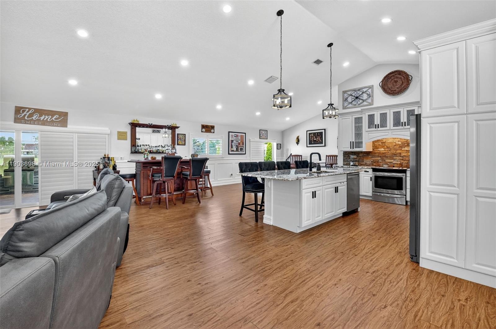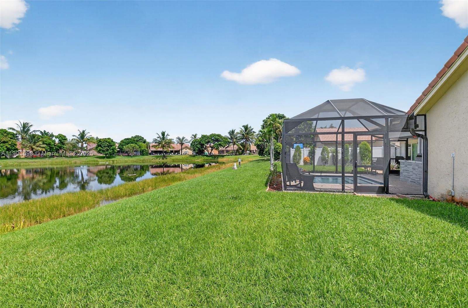 Welcome home to this stunning lakefront pool home in the desirable all-ages Sun Valley! Storm-ready for your peace of mind offering full impact windows, sliders & garage door. Featuring nearly 2300 sqft, soaring ceilings, an expansive open living area ideal for entertaining, a newly insulated attic for elevated comfort & energy efficiency, new AC, freshly painted interior, luxurious bathrooms & plantation shutters. Love to cook & entertain? Look no further! The perfect blend of indoor/outdoor living, choose from the large gourmet open kitchen or the stunning outdoor summer kitchen poolside. Indulge in breathtaking lake views from your screened patio or fenced yard, perfect for pets. LOW HOA includes Hotwire cable/internet, heated pool, tennis, basketball & handball courts, & play area!