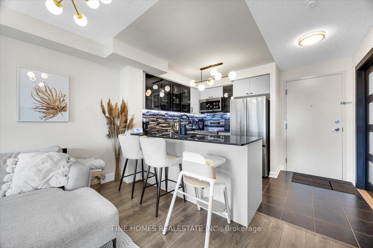 Gorgeous 1-Bedroom + Spacious Den Condo in the Prestigious Gramercy Park Community!This bright and airy 650 sq. ft. suite offers a thoughtfully designed open-concept layout with upgraded finishes throughout. The modern kitchen features an upgraded countertop, breakfast bar, and new full-size stainless steel appliances, while the spacious den, enhanced with upgraded flooring, is perfect as a home office or guest space. Enjoy the outdoors year-round with a renovated enclosed balcony, ideal for relaxing or entertaining. Includes 1 parking space and 1 locker for your convenience.Ideally located just a 2-minute walk to Wilson Subway Station, this home offers unbeatable connectivity. Youll be only minutes from Yorkdale Mall, Costco, Downsview Park, and enjoy easy access to Highways 401 & 400. Residents of Gramercy Park also benefit from outstanding amenities. The building has been fully renovated within the last two years and features an indoor swimming pool, fitness centre, library, movie theatre, party room, and dining room perfect for both leisure and entertaining.A stylish, move-in-ready home in a vibrant, highly sought-after neighbourhood perfect for professionals, investors, or first-time buyers!
