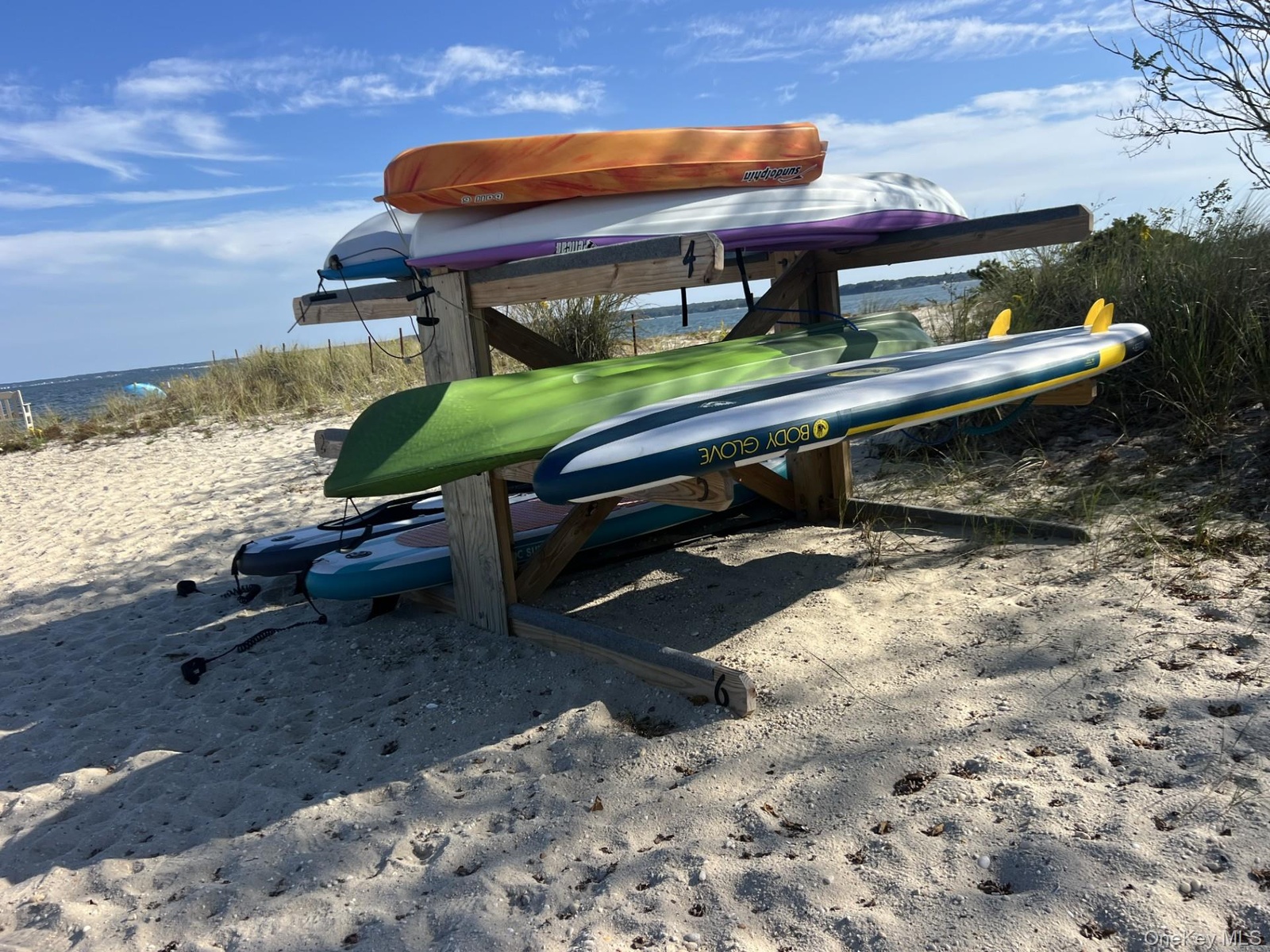 Just a stone's throw away, you’ll find the pristine white sands of South Jamesport Beach on the Great Peconic Bay, where you can enjoy a variety of activities including kayaking, a boat launch, tennis, pickleball, basketball, and a playground for the kids, or just relaxing on the beach.