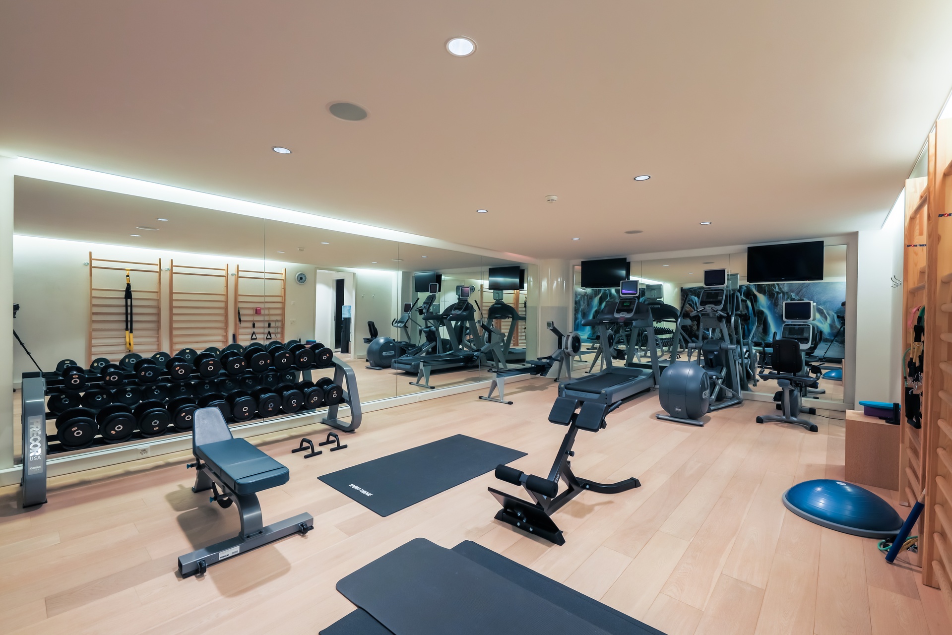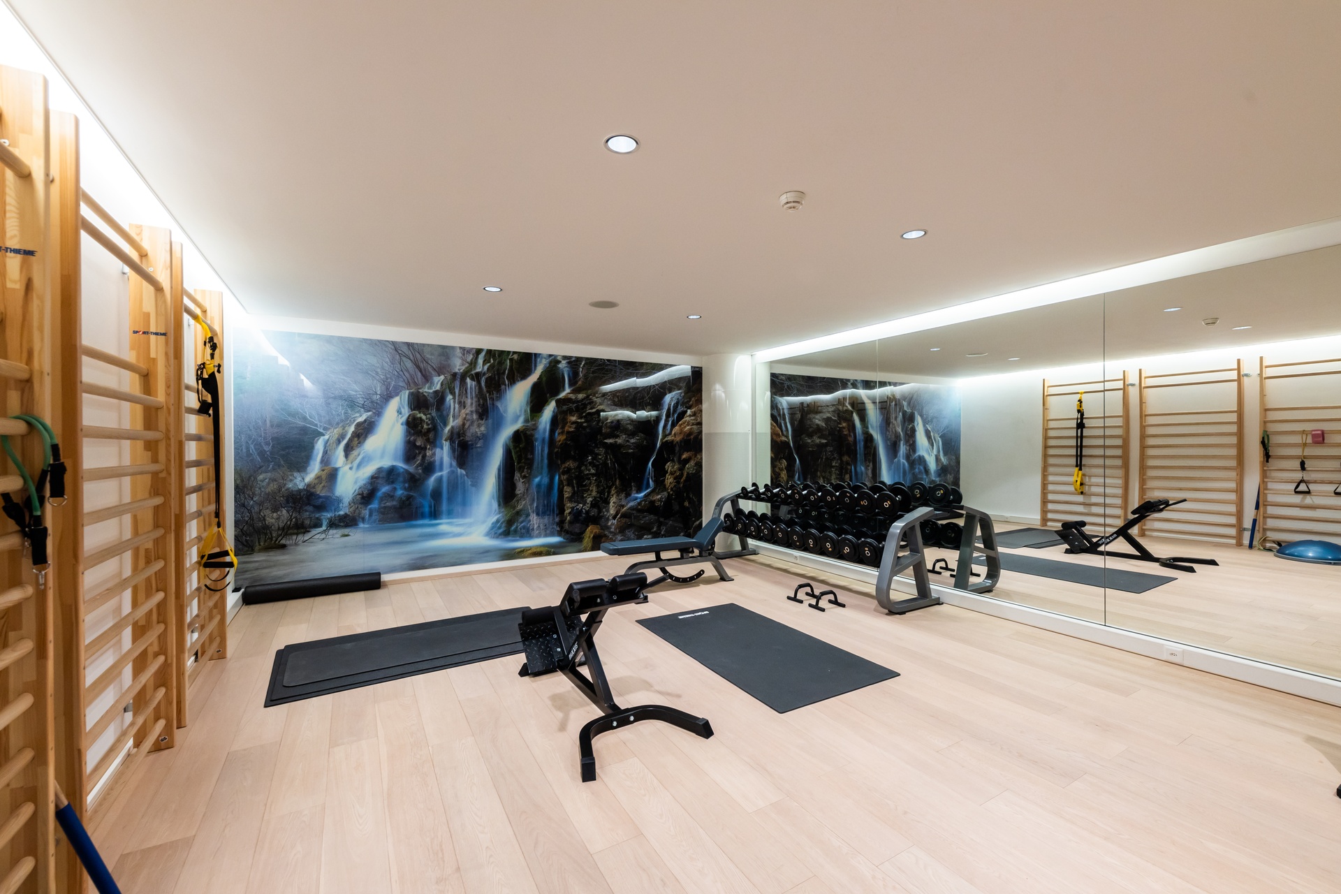 The property includes a master suite with open bathroom and breathtaking mountain views, plus two guest bedrooms—each with en suite bathrooms, TVs, and sound systems. Guests enjoy access to the building’s wellness area with sauna, gym, and massage room, as well as two private parking spaces.