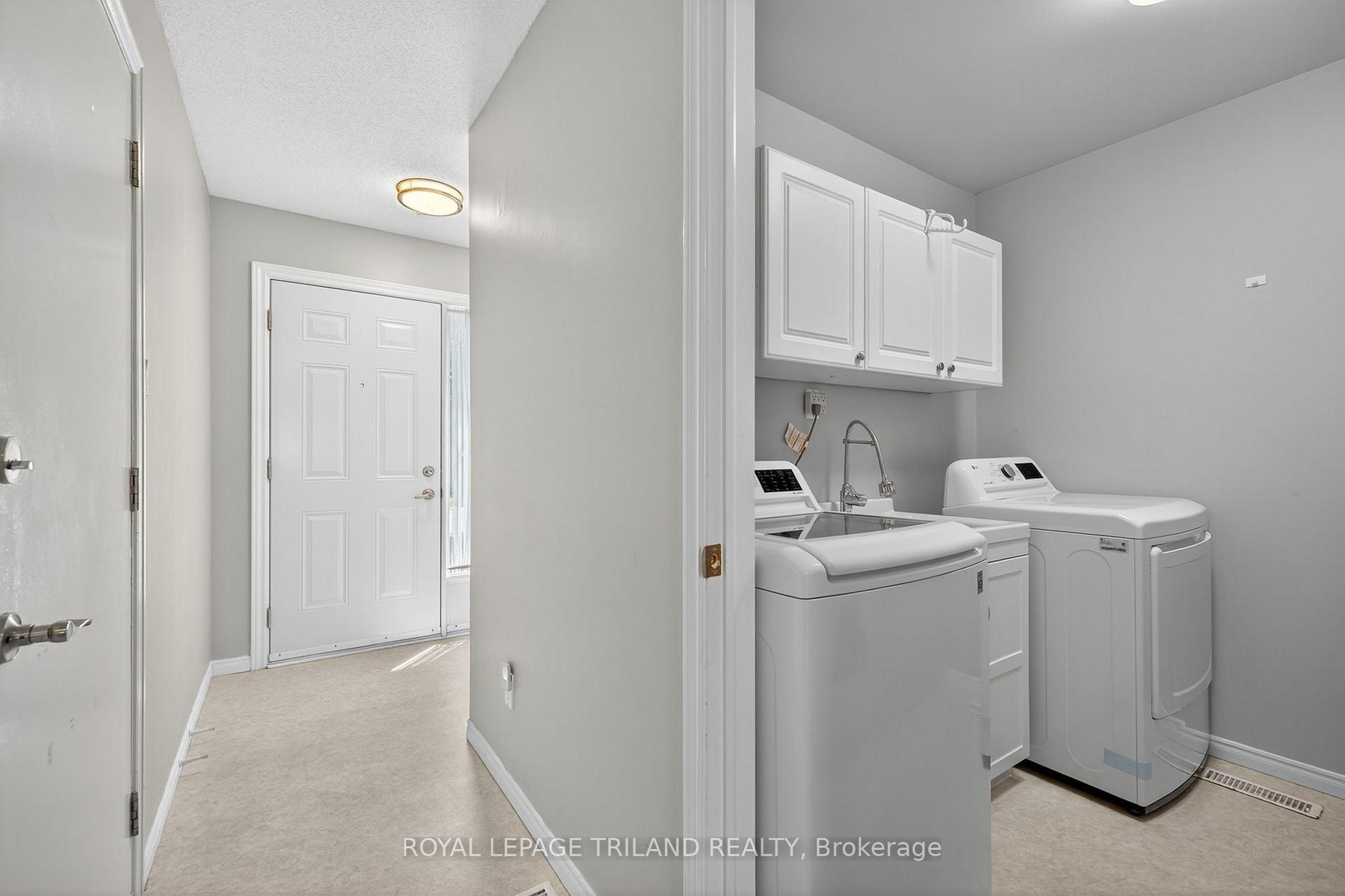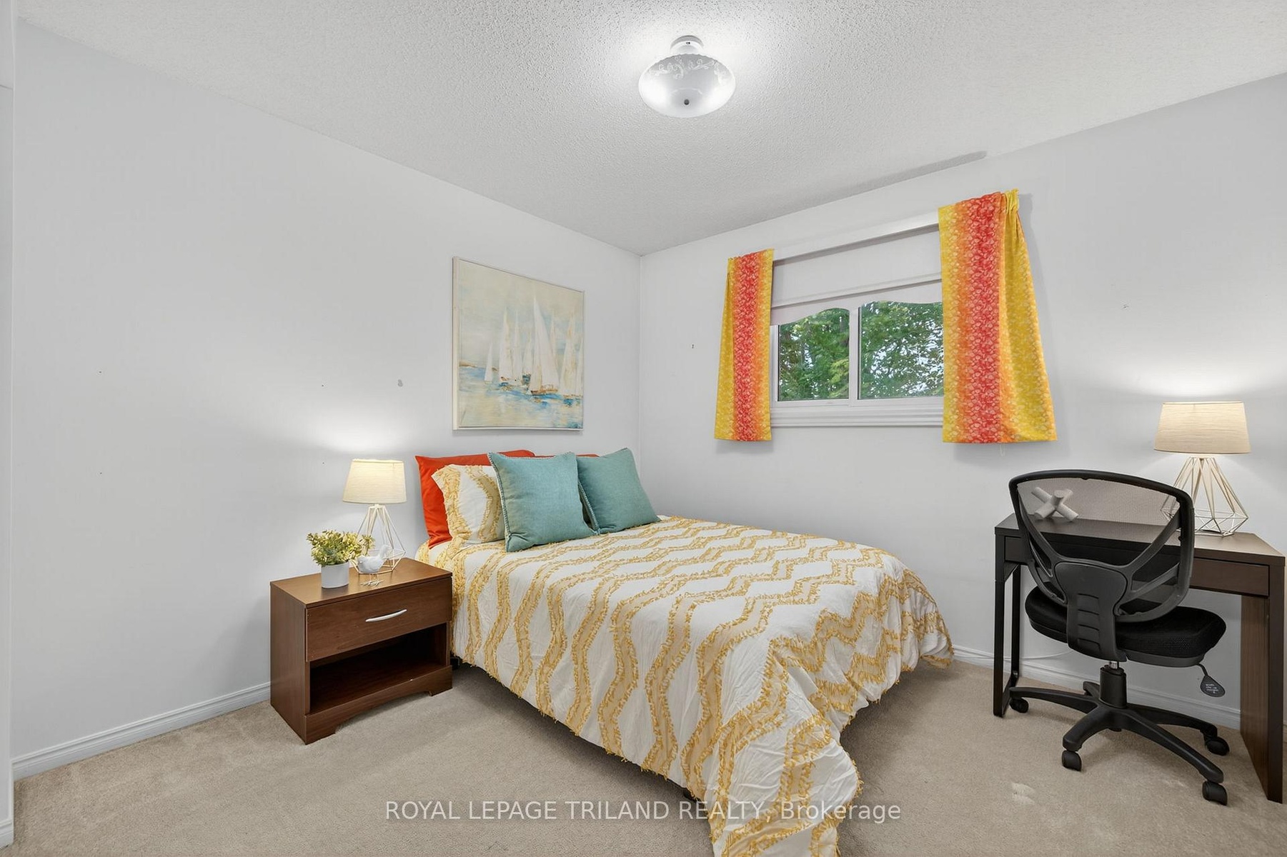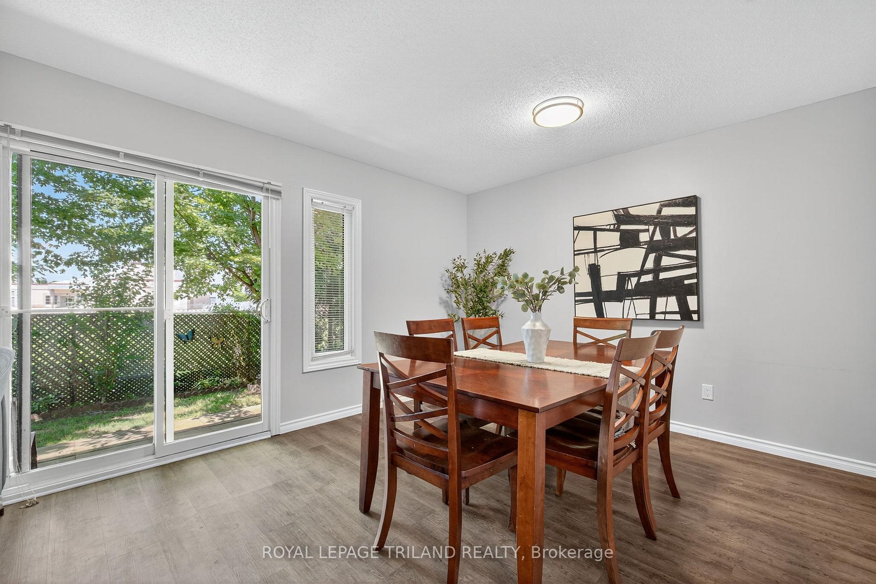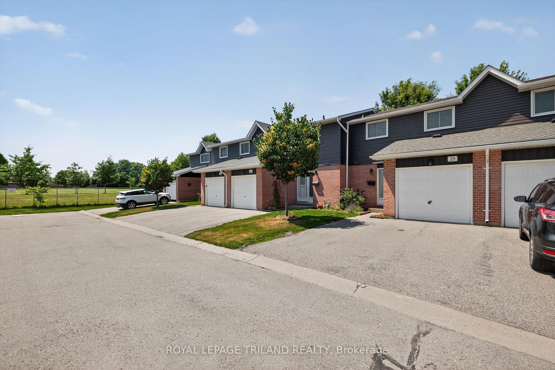 Welcome to this beautifully maintained 3-bedroom, 2-storey townhouse in a quiet, family-friendly complex, backing directly onto Bonaventure Meadows Public School - offering privacy, green space, and a true sense of community. The main floor features a spacious front entry, an updated 2-piece powder room (2018), inside access to the single-car garage, and a large laundry room. The kitchen is finished with modern grey cabinetry, stainless steel appliances, and ample storage and prep space. It opens into a bright living and dining area with oversized rear windows and updated vinyl plank flooring - perfect for everyday living and entertaining. Upstairs, you'll find three generously sized bedrooms, including a huge primary with double closets and plenty of space for a king-size bed. The 4-piece bathroom was tastefully updated in 2018.The fully finished basement offers even more living space with a large rec room, durable vinyl plank flooring, and a separate office area - ideal for working or studying from home. Outside, enjoy a private, partially fenced backyard with a spacious patio over looking the school yard behind - no rear neighbours and plenty of open space! This fantastic location puts you just 6 minutes from Highway 401, 10 minutes to downtown London, 9 minutes to Fanshawe College, and 18 minutes to Western University. Plus, you are close to major shopping, parks, transit, and more. Move-in ready and full of value, don't miss your chance to call this one home!
