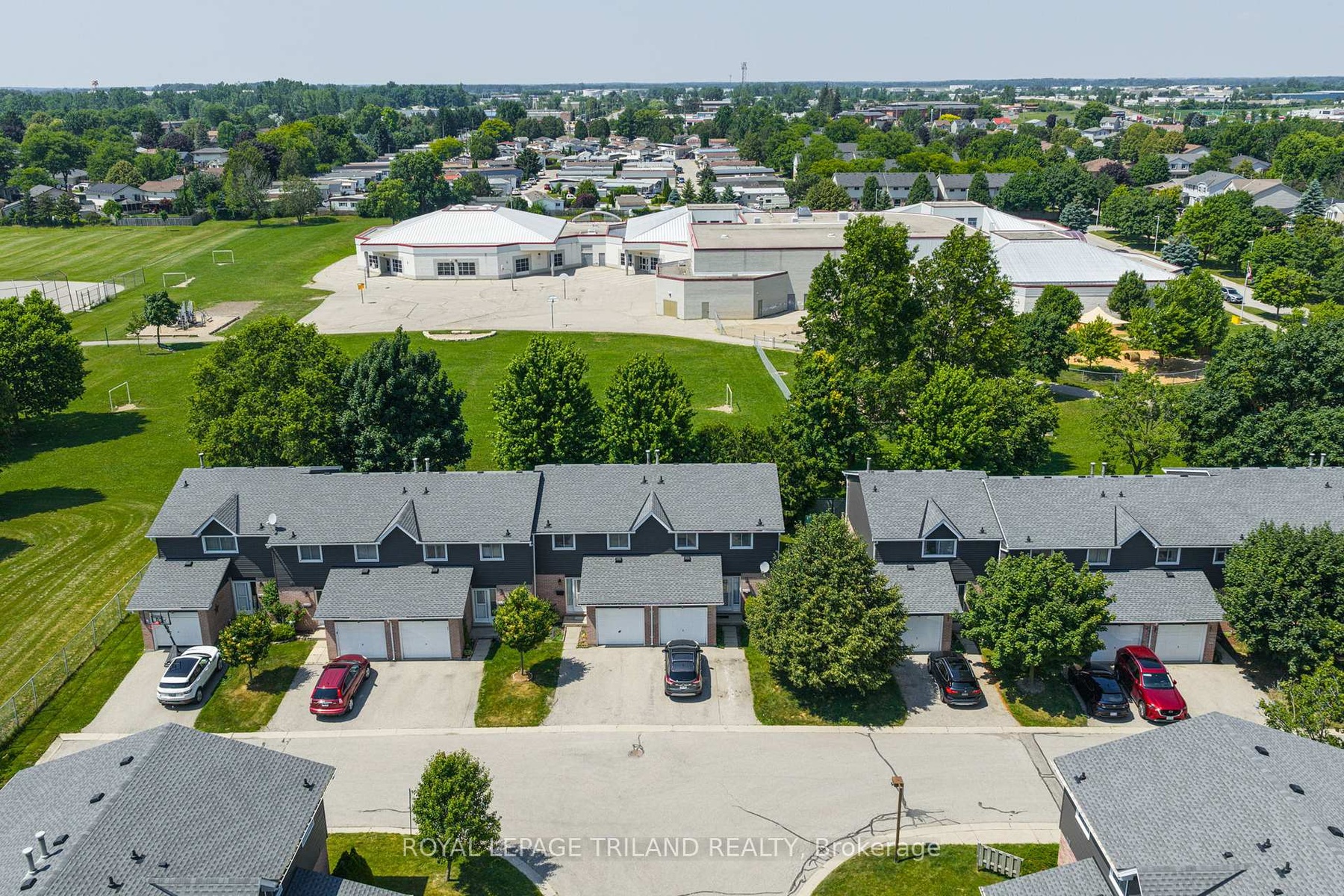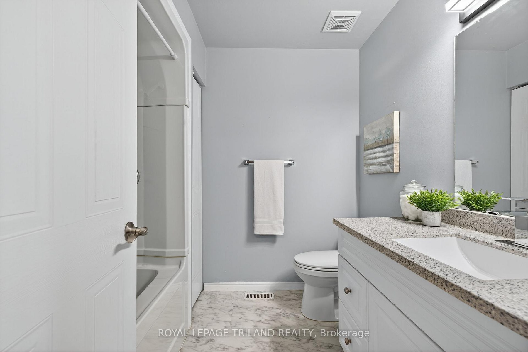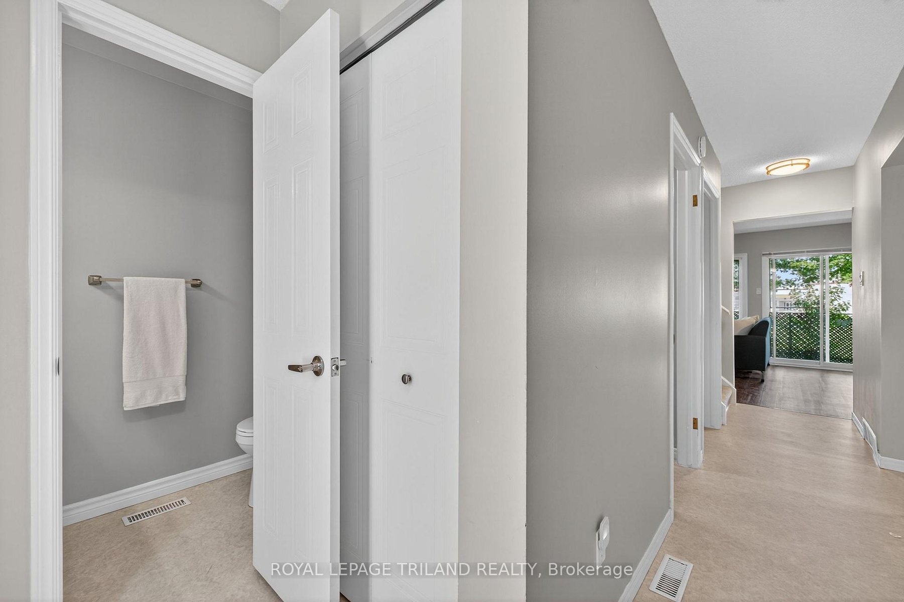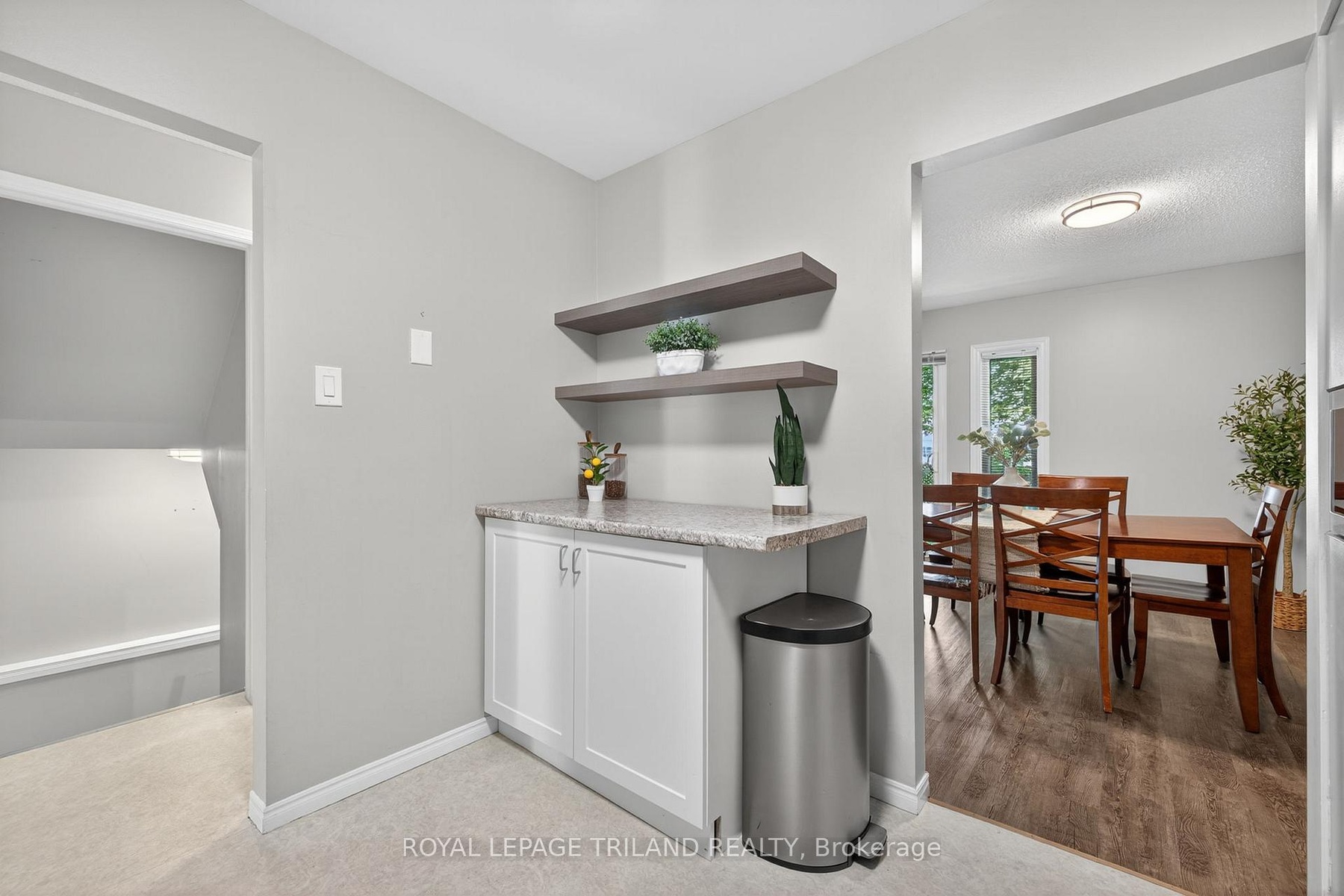 Welcome to this beautifully maintained 3-bedroom, 2-storey townhouse in a quiet, family-friendly complex, backing directly onto Bonaventure Meadows Public School - offering privacy, green space, and a true sense of community. The main floor features a spacious front entry, an updated 2-piece powder room (2018), inside access to the single-car garage, and a large laundry room. The kitchen is finished with modern grey cabinetry, stainless steel appliances, and ample storage and prep space. It opens into a bright living and dining area with oversized rear windows and updated vinyl plank flooring - perfect for everyday living and entertaining. Upstairs, you'll find three generously sized bedrooms, including a huge primary with double closets and plenty of space for a king-size bed. The 4-piece bathroom was tastefully updated in 2018.The fully finished basement offers even more living space with a large rec room, durable vinyl plank flooring, and a separate office area - ideal for working or studying from home. Outside, enjoy a private, partially fenced backyard with a spacious patio over looking the school yard behind - no rear neighbours and plenty of open space! This fantastic location puts you just 6 minutes from Highway 401, 10 minutes to downtown London, 9 minutes to Fanshawe College, and 18 minutes to Western University. Plus, you are close to major shopping, parks, transit, and more. Move-in ready and full of value, don't miss your chance to call this one home!
