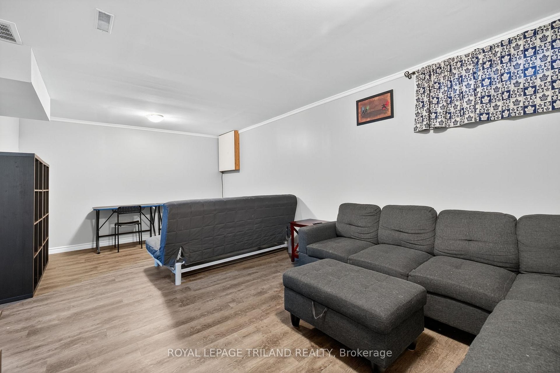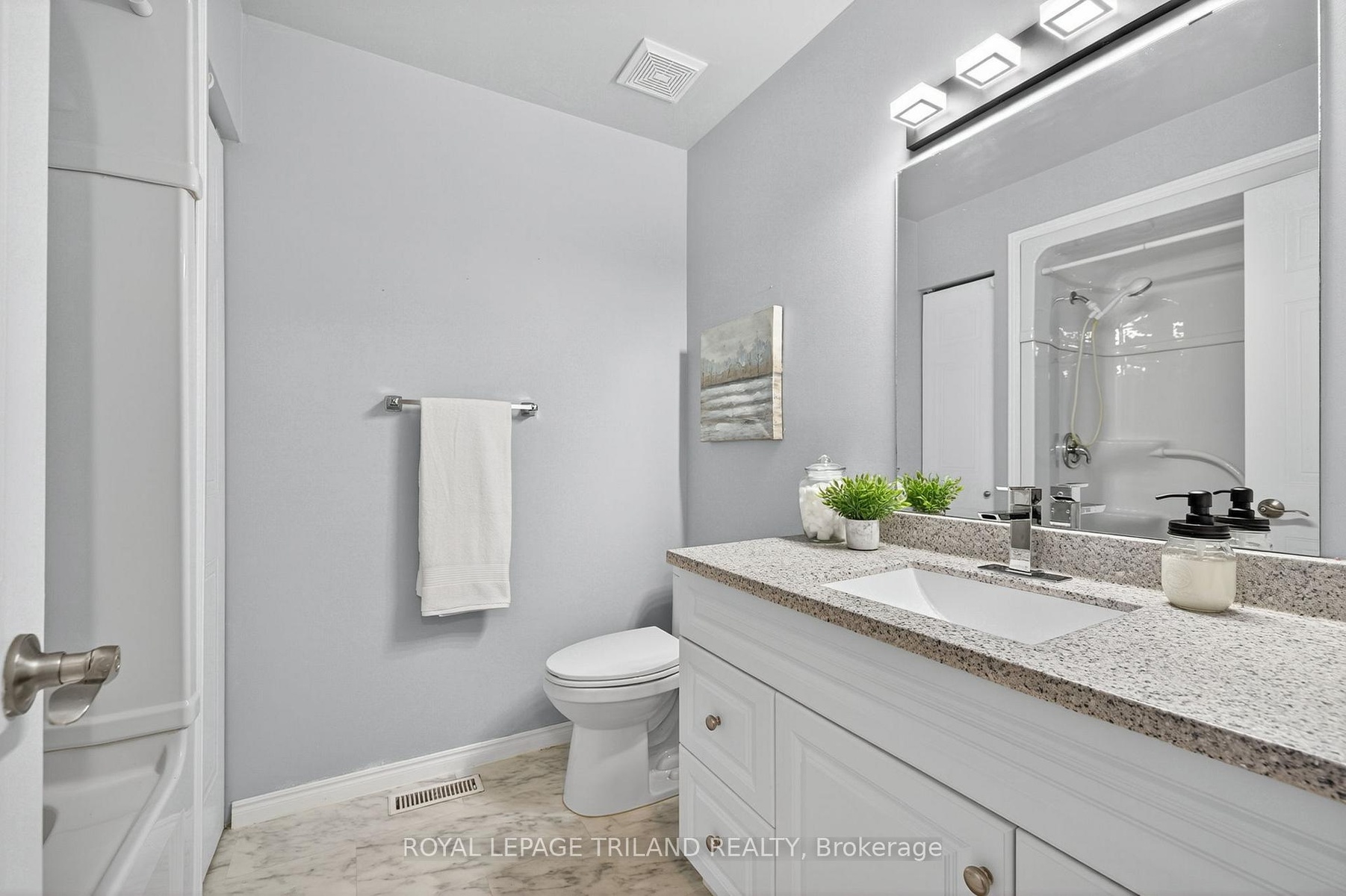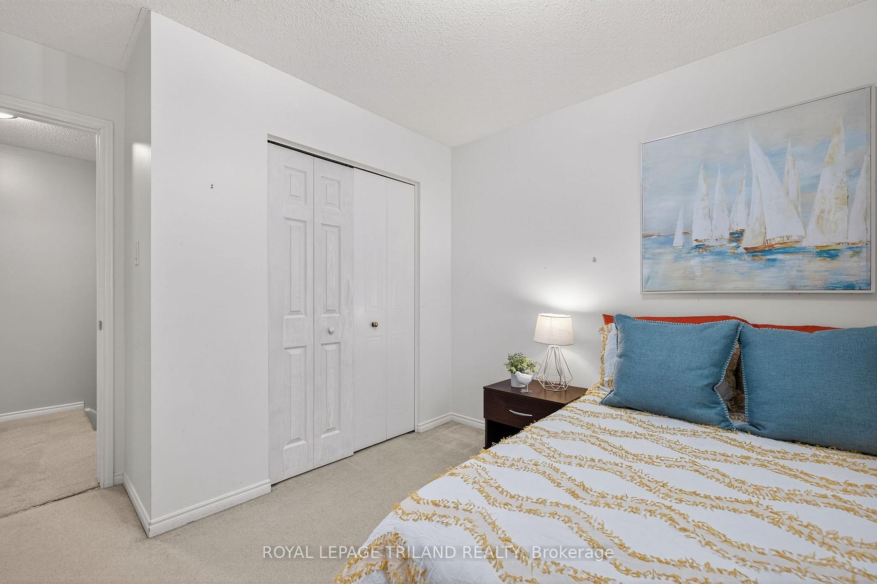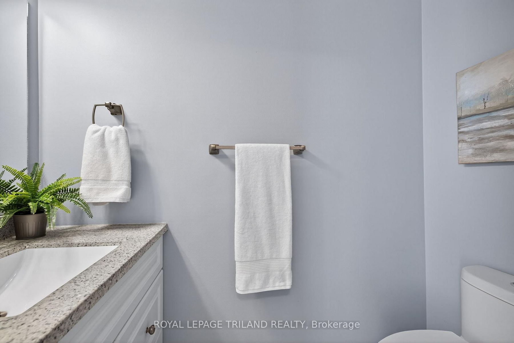 Welcome to this beautifully maintained 3-bedroom, 2-storey townhouse in a quiet, family-friendly complex, backing directly onto Bonaventure Meadows Public School - offering privacy, green space, and a true sense of community. The main floor features a spacious front entry, an updated 2-piece powder room (2018), inside access to the single-car garage, and a large laundry room. The kitchen is finished with modern grey cabinetry, stainless steel appliances, and ample storage and prep space. It opens into a bright living and dining area with oversized rear windows and updated vinyl plank flooring - perfect for everyday living and entertaining. Upstairs, you'll find three generously sized bedrooms, including a huge primary with double closets and plenty of space for a king-size bed. The 4-piece bathroom was tastefully updated in 2018.The fully finished basement offers even more living space with a large rec room, durable vinyl plank flooring, and a separate office area - ideal for working or studying from home. Outside, enjoy a private, partially fenced backyard with a spacious patio over looking the school yard behind - no rear neighbours and plenty of open space! This fantastic location puts you just 6 minutes from Highway 401, 10 minutes to downtown London, 9 minutes to Fanshawe College, and 18 minutes to Western University. Plus, you are close to major shopping, parks, transit, and more. Move-in ready and full of value, don't miss your chance to call this one home!