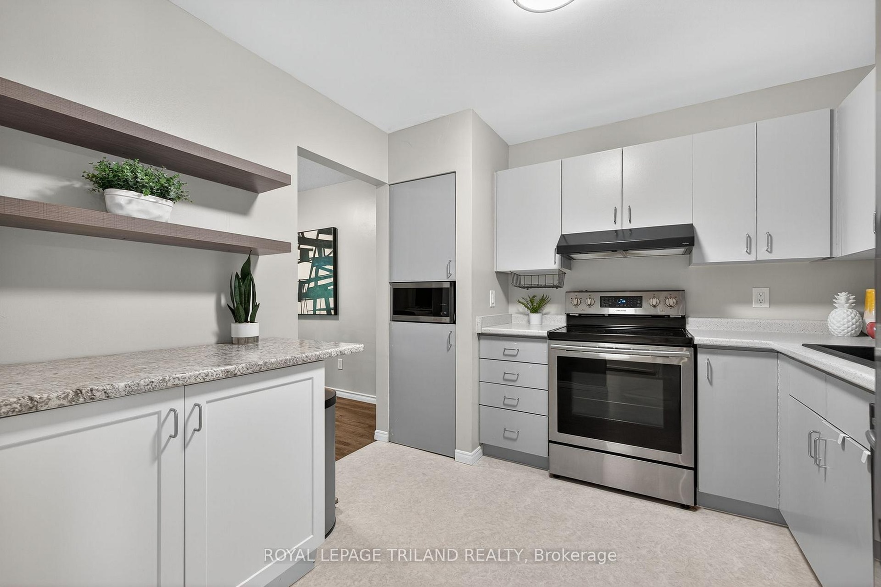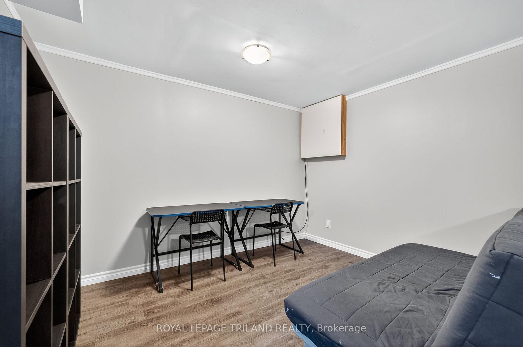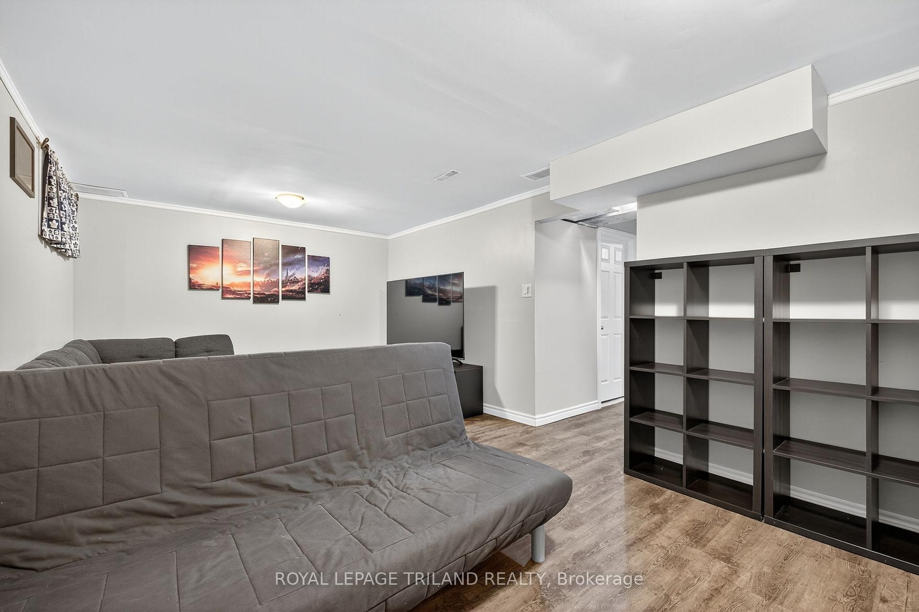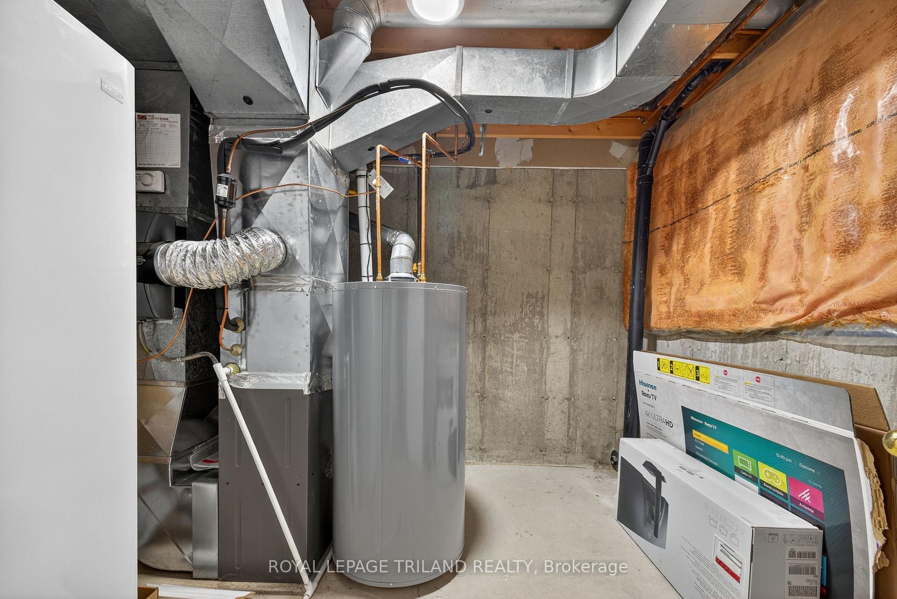 Welcome to this beautifully maintained 3-bedroom, 2-storey townhouse in a quiet, family-friendly complex, backing directly onto Bonaventure Meadows Public School - offering privacy, green space, and a true sense of community. The main floor features a spacious front entry, an updated 2-piece powder room (2018), inside access to the single-car garage, and a large laundry room. The kitchen is finished with modern grey cabinetry, stainless steel appliances, and ample storage and prep space. It opens into a bright living and dining area with oversized rear windows and updated vinyl plank flooring - perfect for everyday living and entertaining. Upstairs, you'll find three generously sized bedrooms, including a huge primary with double closets and plenty of space for a king-size bed. The 4-piece bathroom was tastefully updated in 2018.The fully finished basement offers even more living space with a large rec room, durable vinyl plank flooring, and a separate office area - ideal for working or studying from home. Outside, enjoy a private, partially fenced backyard with a spacious patio over looking the school yard behind - no rear neighbours and plenty of open space! This fantastic location puts you just 6 minutes from Highway 401, 10 minutes to downtown London, 9 minutes to Fanshawe College, and 18 minutes to Western University. Plus, you are close to major shopping, parks, transit, and more. Move-in ready and full of value, don't miss your chance to call this one home!