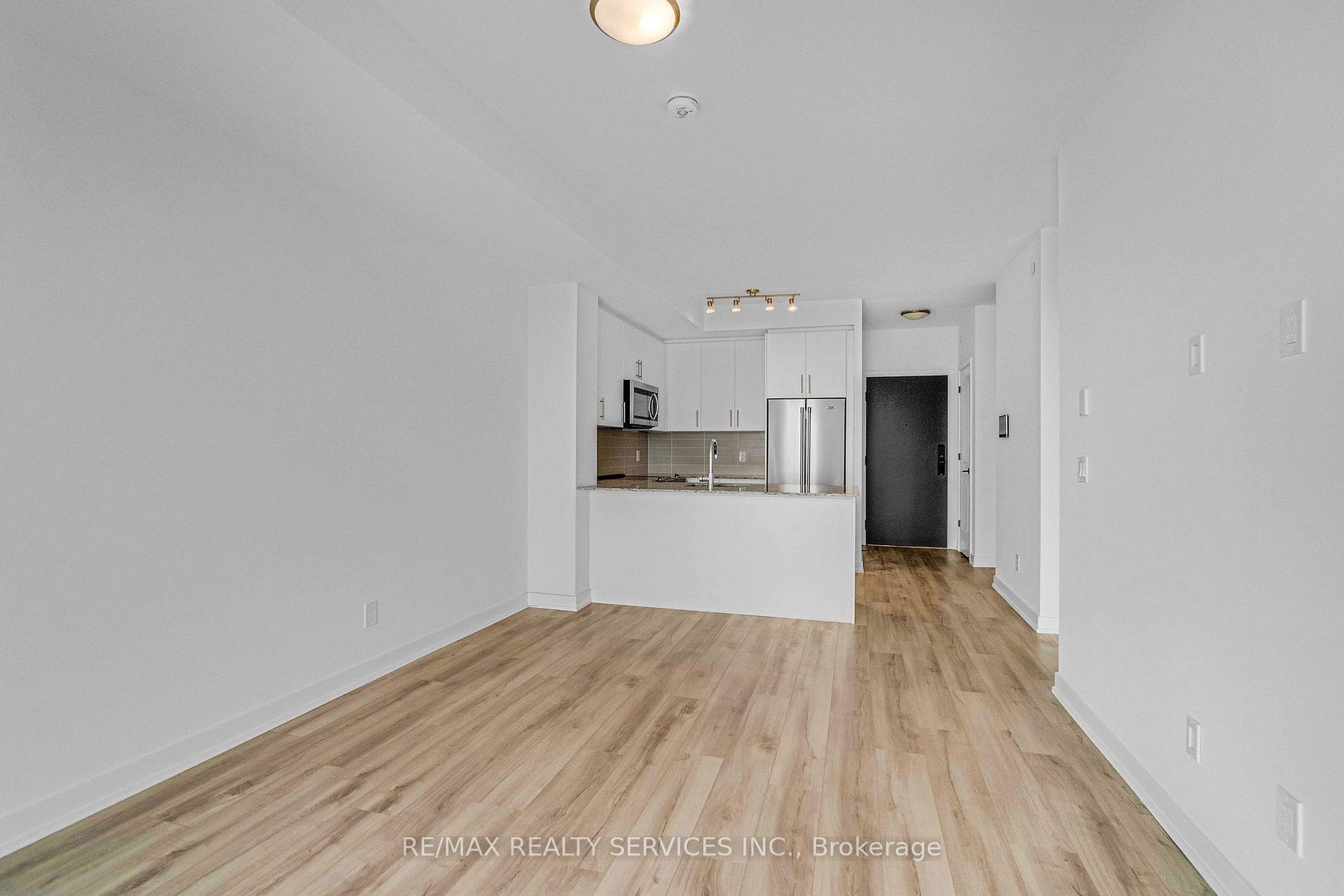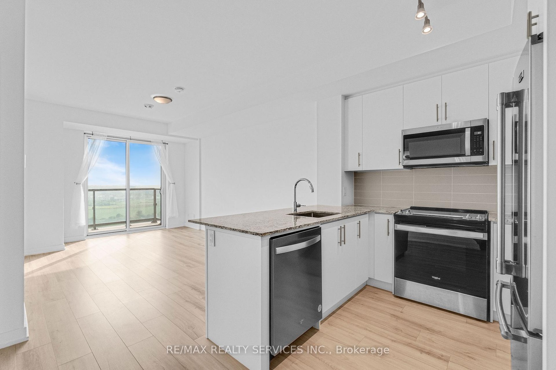 Welcome to Oakvillage! Spacious & sun-filled 1 bed plus den 1 bath suite in one of Oakville's most desirable luxury condo buildings, built by award winning Minto Communities. Ideal location with close proximity to highways 403/407/QEW. This suite features an open concept living space, floor to ceiling windows, quality plank flooring, ensuite laundry, spacious balcony & stunning west/sunset & lake views. Stylish kitchen offers stainless steel appliances, built-in microwave, quartz countertops & breakfast bar. Spacious living area with sliding doors to the balcony. Building amenities include exercise room, party room, visitor parking & on-site management. Close proximity to great schools, shopping, public transit, parks & trails.