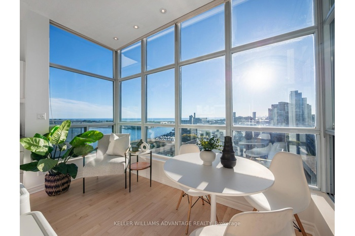 Breath taking views! The kind of condo that as soon as you open the door a whole new world appears and a quiet WOW escapes from your lips. Sparkling Interior in this exquisite Corner Penthouse Suite. You can enjoy unparalleled panoramic views of Lake Ontario, the Marina, Island Airport and Toronto's iconic skyline from every angle. Upon entering, you are greeted by expansive, light-filled spaces highlighted by soaring 10 foot high ceilings and floor-to-ceiling windows framing breathtaking lake vistas. The gorgeous light real hardwood floors recently refinished set the stage for a tranquil home in the sky. The open floor plan seamlessly integrates a cozy breakfast area and quiet reading area boasting serene marina and lake views, with a modern kitchen outfitted with stainless steel appliances and stone counters. Included in the maintenance fee are all utilities, ensuring hassle-free living. Residents of Aqua Condominiums enjoy access to world-class amenities, including recently renovated rooftop sundeck lounge perfect for entertaining against the backdrop of Toronto's horizon, and a state-of-the-art gym that overlooks the water and island airport. Working out has never been so inviting . Additional features include dedicated parking, 24-hour concierge service, guest parking, and on-site property management, offers unparalleled convenience and security. Embrace this rare opportunity to own a corner penthouse unit in Aqua Condominiums, where luxury meets lifestyle in Toronto's vibrant waterfront community. Experience urban sophistication in one of the city's most coveted locations. Extraordinary property steps to Rogers Center, CN tower, restaurants, Toronto Island Airport, and all the Toronto Waterfront has to offer. You may never want to leave.