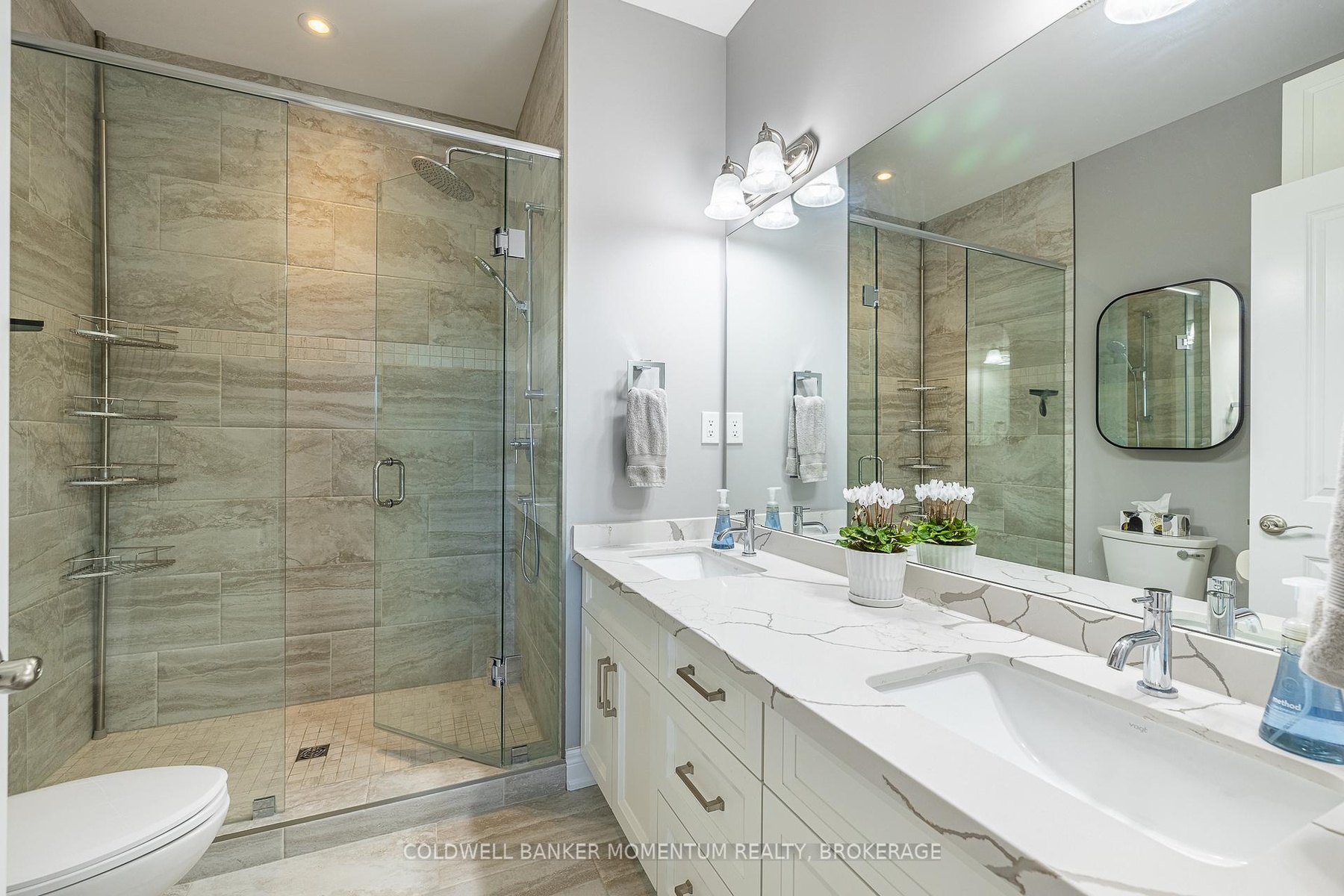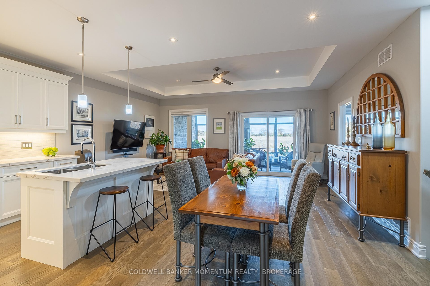 Stunning 4 yr old end-unit bungalow townhouse nestled in the exclusive Spring Creek Manor development of Smithville where it perfectly blends modern luxury with small-town charm. Featuring 2+1 bedrooms and 3 full bathrooms, this beautifully upgraded home offers elegant finishes, thoughtful design, and peaceful surroundings - all just minutes from local amenities, shopping, coffee shops and more. Step inside to discover a bright open-concept main floor where the kitchen, living and dining areas flow seamlessly together - ideal for everyday living or entertaining guests. The gourmet kitchen boasts quartz countertops, stylish tile backsplash, a working island and four stainless steel appliances. Engineered hardwood flooring throughout the main floor adds warmth and sophistication. The versatile second bedroom is perfect as a guest suite or home office, while the 4 pc main bathroom and convenient main-floor laundry with direct access to the double car garage enhance comfort and functionality. The spacious primary bedroom is a true sanctuary featuring a spa-inspired 4 pc ensuite and walk-in closet. Expanding the living space is the beautifully finished basement with large recreation room, a third bedroom, 3 pc bathroom and generous storage areas. The pièce de résistance is the screened-in back porch that overlooks farmland for as far as the eye can see, making it the perfect space for privacy, relaxation and tranquility. Enjoy barbecuing on your private deck with gas BBQ hookup. Condo fee includes: water, parking, snow removal, lawn care and common area maintenance. Don't miss this rare opportunity to own a luxurious, move-in-ready bungalow townhome in an exclusive enclave of 11 vacant land condominium's just minutes from everything Smithville has to offer!