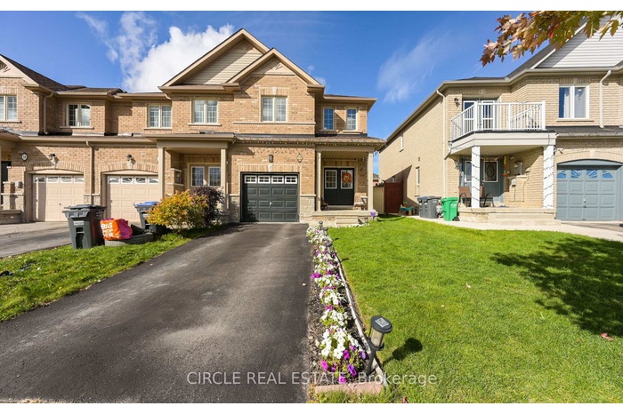 Built in 2015 and offering 1763 sqft (as per MPAC) above ground, plus an additional 836 sqft (as per MPAC) in the basement, this beautiful and very well-kept 3+1 bedroom, 4-washroom end-unit townhouse is a true gem. Featuring a double-door main entrance, an upgraded kitchen with modern countertops, and a large private backyard, this home has no house at the front, ensuring great privacy and an open view. The property boasts a functional layout with plenty of natural light, a private driveway, and no carpet throughout. Conveniently located close to parks, schools, plazas, and Hwy 410 - move-in ready and perfect for families!