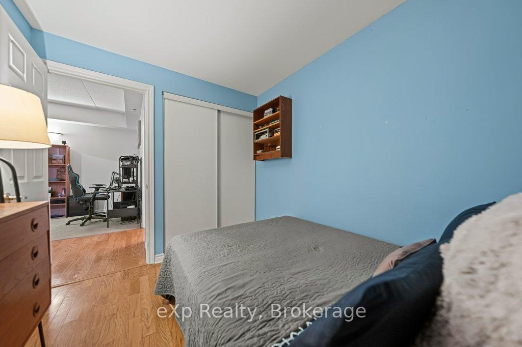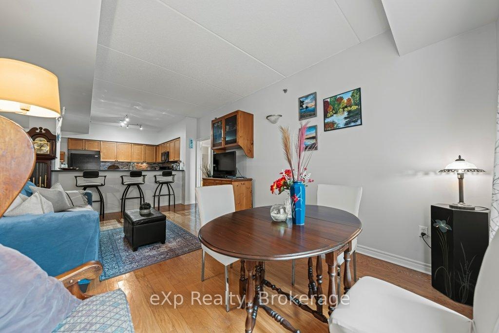 Sitting at over 1,100 sq ft, this one-bedroom plus den easily functions as a two-bedroom unit, features two bathrooms, and comes with an underground parking spot and storage locker. An inviting entranceway leads to the spacious kitchen, featuring ample cabinets, counter space, and a breakfast bar. Hardwood flooring in the living room, dining room, and leading into the primary bedroom, featuring a private covered balcony, walk-in closet, and ensuite bath with a stand-up shower and separate soaker tub. The den is being used as a second bedroom and also has hardwood floors and easy access to the second bathroom. In-suite laundry and low condo fees, which includes water, make this super affordable living. The location features amazing walking trails, great schools, and parks!