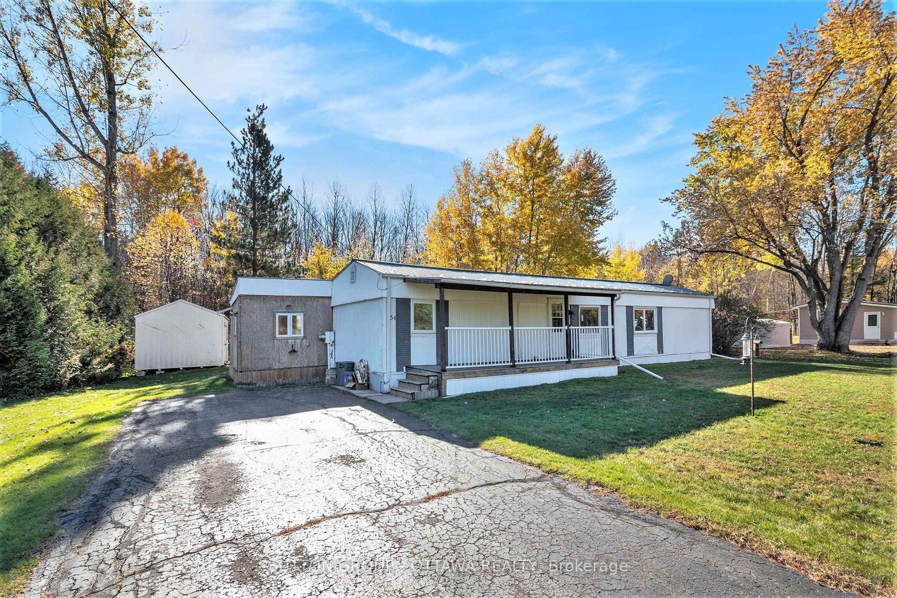 Welcome to 54-5620 Rockdale Road! Discover an incredible opportunity to own a beautifully updated 2-bedroom, 1-bathroom home nestled on an oversized lot surrounded by mature trees. Step inside to a bright and inviting open-concept layout featuring a spacious eat-in kitchen and a cozy living room filled with natural light. The main level offers two comfortable bedrooms and a well-appointed 4-piece bathroom, complete with a tucked-away laundry area for added practicality. Outside, this property truly shines with its expansive half-acre landscaped lot-perfect for gardening, entertaining, or simply relaxing in nature. A large workshop/shed provides an ideal setting for hobbies or DIY projects. Enjoy peace of mind with land lease fees of approximately $700/month, which includes: land rent, property taxes, road maintenance, septic infrastructure, and garbage removal. This property combines the comfort of a well-kept home with the charm of tranquil, country-style living-don't miss your chance to make it yours! **New owners must obtain park approval from Killam prior to purchase**