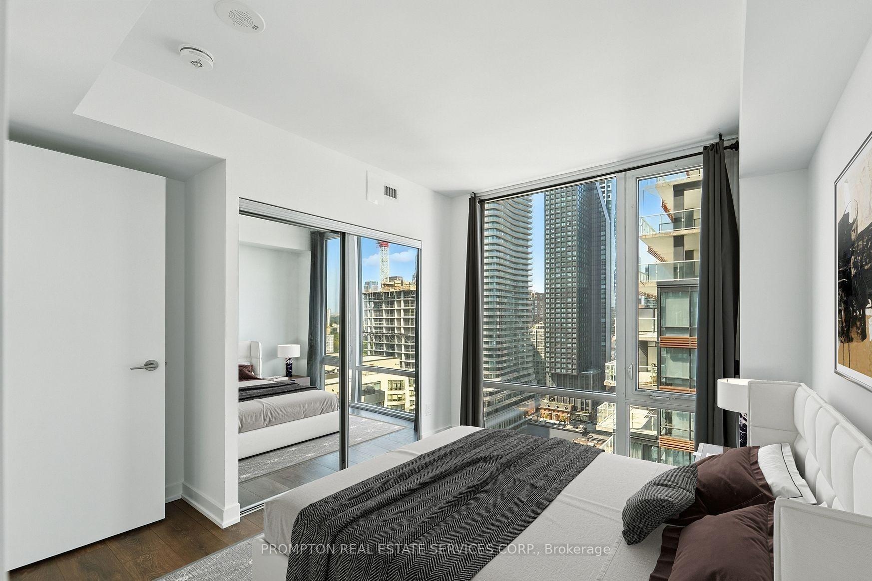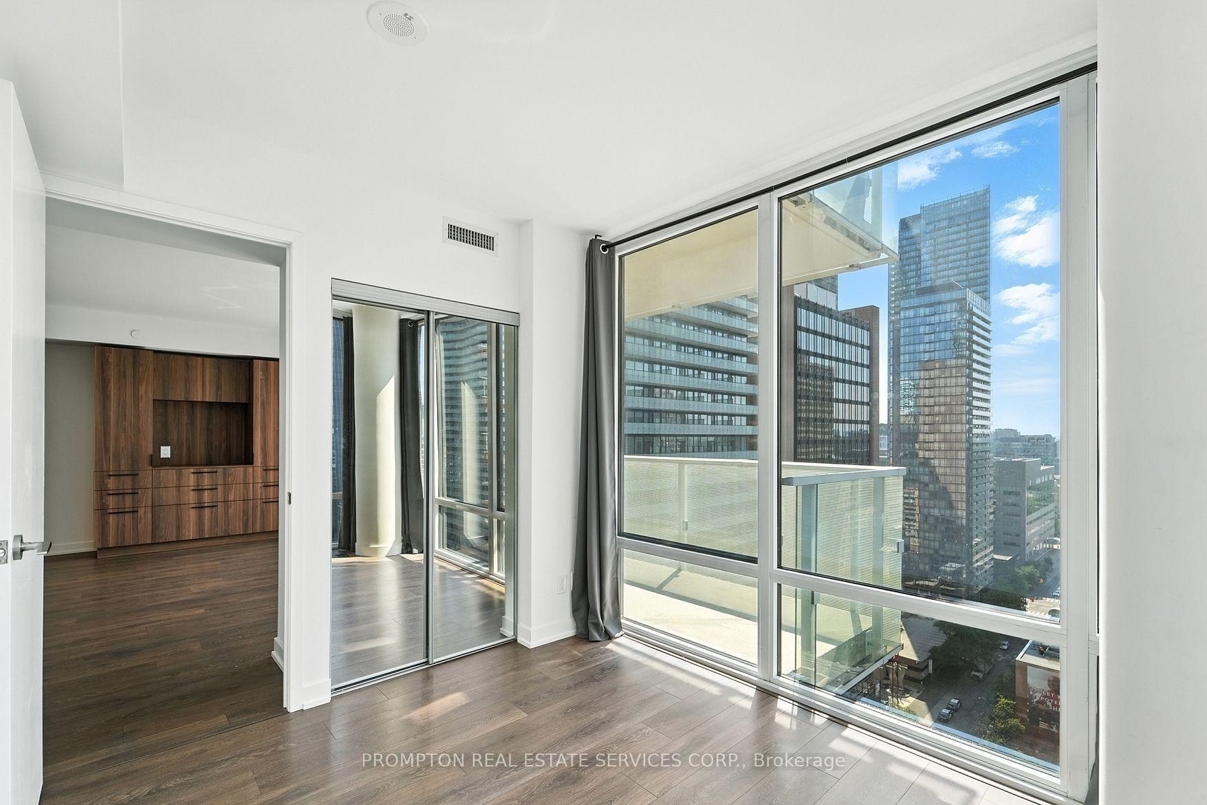 Allow short term of 8 months. Discover refined downtown living in this bright and stylish 2+1 bedroom corner suite at Teahouse Condos, soaring above the city on the 18th floor with breathtaking west and north views. Designed with comfort and sophistication in mind, this residence showcases floor-to-ceiling windows, a generous private balcony, a modern open-concept kitchen with integrated appliances, and a flexible den ideal for a home office or guest space. Perfectly located just steps from Yonge Street, subway stations, top universities, major hospitals, and Toronto's best dining and shopping, it offers the ultimate in urban convenience. Enjoy premium building amenities including a 24-hour concierge, fitness centre, yoga studio, outdoor terrace, and guest suites-a rare opportunity to own a corner suite in one of downtown Toronto's most connected communities.