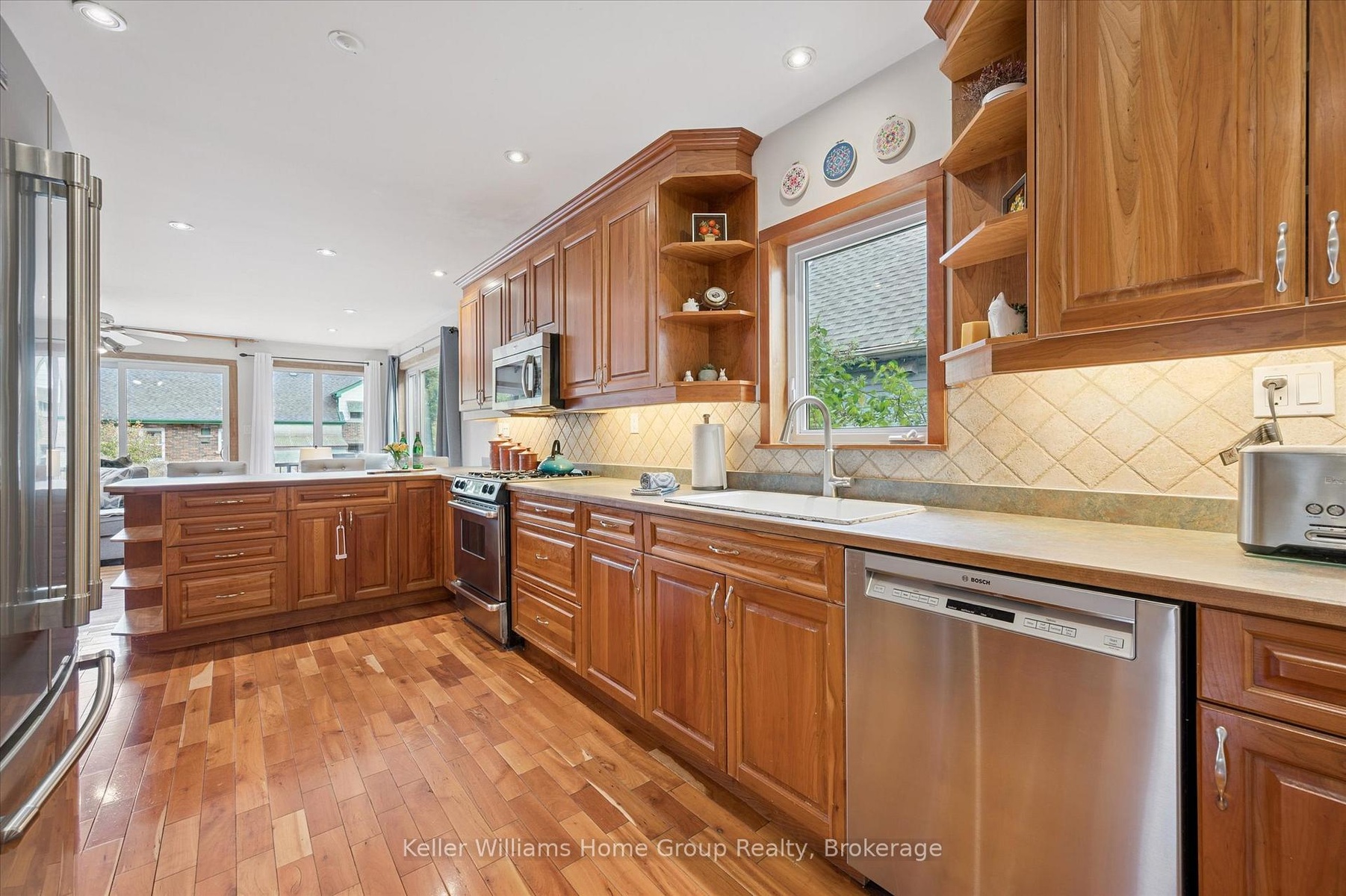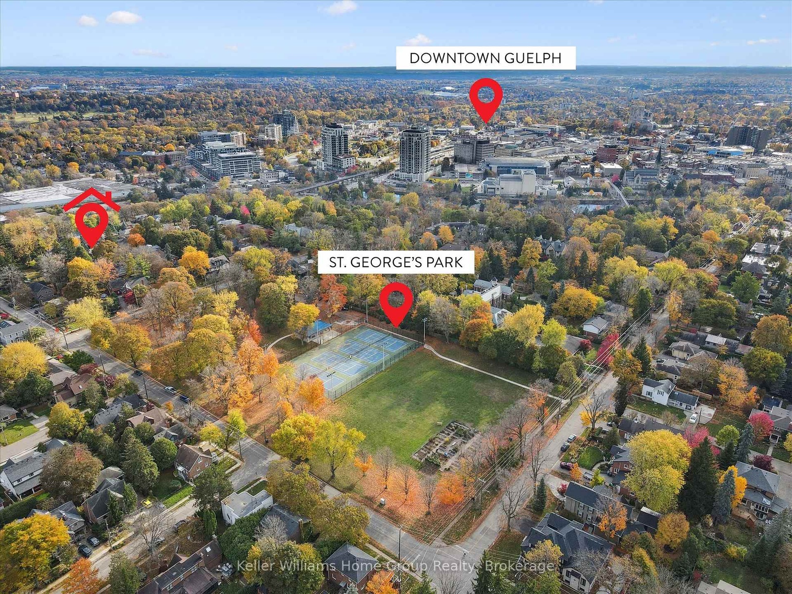 OPEN HOUSE SAT 2-4PM! Located just steps to the coveted St Georges Park, this beautiful home is tucked onto a quiet crescent at the top of the hill in the St Georges Park neighbourhood. 47 Hillcrest is a charming bungalow that features a rear addition built in the early 2000's. It is deceiving from the exterior, but this home is now over 2000sf in size. When you enter, you'll notice the original charm that has been maintained throughout the years. The living room is bright and airy, thanks to the bay window at the front and connects to the dining room through a large arched opening. Further back, you'll find an open concept kitchen with ample peninsula seating. At that back of the addition is a huge family room with gas fireplace that overlooks the backyard, which is connected via a large sliding door (2024) and offers privacy on the deck (2023). There is also main level laundry! Upstairs there is a spacious primary suite with walk in closet and ensuite. The lower level is fully finished and offers tons more living space including an additional bedroom, 3pc bathroom, rec room, den, storage and more. As part of the main level and basement addition (all permitted), the home was upgraded to 200 AMP service. Low maintenance great sized backyard with natural gas hookup for a BBQ. There is a detached garage (new roof 2025) and mutual parking with total parking space for 2 cars. This home should be on your 'must see' list! Hillcrest Dr is a street of friendly neighbours who take pride in their homes and this home located in the desired King George French Immersion catchment. Walkable to downtown Guelph, GO/ Via, grocery stores and many other amenities. Don't miss it