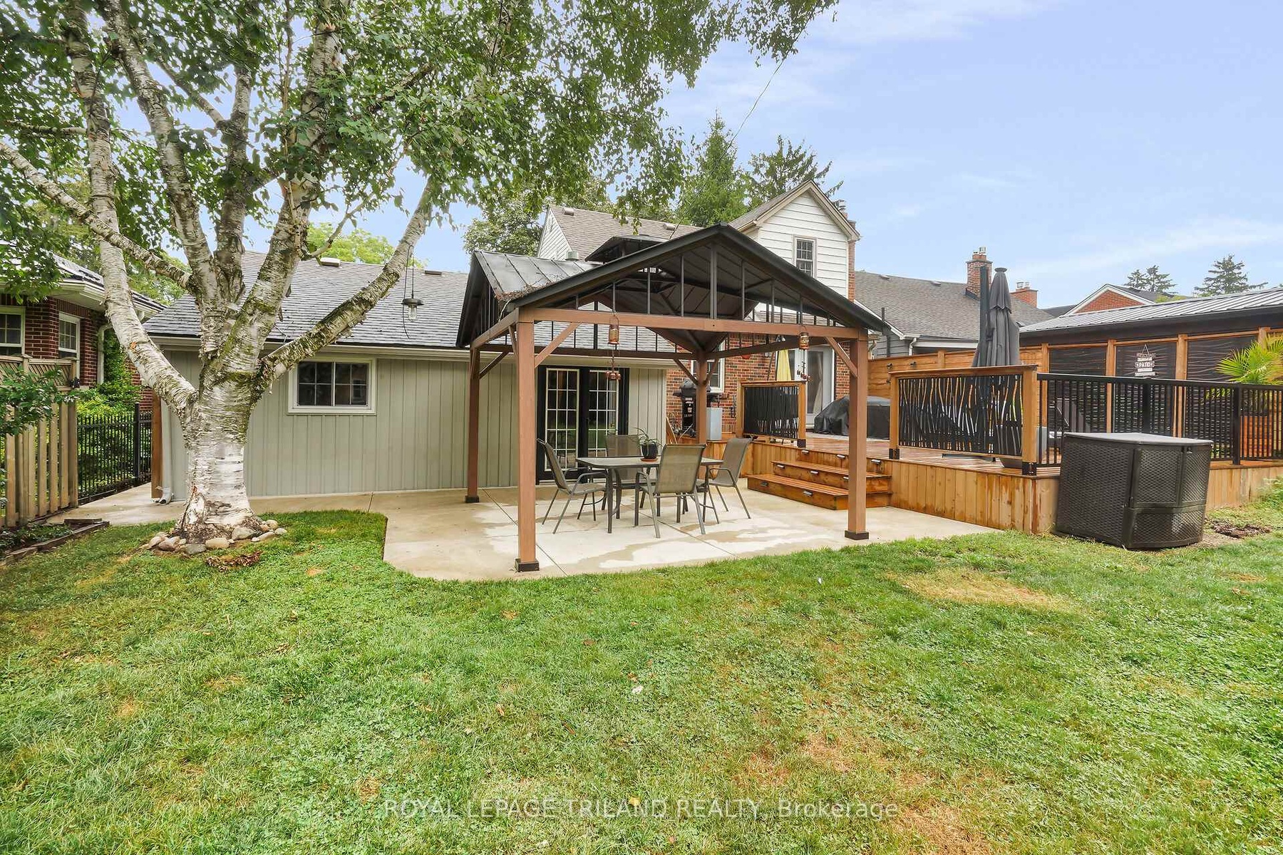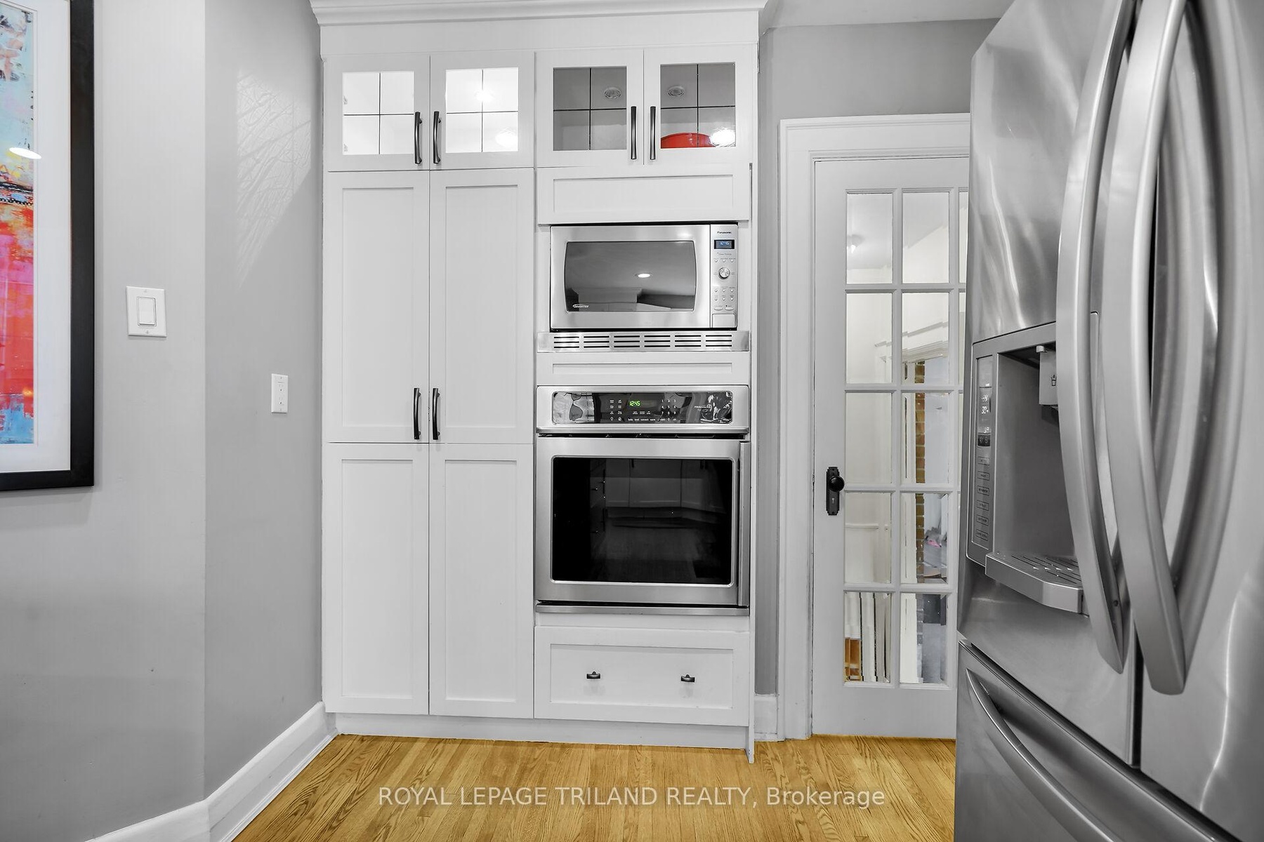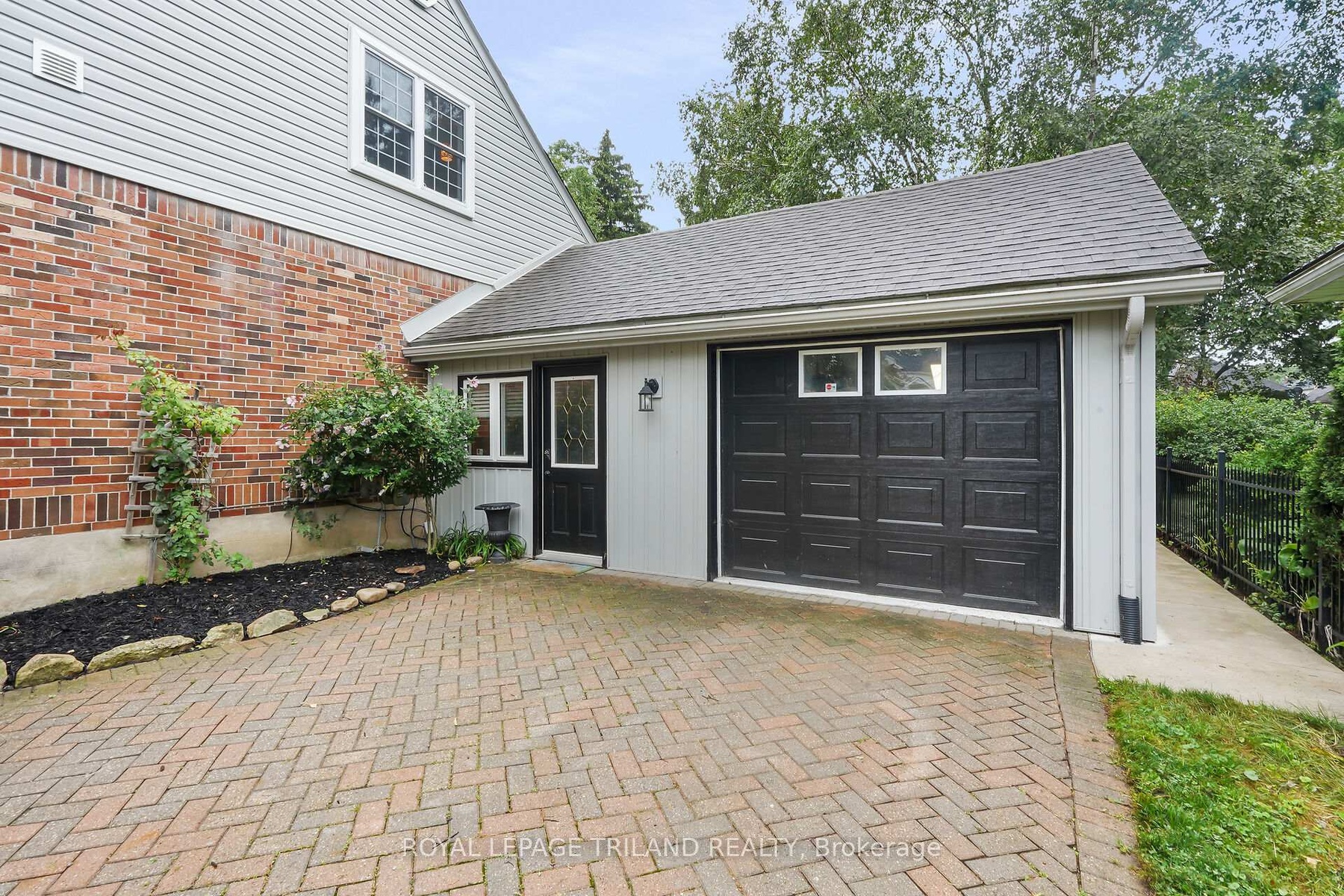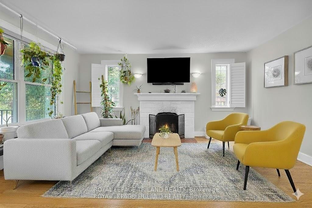 Charming Old South Gem on a Picturesque Lot. This home is nestled on one of London's most sought-after streets, this beautifully maintained 3 bedroom, 3 bath home with attached garage blends timeless charm with modern updates. From the moment you arrive, you'll be impressed by its curb appeal, ample parking, covered front porch, and welcoming facade. Inside, the carpet-free open-concept layout is perfect for entertaining. The updated kitchen (2018) showcases classic white cabinetry with glass displays, quartz counters, stylish tile backsplash, and an island with seating. Stainless steel appliances include a wall oven, built-in microwave, gas cooktop, refrigerator, and dishwasher. The bright living/dining area features a cozy fireplace, while the spacious main floor bedroom with deck access and a 4-piece bath (with in-floor heating) offers the convenience of one floor living. A laundry room and sun filled family room with gas stove and patio access complete the main level. Upstairs, the private primary suite includes a 3-piece ensuite and a versatile lounge with custom built-ins, ideal for a home office or reading nook. The finished lower level adds a rec room, bedroom, 3-piece bathroom, and generous storage. The fully fenced backyard is a private retreat with a new deck and railing (2023),concrete patio, BBQ gas line, and garden shed, perfect for family and pets. Notable updates include newer windows, siding, soffits, eaves(2022), just installed a new egress window in the lower level bedroom, oversized insulated garage with heat, A/C, upgraded220 AMP electrical (EV-ready), and more. All this just minutes from Wortley Village, parks, schools, hospital and transit, truly an Old South treasure.