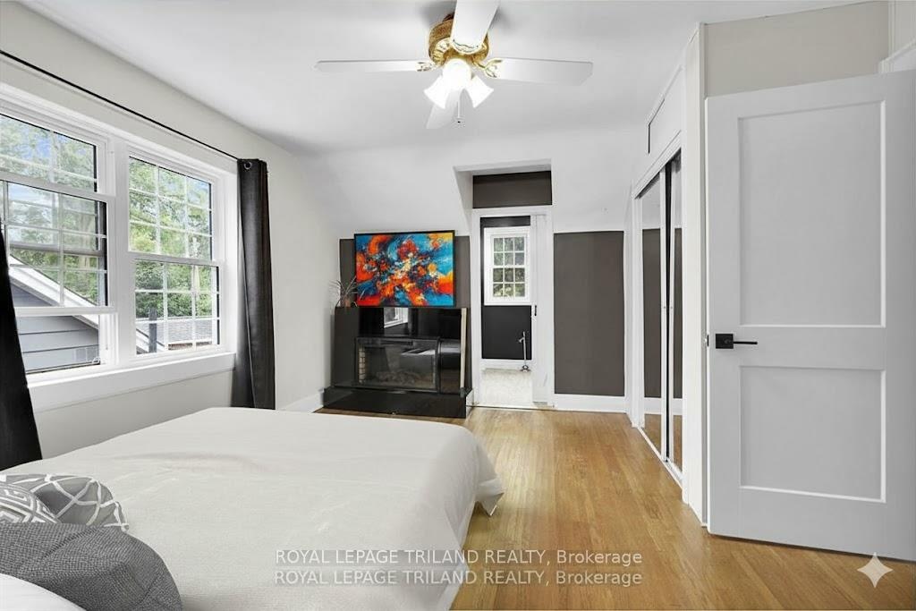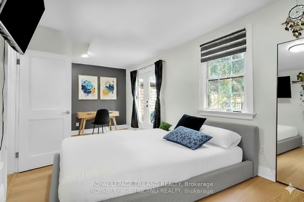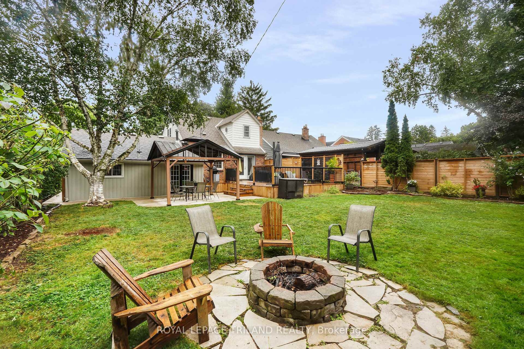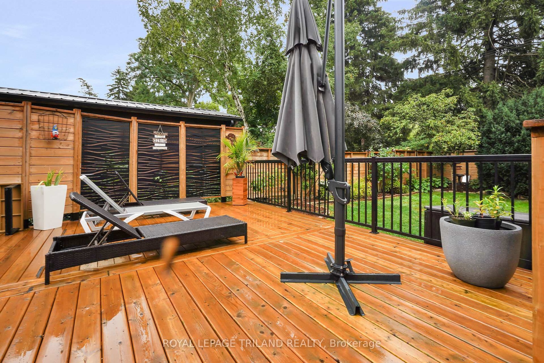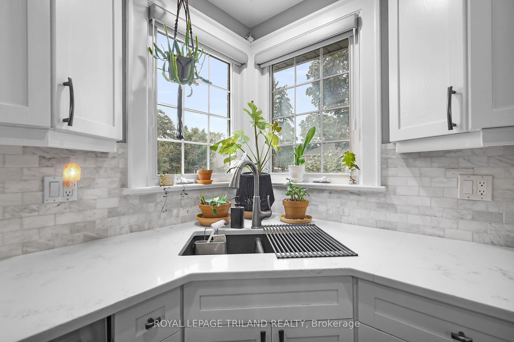 Charming Old South Gem on a Picturesque Lot. This home is nestled on one of London's most sought-after streets, this beautifully maintained 3 bedroom, 3 bath home with attached garage blends timeless charm with modern updates. From the moment you arrive, you'll be impressed by its curb appeal, ample parking, covered front porch, and welcoming facade. Inside, the carpet-free open-concept layout is perfect for entertaining. The updated kitchen (2018) showcases classic white cabinetry with glass displays, quartz counters, stylish tile backsplash, and an island with seating. Stainless steel appliances include a wall oven, built-in microwave, gas cooktop, refrigerator, and dishwasher. The bright living/dining area features a cozy fireplace, while the spacious main floor bedroom with deck access and a 4-piece bath (with in-floor heating) offers the convenience of one floor living. A laundry room and sun filled family room with gas stove and patio access complete the main level. Upstairs, the private primary suite includes a 3-piece ensuite and a versatile lounge with custom built-ins, ideal for a home office or reading nook. The finished lower level adds a rec room, bedroom, 3-piece bathroom, and generous storage. The fully fenced backyard is a private retreat with a new deck and railing (2023),concrete patio, BBQ gas line, and garden shed, perfect for family and pets. Notable updates include newer windows, siding, soffits, eaves(2022), just installed a new egress window in the lower level bedroom, oversized insulated garage with heat, A/C, upgraded220 AMP electrical (EV-ready), and more. All this just minutes from Wortley Village, parks, schools, hospital and transit, truly an Old South treasure.