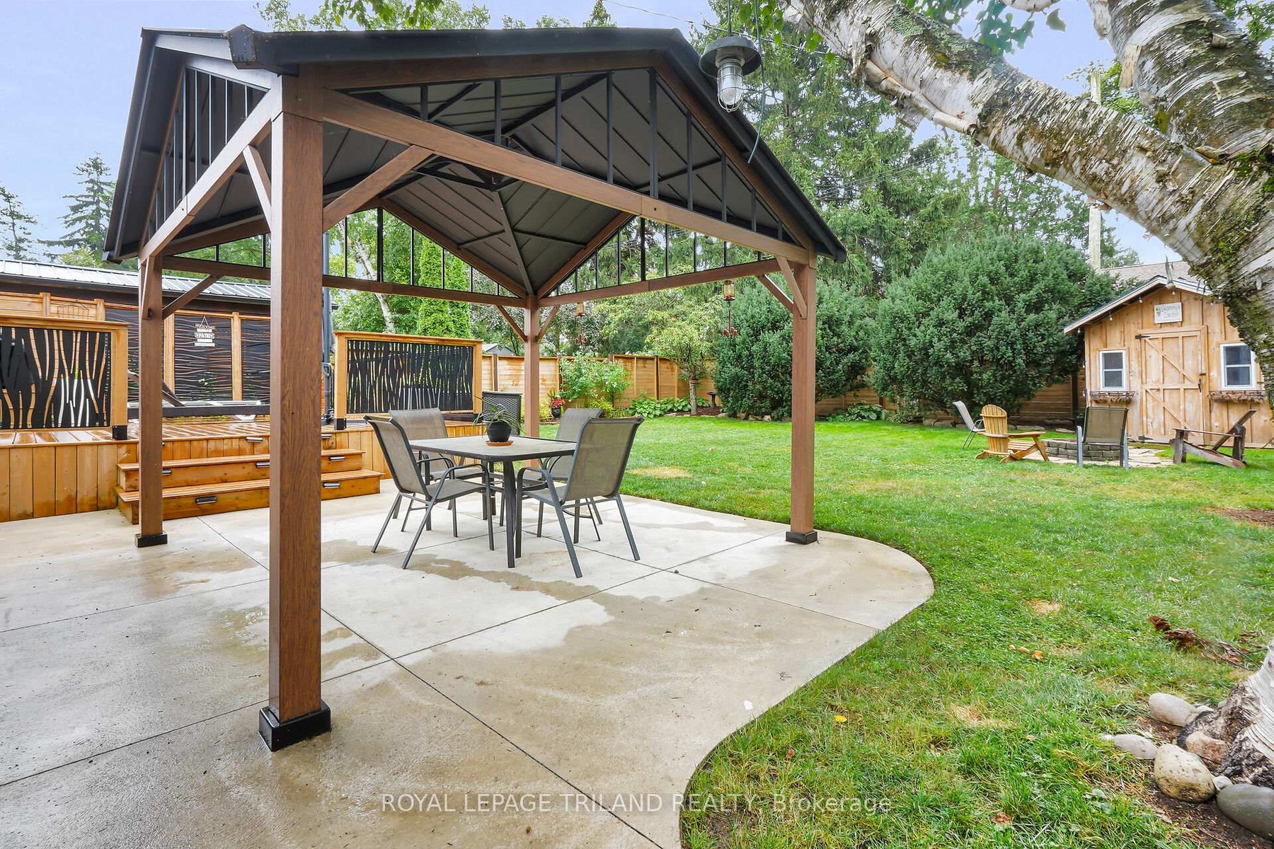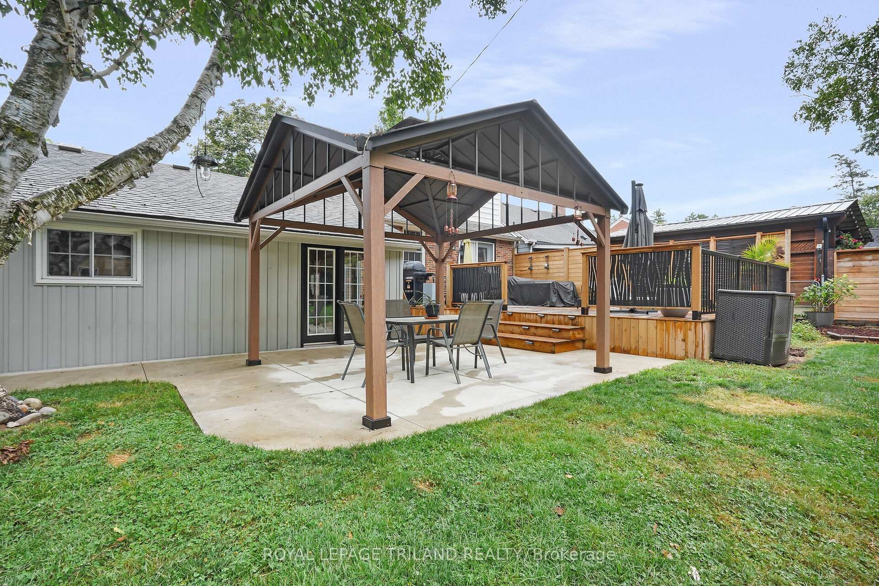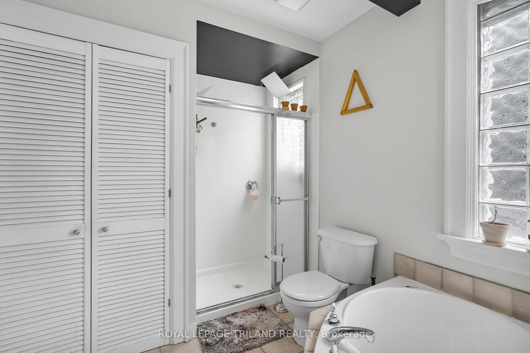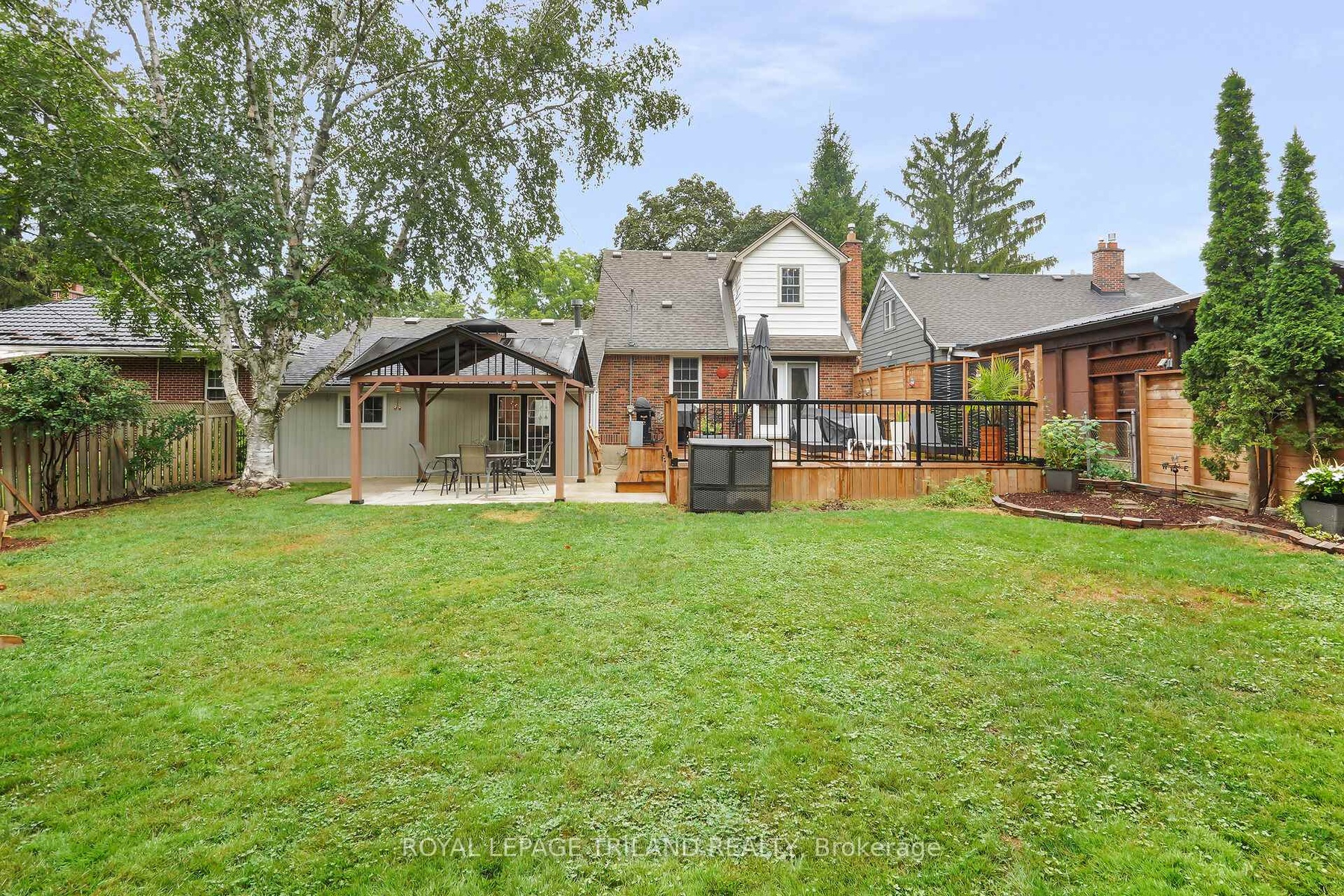 Charming Old South Gem on a Picturesque Lot. This home is nestled on one of London's most sought-after streets, this beautifully maintained 3 bedroom, 3 bath home with attached garage blends timeless charm with modern updates. From the moment you arrive, you'll be impressed by its curb appeal, ample parking, covered front porch, and welcoming facade. Inside, the carpet-free open-concept layout is perfect for entertaining. The updated kitchen (2018) showcases classic white cabinetry with glass displays, quartz counters, stylish tile backsplash, and an island with seating. Stainless steel appliances include a wall oven, built-in microwave, gas cooktop, refrigerator, and dishwasher. The bright living/dining area features a cozy fireplace, while the spacious main floor bedroom with deck access and a 4-piece bath (with in-floor heating) offers the convenience of one floor living. A laundry room and sun filled family room with gas stove and patio access complete the main level. Upstairs, the private primary suite includes a 3-piece ensuite and a versatile lounge with custom built-ins, ideal for a home office or reading nook. The finished lower level adds a rec room, bedroom, 3-piece bathroom, and generous storage. The fully fenced backyard is a private retreat with a new deck and railing (2023),concrete patio, BBQ gas line, and garden shed, perfect for family and pets. Notable updates include newer windows, siding, soffits, eaves(2022), just installed a new egress window in the lower level bedroom, oversized insulated garage with heat, A/C, upgraded220 AMP electrical (EV-ready), and more. All this just minutes from Wortley Village, parks, schools, hospital and transit, truly an Old South treasure.