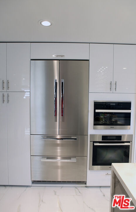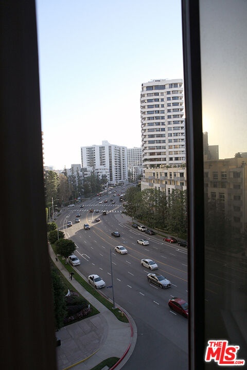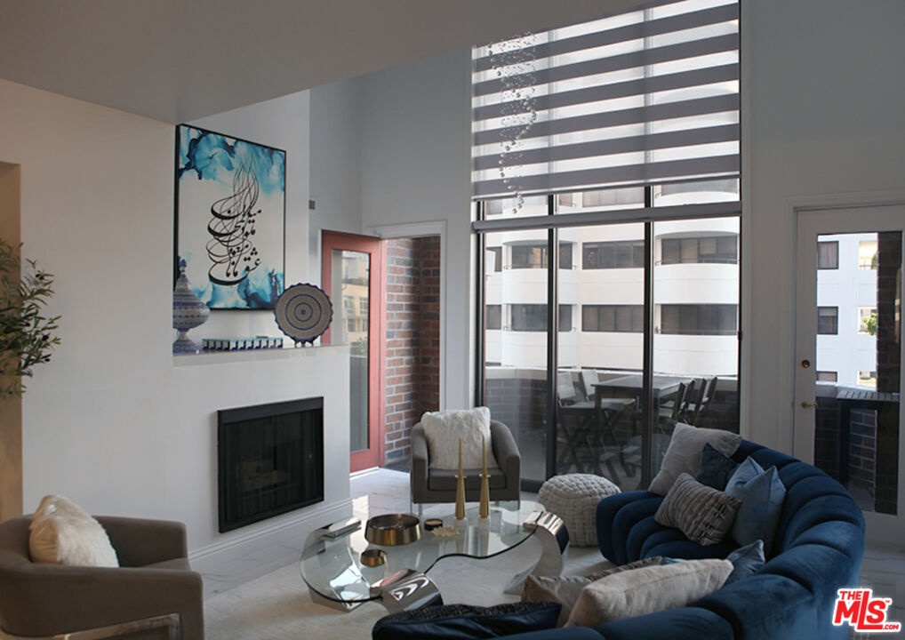 Welcome to The Wilshire Thayer where a luxurious, northwest-facing corner residence showcasing striking street and city views awaits you. This sophisticated two-story condominium features 2 bedrooms, 2.5 baths, approximately 2,146 sqft of living space, and elegant modern design throughout. Step inside to a formal entry leading to an expansive open-concept dining and living area with fireplace and framed by floor-to-ceiling glass which leads to a balcony overlooking the city. The gourmet kitchen boasts carrera marble countertops, custom cabinetry, a breakfast bar, and top-of-the-line Miele appliances. A den and stylish powder room complete the first floor, highlighted by sleek porcelain tile flooring throughout. A dramatic spiral staircase ascends to the upper level, where the spacious primary suite offers serene views, a fireplace, walk-in closet with safe, and custom built-ins. The primary bath includes a soaking tub, separate shower, dual vanity, and a dry bar with fridge. The junior suite offers its own full bath and overlooks the living area below and views through a striking NY loft-style glass. Plush carpeting throughout, laundry closet, and a convenient secondary entrance complete the upper floor. Perfectly located minutes from Beverly Hills, Century City, Westwood Village, UCLA, and places of worship, this residence combines refined living with exceptional convenience.