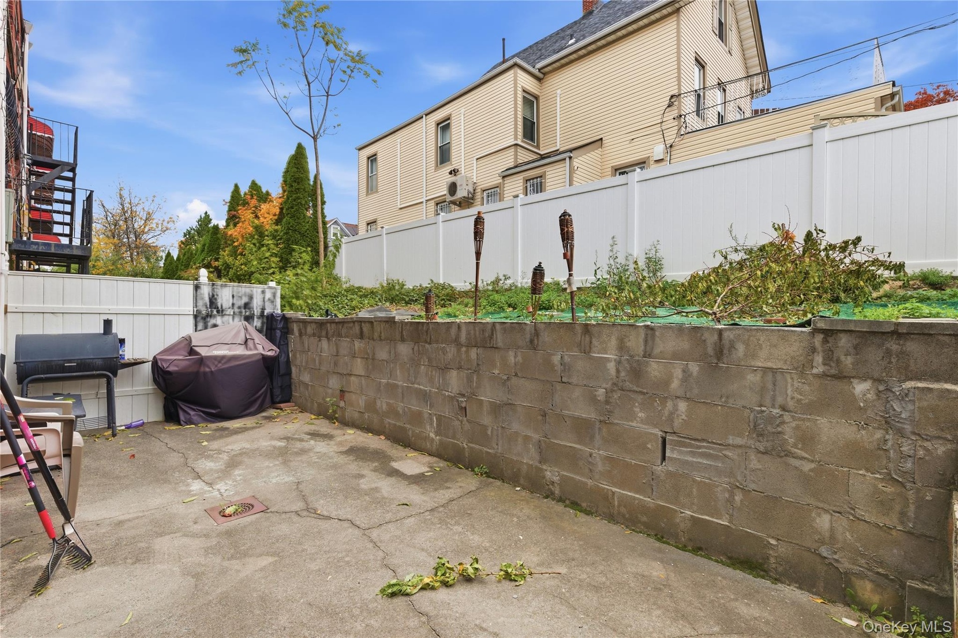 - Fenced backyard featuring area for grilling and a patio