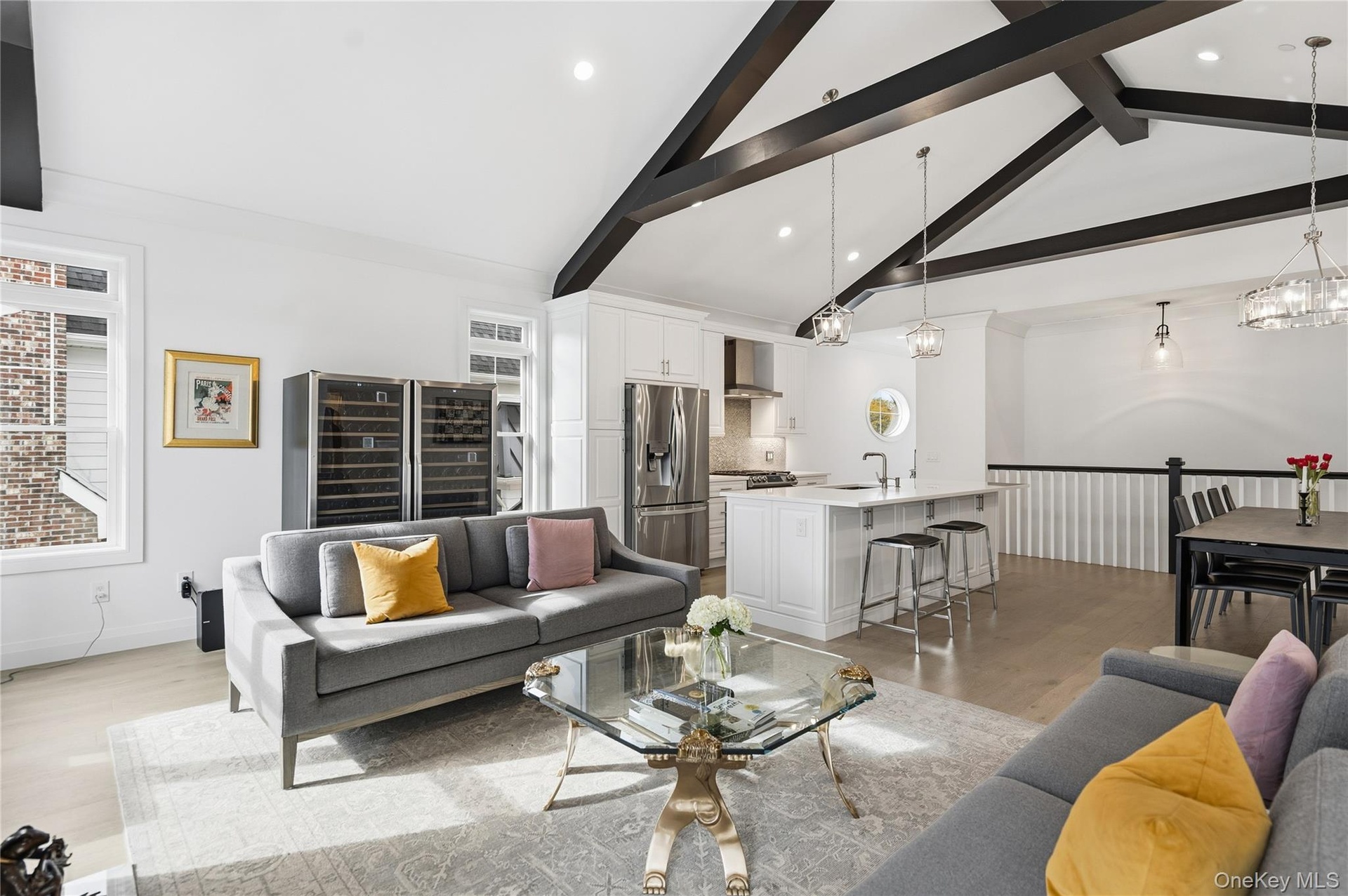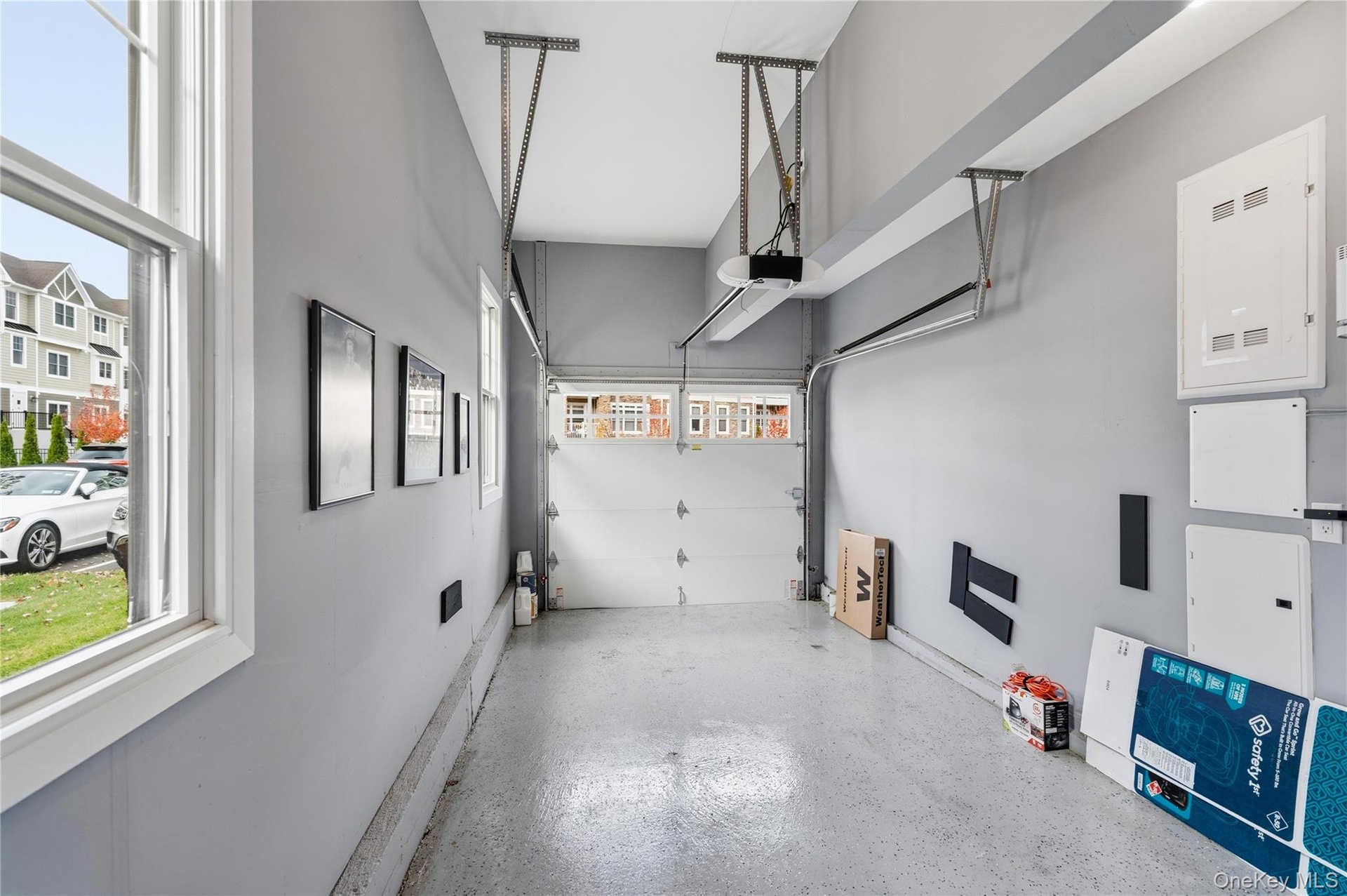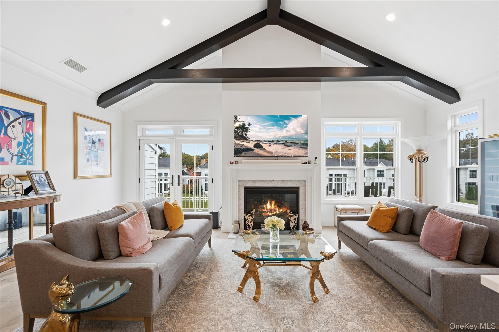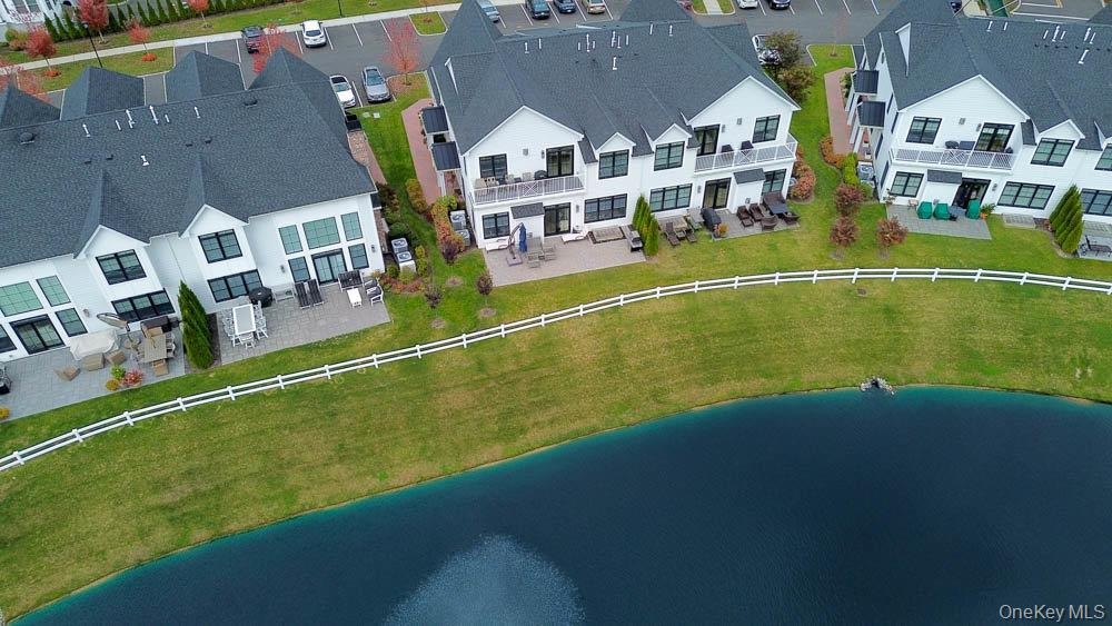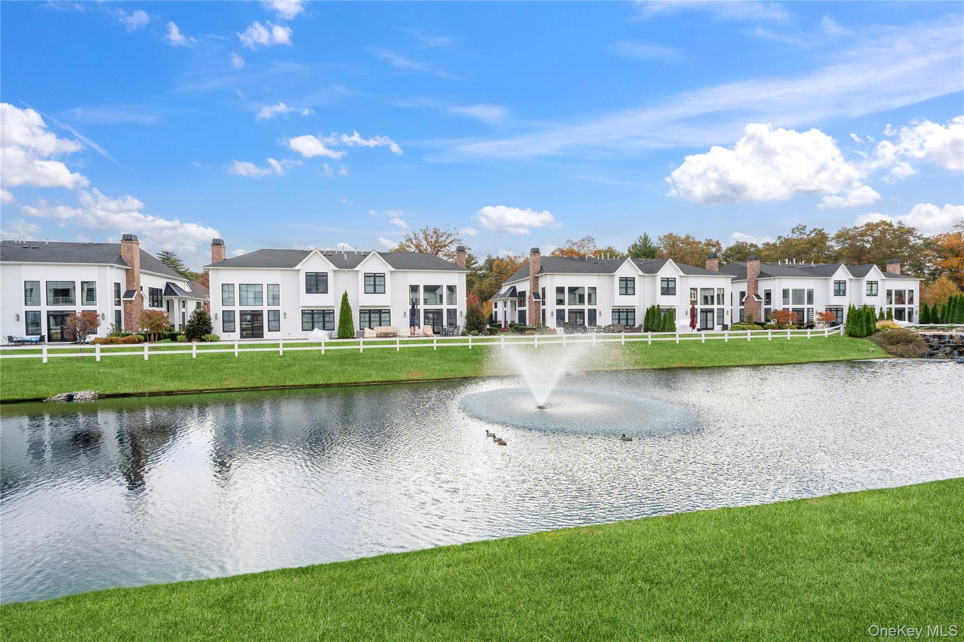 Prestigious Country Pointe Plainview Villa which is magazine worthy and customized throughout. A perfect location on the pond this desirable and sought after Georgetown model has main level living. situated in a premier gated community with an exclusive 29,000 square foot clubhouse. This model villa has a 1 car attached garage, a private elevator leading to 2 large bedrooms, bonus room (or third bedroom, office or den), custom floors, windows and moldings,  a chef's kitchen with an oversized center island finished in quartz, state of the art stainless steel appliances, including microwave draw, outside exhaust, gas oven, custom cabinets to ceiling with crown molding and designer backsplash. The adjoining great room has an abundance of natural light with a gas fireplace with custom surround. and doors to oversized deck with expansive pond frontage. All of the principle rooms have double height ceilings plus architectural beams. The main level primary offers large outfitted, walk-in closets, dressing area, ensuite custom bathroom with frameless walk-in shower and double sink vanity. There is a second full bath conveniently located in the hallway. In addition, a full laundry room is on the main level with double cabinets. Highlights include:  cathedral ceilings with beams, custom flooring, designer lighting fixtures and window treatments, French doors, access to oversized maintenance free deck, Situated in one of Long Island's premier communities. Community features include: 24 gated manned security, clubhouse, heated pool, poolside bar, tennis, bocce and pickle ball, gym, world-class golf courses only minutes away, Country Pointe shops, EV charging station, concierge and Director of events. Perfect home with a perfect lifestyle.