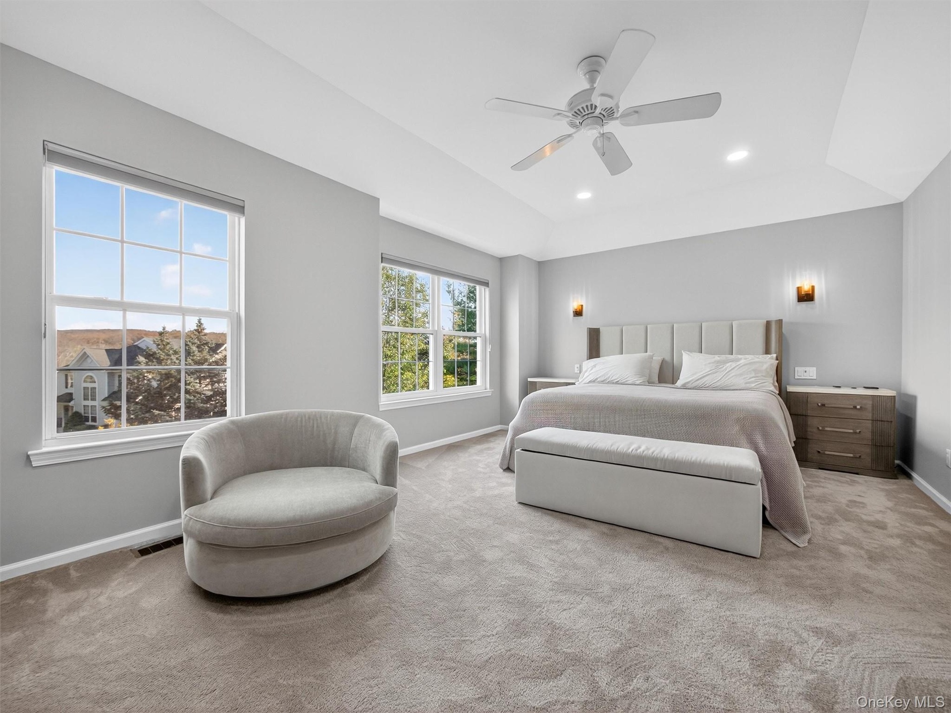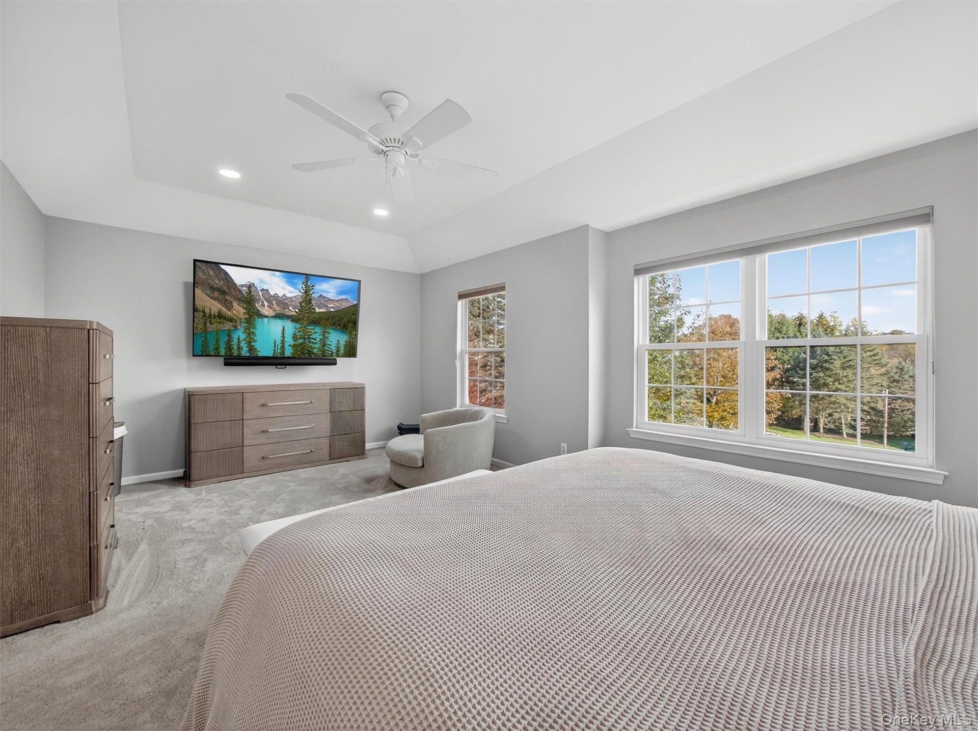 - Large bedroom with new carpeting featuring recessed lighting, and a tray ceiling