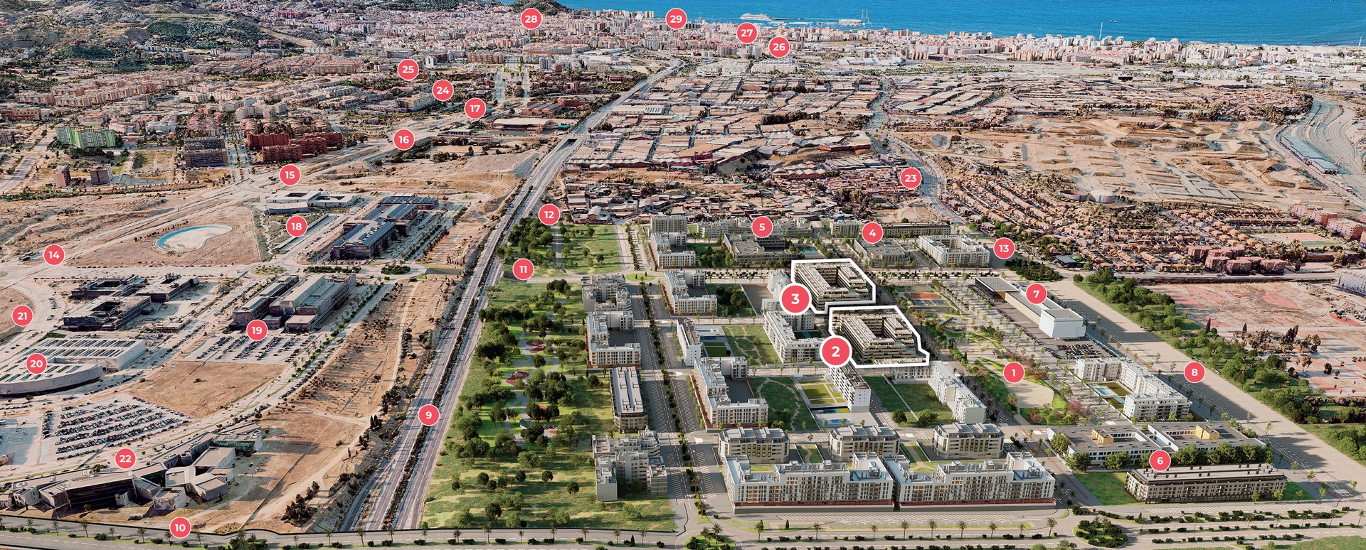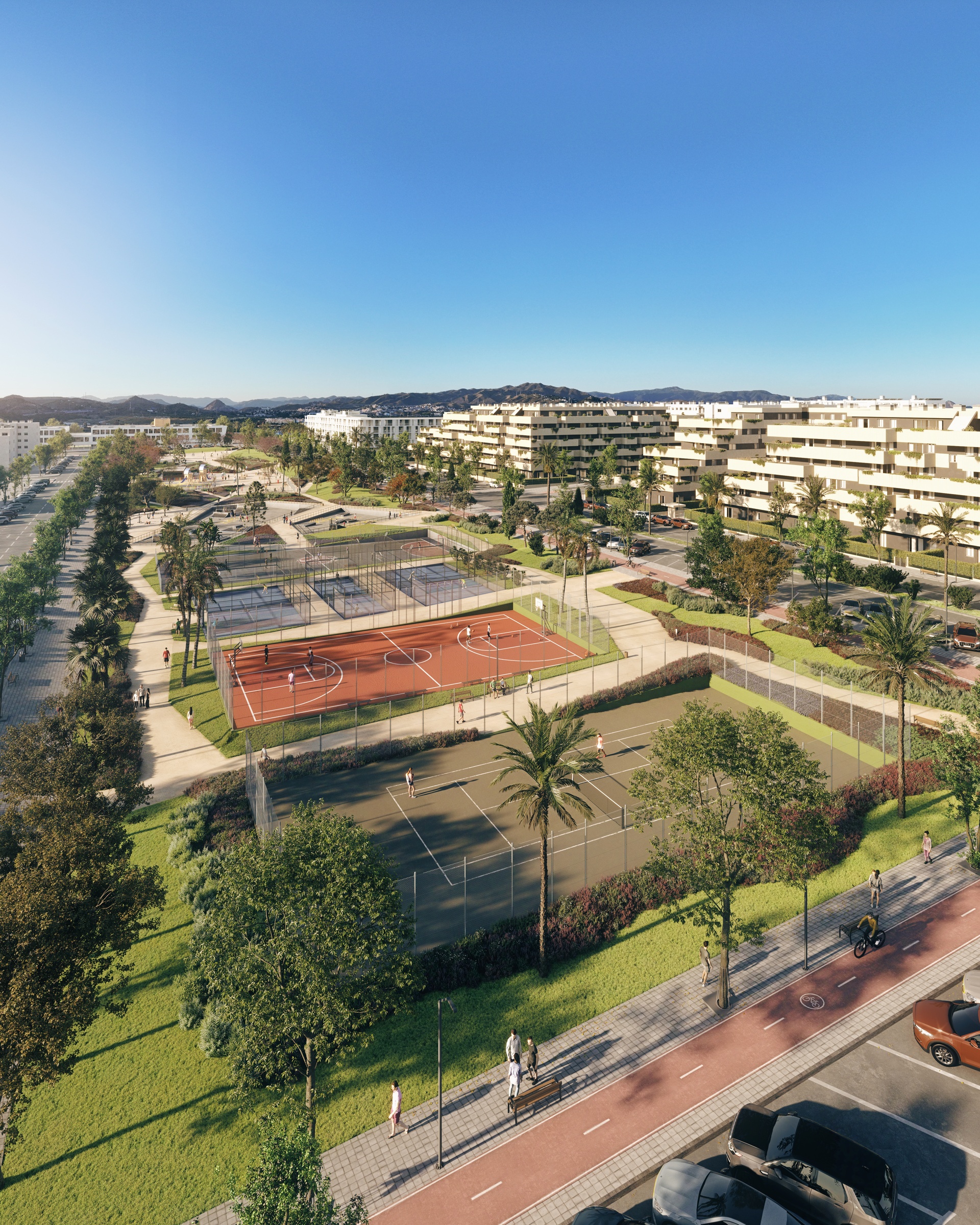 336 homes with 1, 2, 3 and 4 bedrooms, with large terraces. All properties include a parking space and a storage room in their price.