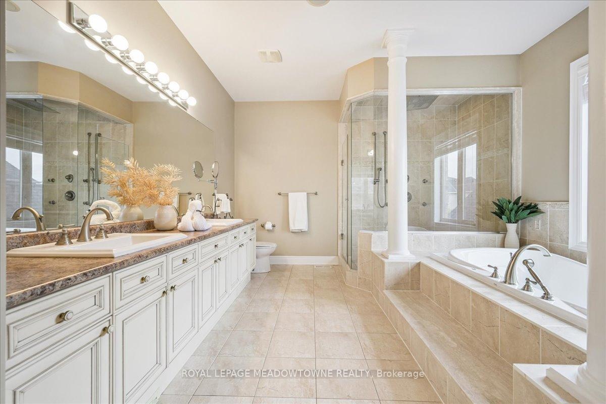 Nestled in Oakville's prestigious Joshua Creek sits this Fernbrook built 4 bed 4+1 bath beauty with over 5000 square feet of finished living space. Rare upgrades including 9 foot main level ceilings, 9 foot basement and upper level makes this home stand out from the crowd. Over $150K spent on landscaping and a large ionizer pool in the backyard give this home privacy, and beautiful views from every window. First time offered on market & true pride of ownership in every corner of this home is evident as this home has been loved and enjoyed by only 1 family since built in 2007. Oversized kitchen with large island, lots of cabinet space & butler pantry make this a dream chef's kitchen for entertaining family and friends. Large primary bedroom with fireplace and private sitting area, 2 large closets, and 5 piece ensuite with double vanity feels like a private oasis. Bedrooms 2 & 3 share a beautiful bathroom, while bedroom 4 has it's own ensuite and is perfect for a spare room. The basement is an entertainment masterpiece with large recreation room, pool table, wet bar, full bath with steam shower & Home Theatre Room with 110" screen and 7.2 surround sound. Whether looking for an executive home that is move in ready, or wanting to be in Oakville's best school district, this home has it all.
