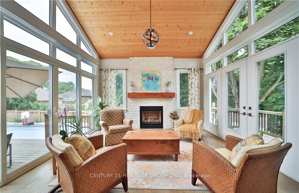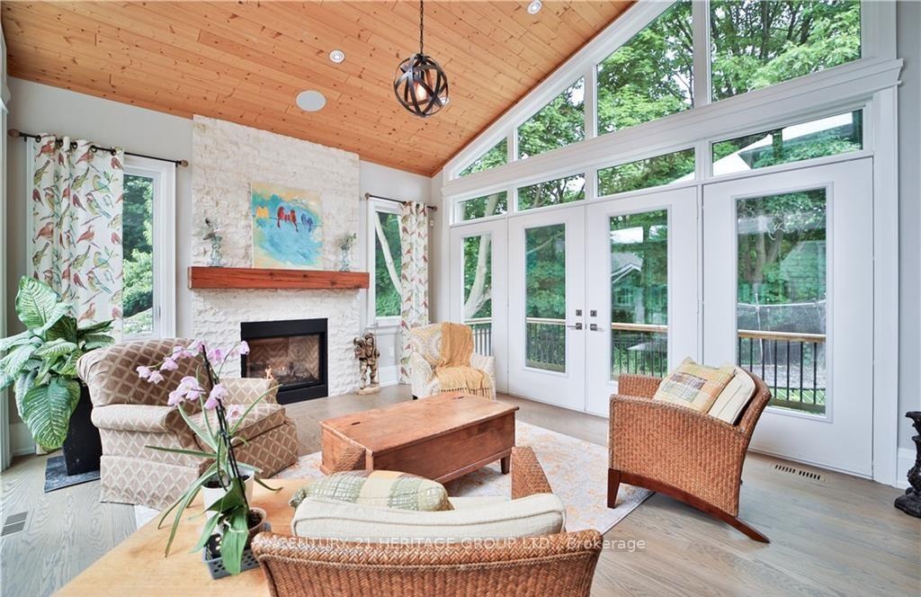 Welcome to one of the most unique properties in the sought-after Aldershot neighbourhood! This custom-built home offers 4,800 sq ft of finished living space on a rare 0.5-acre ravine-front lot, offering total privacy and a serene, natural setting. Designed and built by the owner (a custom home builder), the home was thoughtfully positioned to capture ravine views from nearly every room, with the 3-car garage located at the back. A grand two storey entry features a barn board accent wall, two-sided gas fireplace, elegant music room, and a stunning open-riser staircase. Soaring 9-ft ceilings rom basement to 2nd floor add to the spacious feel. Enjoy 4+1 bedrooms and 4+1 baths, with vaulted ceilings in 3 bedrooms. A sun-drenched 4-season sunroom with pine vaulted ceiling, gas fireplace, and floor-to-ceiling glass offers panoramic views of the ravine and saltwater pool. Quartz countertops and custom cabinetry are found throughout, along with site-finished hardwood, built-in speakers, and large windows bringing in natural light and lake glimpses. The expansive second-floor laundry room includes built-ins and a dedicated sewing desk. The finished basement with separate side entrance provides in-law suite.