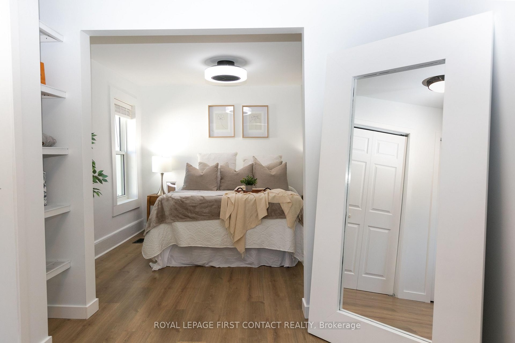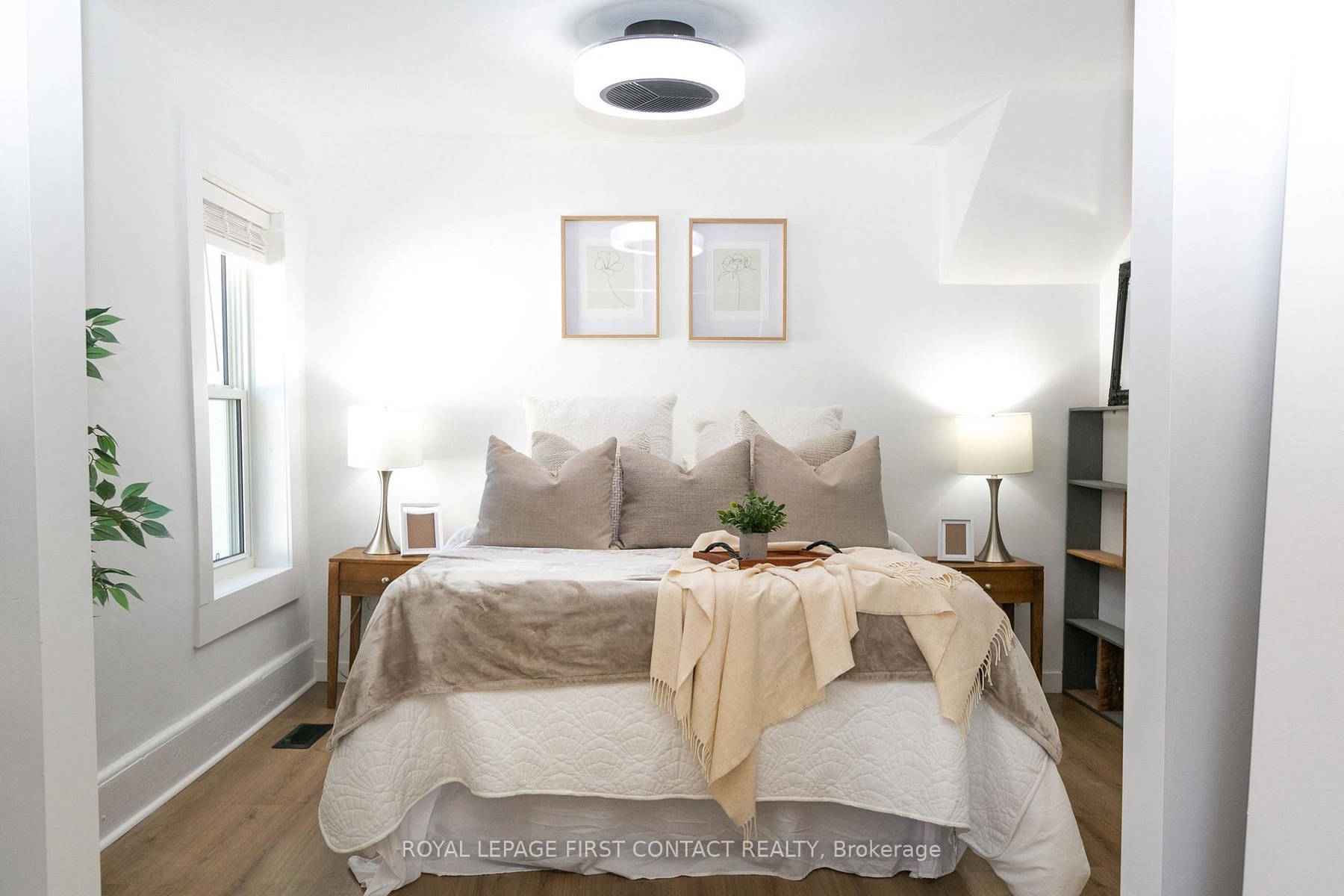 Welcome to this charming, move-in ready home thats ideal for first-time buyers or those looking to downsize. The main floor features a primary bedroom with a walk-in closet (easily convertible back to a third bedroom), a renovated 4-piece bathroom, and the convenience of main floor laundry. Freshly painted and completely carpet-free, the home showcases newer laminate flooring throughout. The open-concept layout offers a bright living and dining area, flowing seamlessly into the large kitchen with direct access to a private, fully fenced backyard. Enjoy outdoor living with a partially covered deck and plenty of space in the oversized shed (20 feet x 8 feet) perfect for lawn equipment, toys, or even a snowmobile. Upstairs, the cozy loft space makes an excellent guest area or home office. The unfinished basement provides plenty of storage options. All major updates have been taken care of, including newer roof, windows, doors, A/C, light fixtures, eavestroughs, and fascia, leaving you with peace of mind for years to come. Located close to Hwy 11 access, downtown for local shops and restaurants, and the beautiful Couchiching Beach, this home is move-in ready and waiting for you!