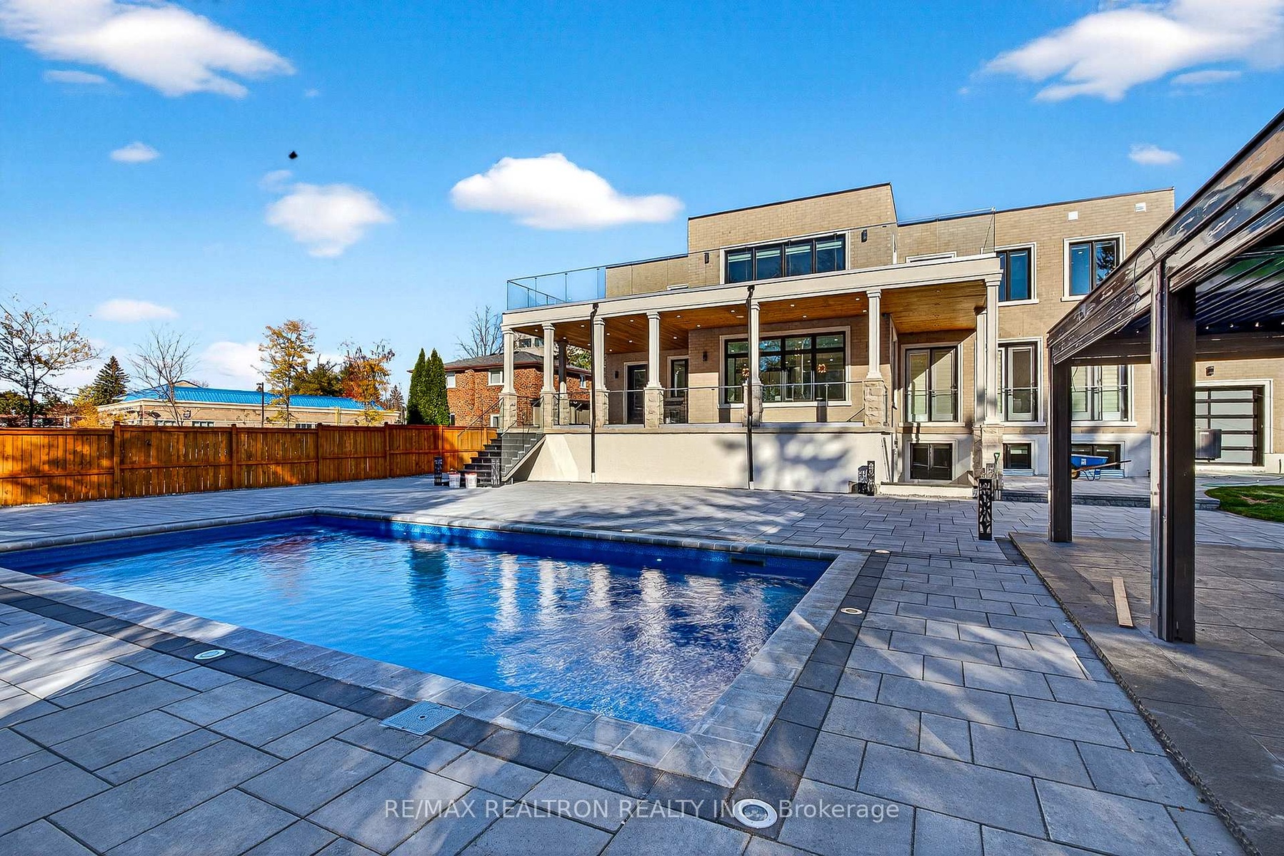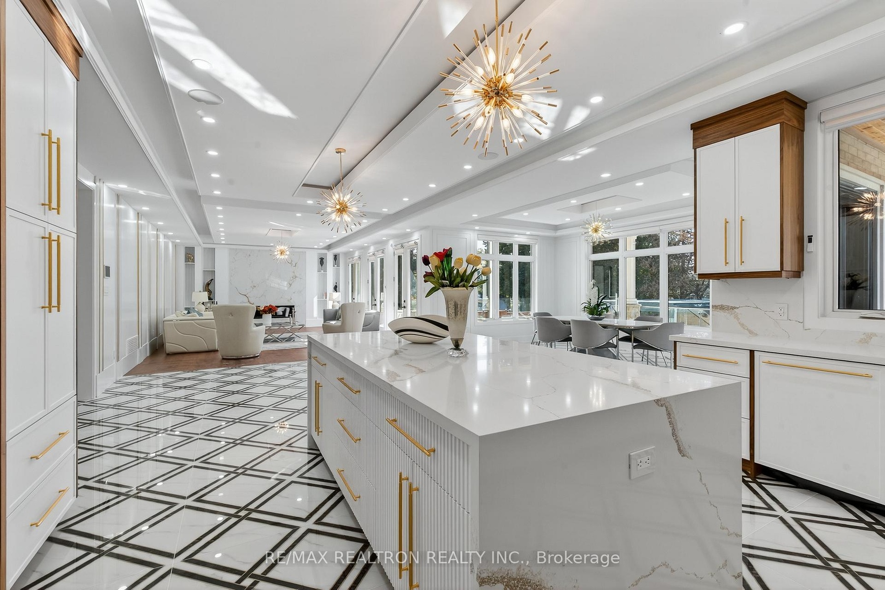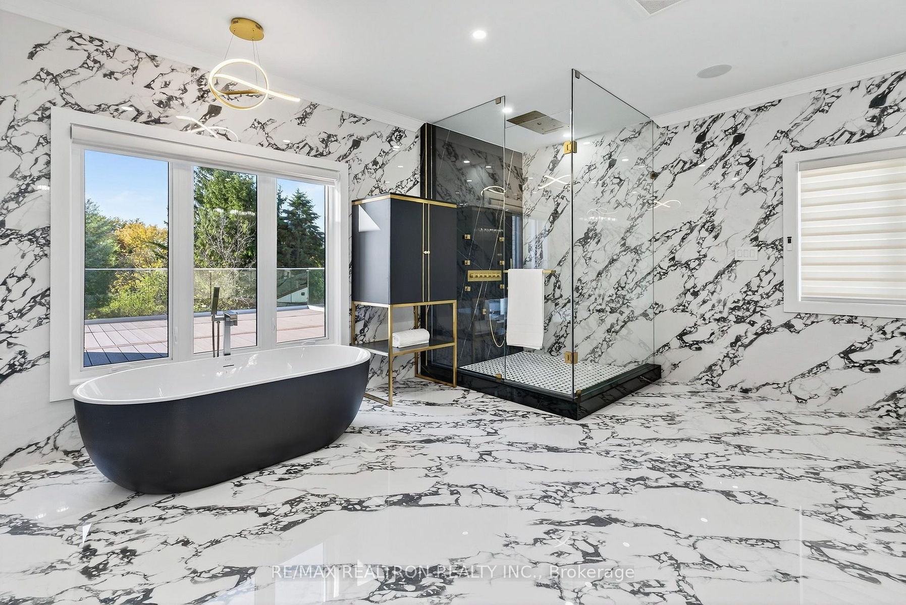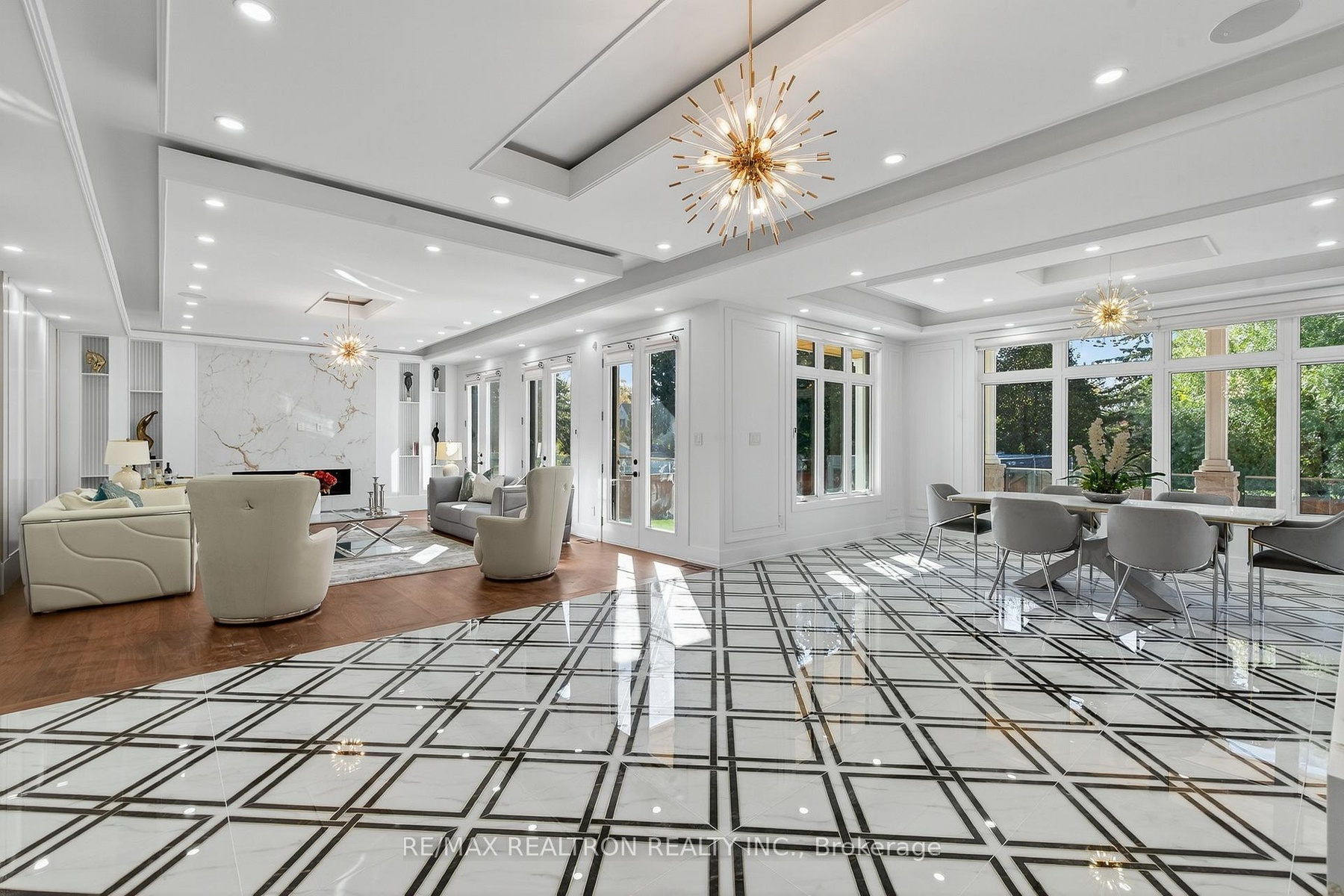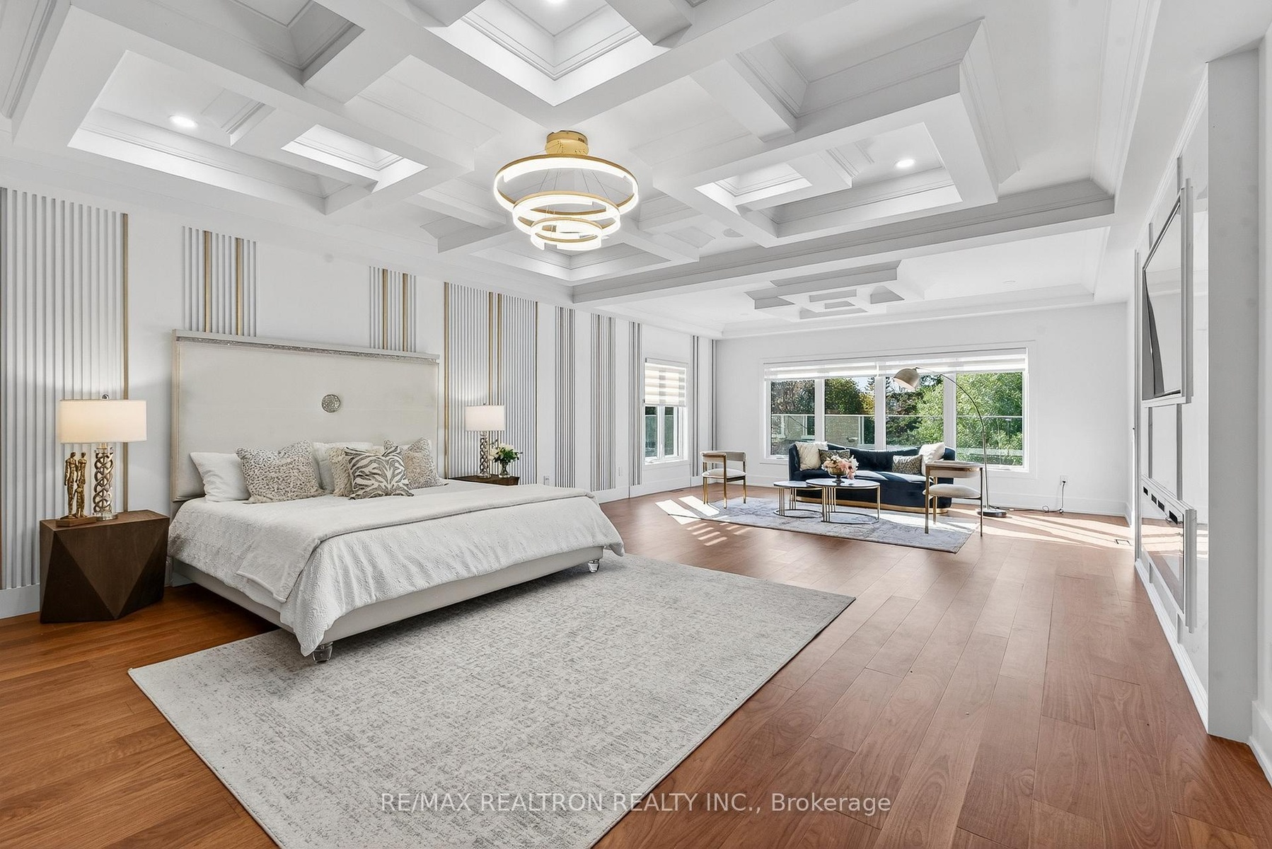 Welcome to an Exquisite Luxury Estate in the Prestigious Heart of King City! Experience the perfect blend of sophistication, craftsmanship, & modern luxury in this custom-built masterpiece, nestled on approximately 0.5 acres of beautifully landscaped grounds. Boasting nearly 11,000 sq.ft. of exceptional living space, this home defines elegance at every turn. Step inside to discover grand 10'ceilings, & a spectacular skylight with artistic interior painting, expansive floor-to-ceiling windows, & breathtaking views from every angle. The elegant living, dining, & family rooms, along with the primary suite & lower level, are enhanced with built-in speakers for a seamless whole-home audio experience. At the heart of the home lies a stunning custom kitchen equipped with Wolf and Sub-Zero appliances, Bosch dishwasher, and a sleek pot filler. A spacious walk-in pantry and a separate fully equipped dirty kitchen with stainless-steel refrigerator, cooktop, and dishwasher provide unmatched functionality and convenience for everyday living and entertaining. The opulent primary suite offers a spa-inspired 7-piece ensuite, a custom W-in closet, beautifully detailed ceiling design, a cozy fireplace, & a private terrace. Each additional bedroom features a walk-in or double closet and its own luxurious ensuite bathroom. The upper level also includes a laundry room with access to a private terrace. this home is fully integrated with Smart Home Technology fo lighting, climate, & security. The finished walk-up basement (9' ceilings) features a sophisticated living area, Gym, sauna, Theatre Room, 2 bedrooms one with a 4-piece ensuite, & a huge built-in wine cellar-a connoisseur's dream. Outdoors, induge in a heated saltwater pool complimented by an adjustable cabana, creating the perfect setting for relaxation & entertaining. Comfort continues with heated floors throughout all bathrooms and the lower level. The property also features an office and a 4-car built-in garage.