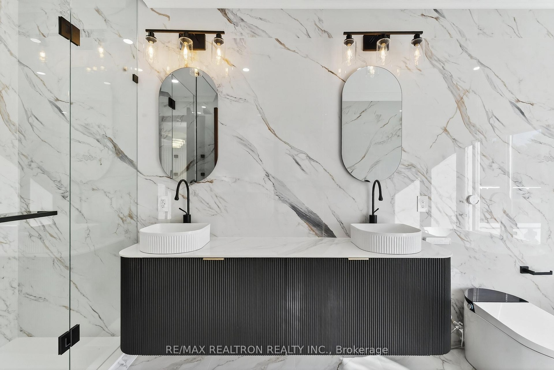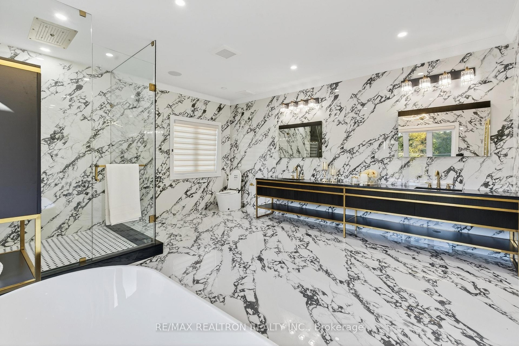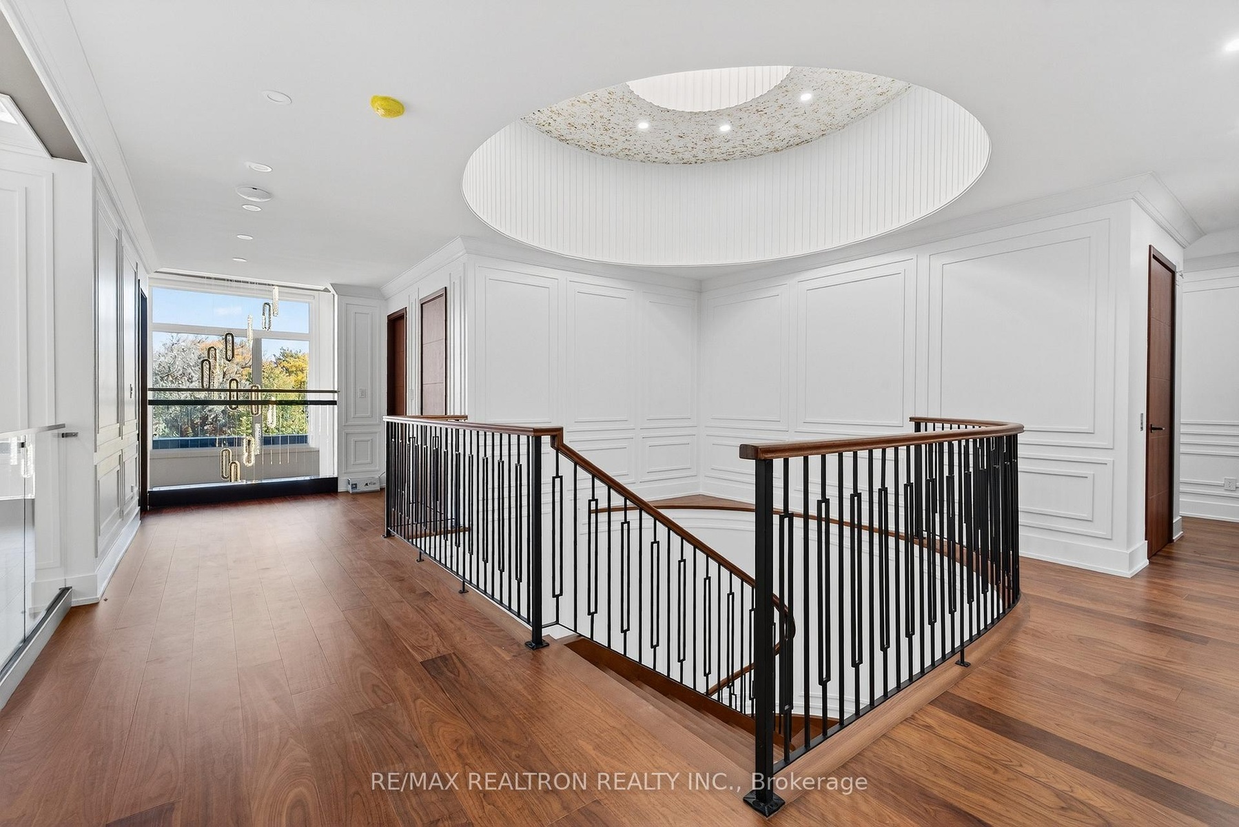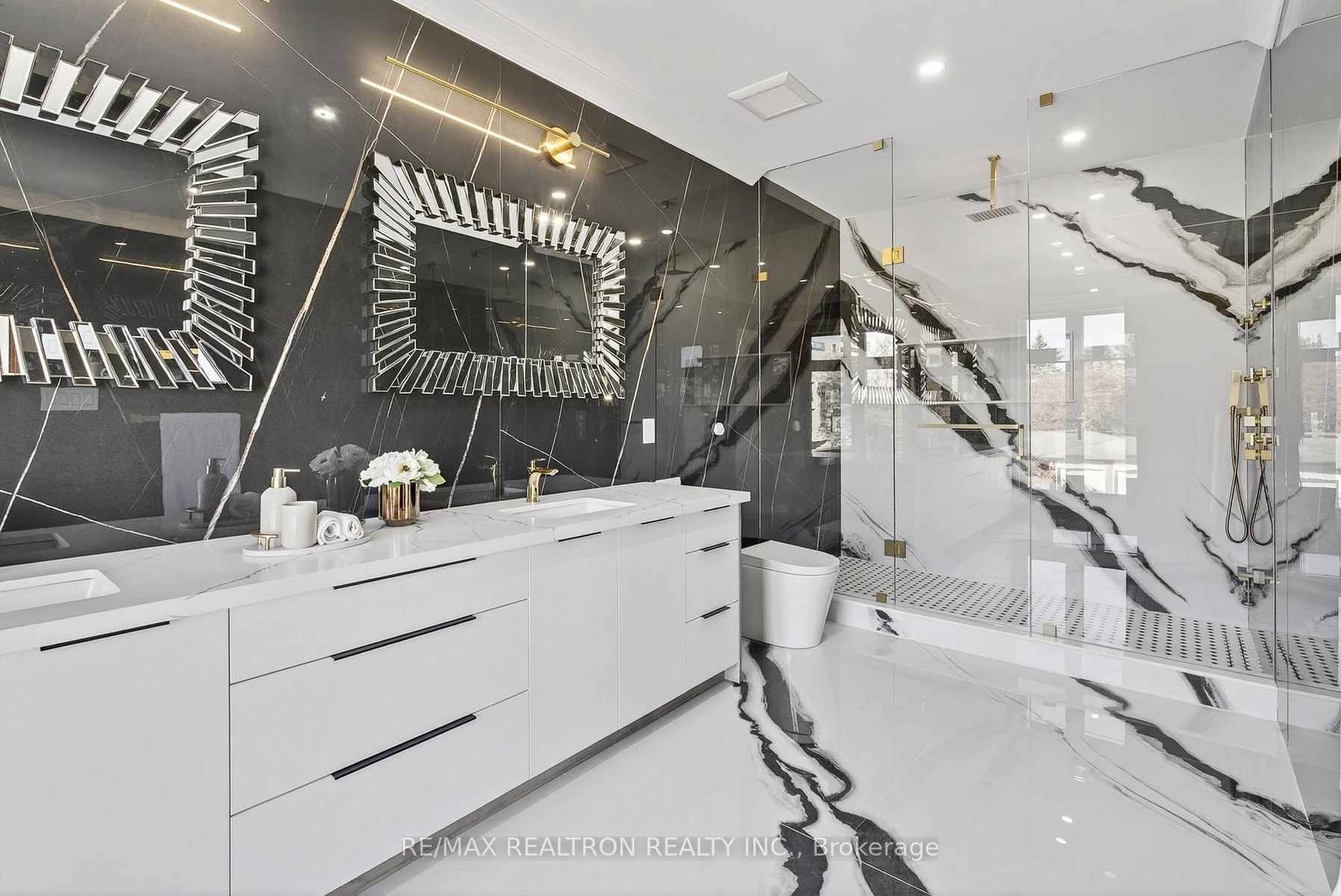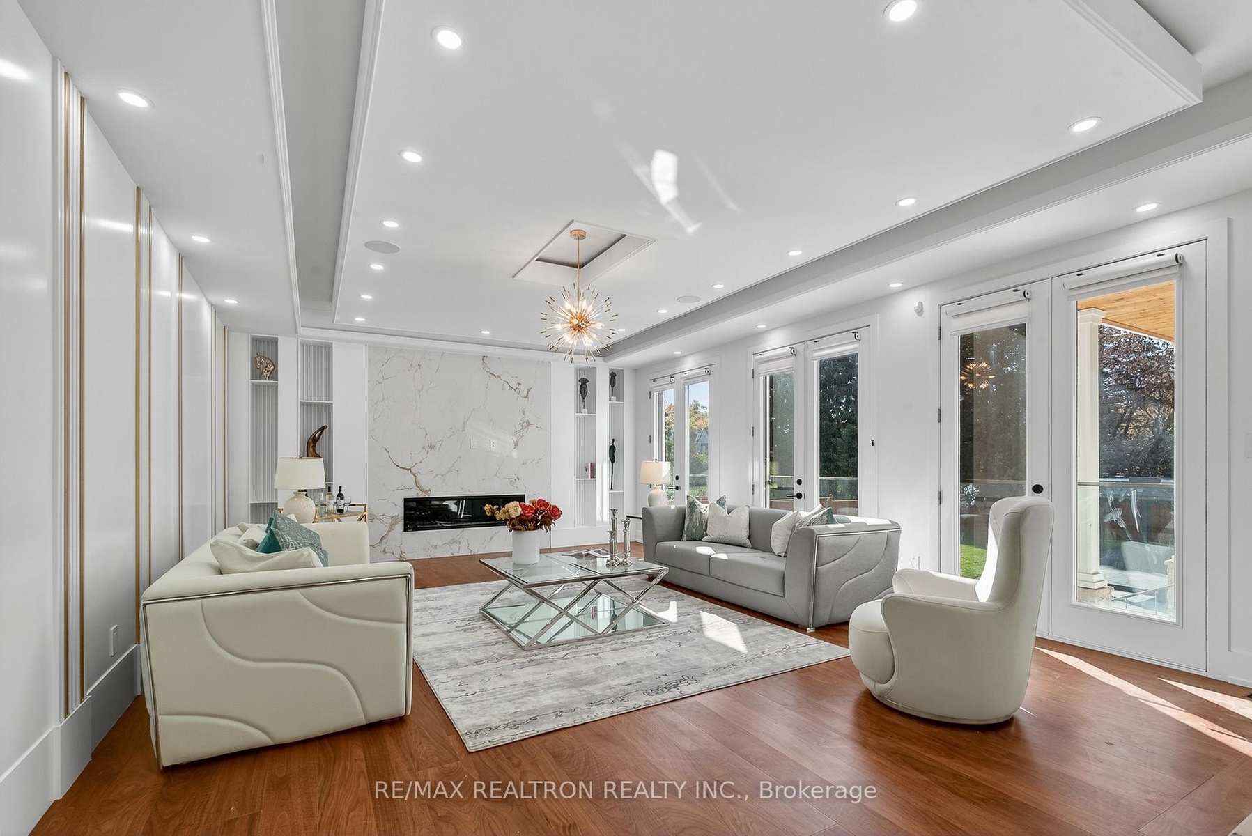 Welcome to an Exquisite Luxury Estate in the Prestigious Heart of King City! Experience the perfect blend of sophistication, craftsmanship, & modern luxury in this custom-built masterpiece, nestled on approximately 0.5 acres of beautifully landscaped grounds. Boasting nearly 11,000 sq.ft. of exceptional living space, this home defines elegance at every turn. Step inside to discover grand 10'ceilings, & a spectacular skylight with artistic interior painting, expansive floor-to-ceiling windows, & breathtaking views from every angle. The elegant living, dining, & family rooms, along with the primary suite & lower level, are enhanced with built-in speakers for a seamless whole-home audio experience. At the heart of the home lies a stunning custom kitchen equipped with Wolf and Sub-Zero appliances, Bosch dishwasher, and a sleek pot filler. A spacious walk-in pantry and a separate fully equipped dirty kitchen with stainless-steel refrigerator, cooktop, and dishwasher provide unmatched functionality and convenience for everyday living and entertaining. The opulent primary suite offers a spa-inspired 7-piece ensuite, a custom W-in closet, beautifully detailed ceiling design, a cozy fireplace, & a private terrace. Each additional bedroom features a walk-in or double closet and its own luxurious ensuite bathroom. The upper level also includes a laundry room with access to a private terrace. this home is fully integrated with Smart Home Technology fo lighting, climate, & security. The finished walk-up basement (9' ceilings) features a sophisticated living area, Gym, sauna, Theatre Room, 2 bedrooms one with a 4-piece ensuite, & a huge built-in wine cellar-a connoisseur's dream. Outdoors, induge in a heated saltwater pool complimented by an adjustable cabana, creating the perfect setting for relaxation & entertaining. Comfort continues with heated floors throughout all bathrooms and the lower level. The property also features an office and a 4-car built-in garage.