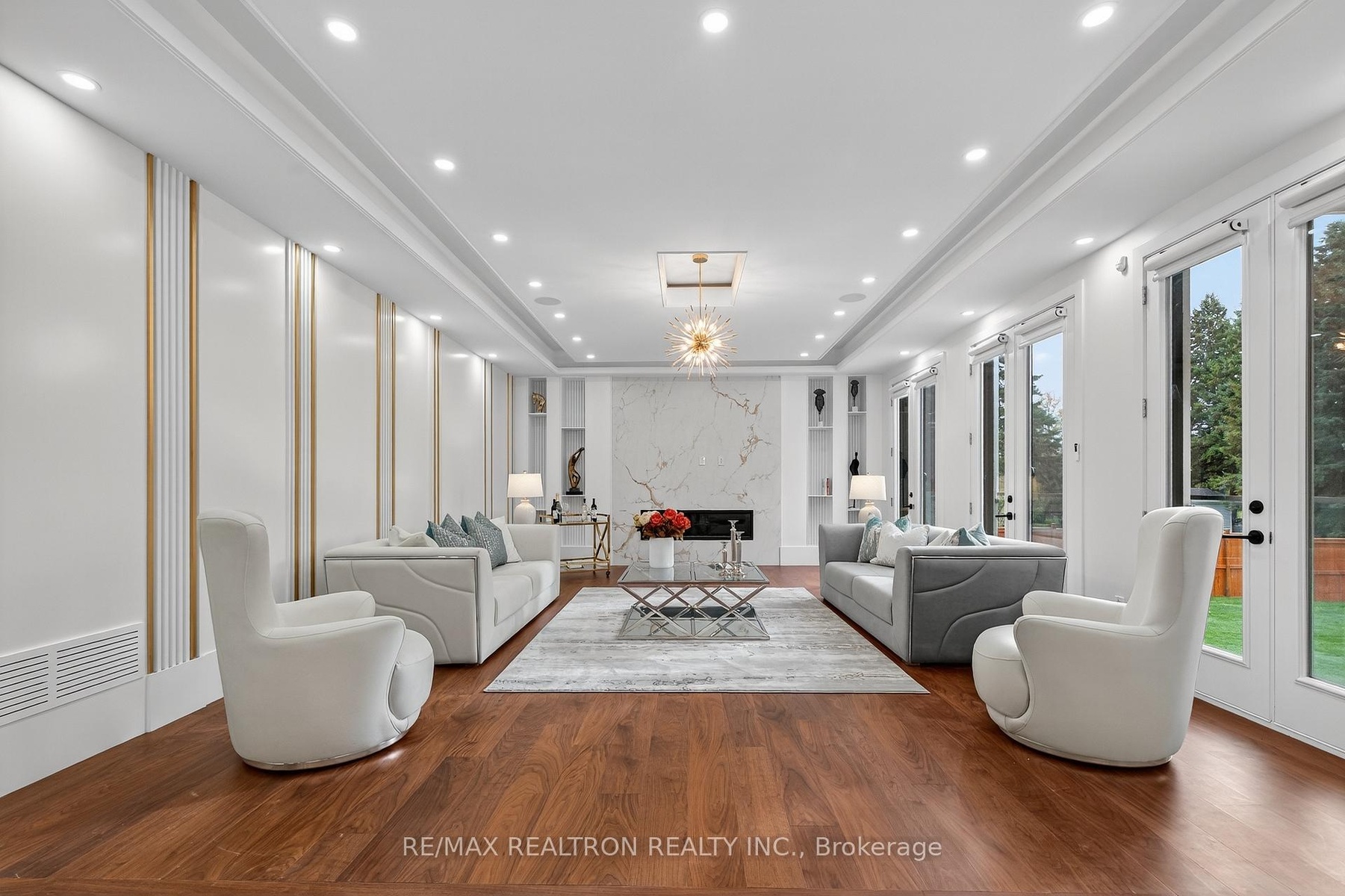 Welcome to an Exquisite Luxury Estate in the Prestigious Heart of King City! Experience the perfect blend of sophistication, craftsmanship, & modern luxury in this custom-built masterpiece, nestled on approximately 0.5 acres of beautifully landscaped grounds. Boasting nearly 11,000 sq.ft. of exceptional living space, this home defines elegance at every turn. Step inside to discover grand 10'ceilings, & a spectacular skylight with artistic interior painting, expansive floor-to-ceiling windows, & breathtaking views from every angle. The elegant living, dining, & family rooms, along with the primary suite & lower level, are enhanced with built-in speakers for a seamless whole-home audio experience. At the heart of the home lies a stunning custom kitchen equipped with Wolf and Sub-Zero appliances, Bosch dishwasher, and a sleek pot filler. A spacious walk-in pantry and a separate fully equipped dirty kitchen with stainless-steel refrigerator, cooktop, and dishwasher provide unmatched functionality and convenience for everyday living and entertaining. The opulent primary suite offers a spa-inspired 7-piece ensuite, a custom W-in closet, beautifully detailed ceiling design, a cozy fireplace, & a private terrace. Each additional bedroom features a walk-in or double closet and its own luxurious ensuite bathroom. The upper level also includes a laundry room with access to a private terrace. this home is fully integrated with Smart Home Technology fo lighting, climate, & security. The finished walk-up basement (9' ceilings) features a sophisticated living area, Gym, sauna, Theatre Room, 2 bedrooms one with a 4-piece ensuite, & a huge built-in wine cellar-a connoisseur's dream. Outdoors, induge in a heated saltwater pool complimented by an adjustable cabana, creating the perfect setting for relaxation & entertaining. Comfort continues with heated floors throughout all bathrooms and the lower level. The property also features w/high ceiling Garage w/option of adding hoist.