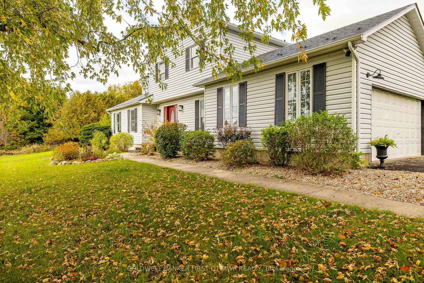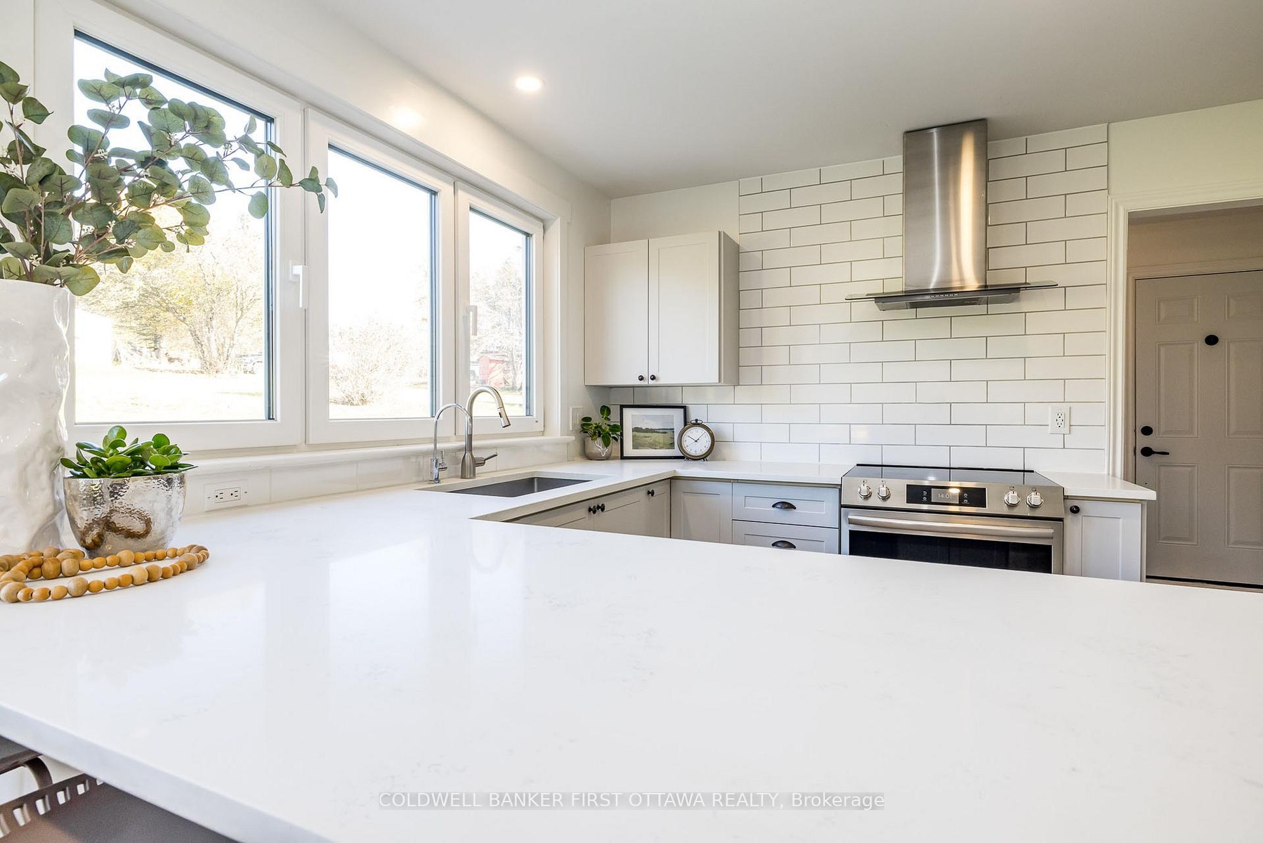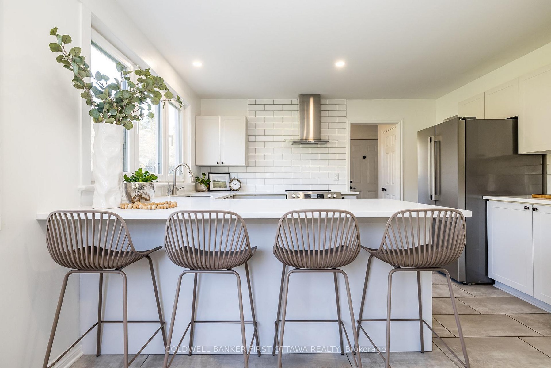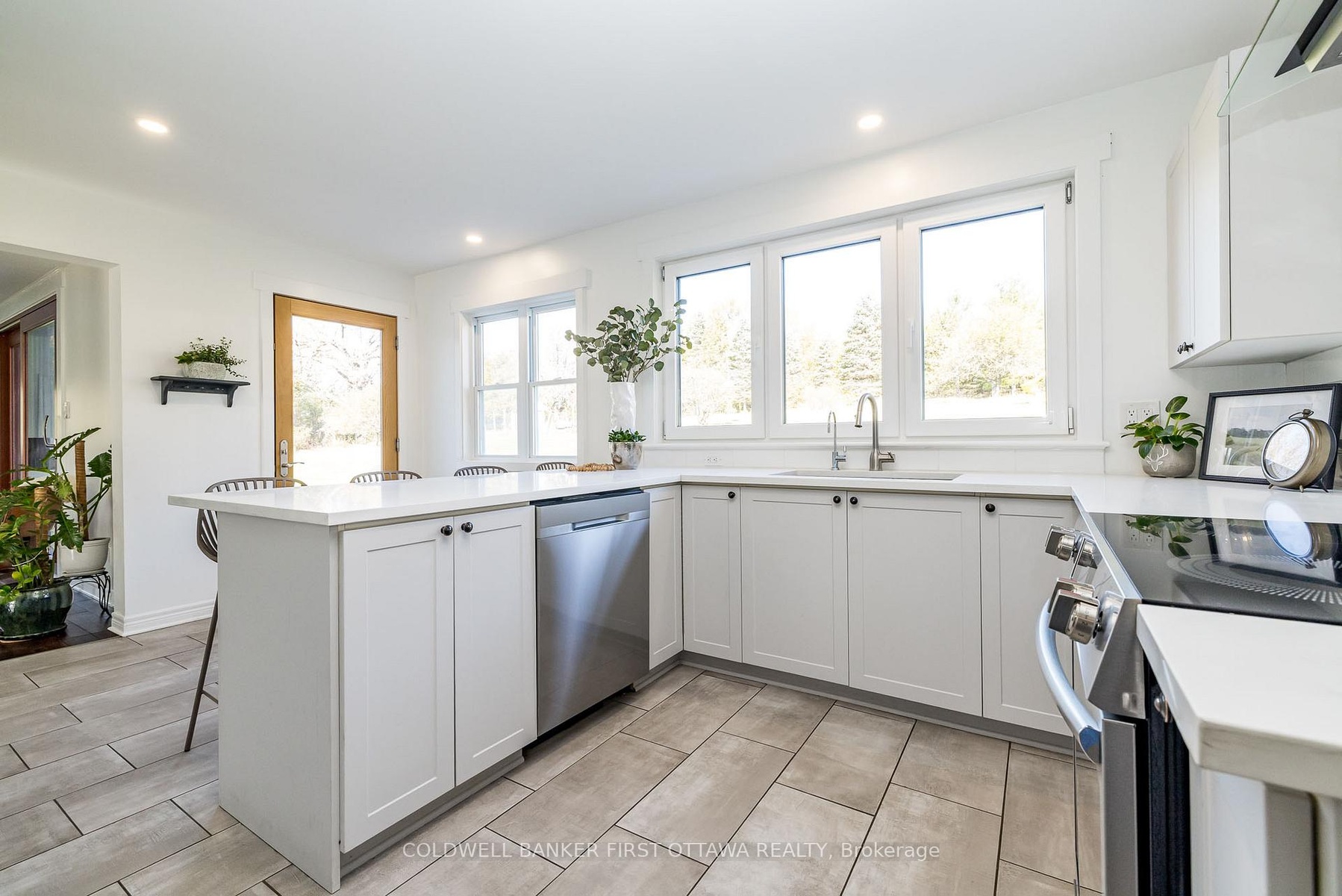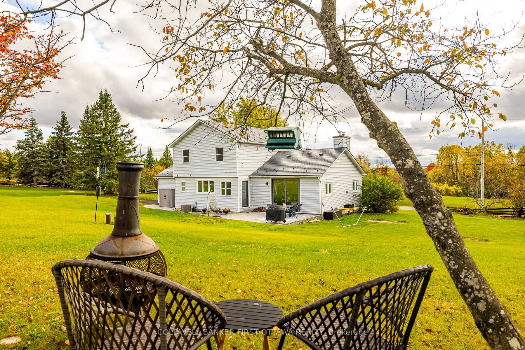 Welcome to this beautifully updated 4-bedroom family home on a treed and landscaped corner lot in the desirable country neighbourhood of Manion Heights. Enjoy the peaceful setting with southwest exposure and stunning sunset views, just minutes from Stittsville, Kanata, Almonte, and Carp.Inside, the spacious layout features large living and family rooms, each with a cozy fireplace, ideal for relaxing or entertaining. The updated kitchen showcases new cabinet doors, quartz countertops, a stylish backsplash, and stainless steel appliances, all professionally installed. A separate dining room and a mudroom off the kitchen with direct access to the garage add everyday functionality. Upstairs, the spa-inspired ensuite (2022) offers a luxurious touch off the primary bedroom. The upstairs also features 3 additional bedrooms and a full bathroom. Additional updates include modern flooring and refreshed bathrooms (2018), tilt-and-turn windows (2022), furnace (2019), AC (2016), and a metal roof (2006). The professionally installed interlock patio (2022) creates an inviting outdoor space perfect for entertaining.The unfinished basement provides excellent potential for future customization. A reverse osmosis water system, currently rented for convenience, includes filter replacements and full maintenance service.Move-in ready and meticulously maintained, this home blends country charm, modern updates, and thoughtful design in a truly special setting.