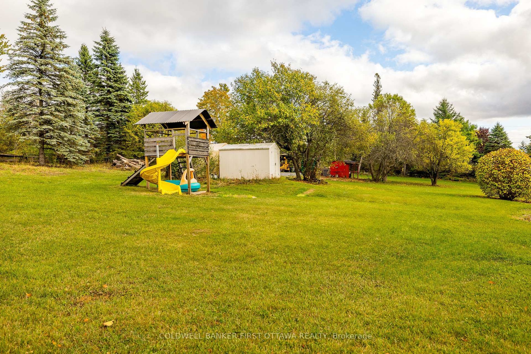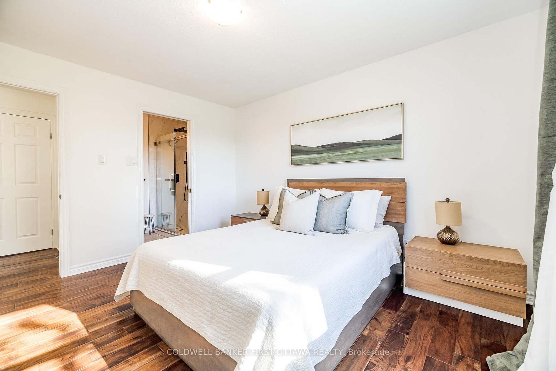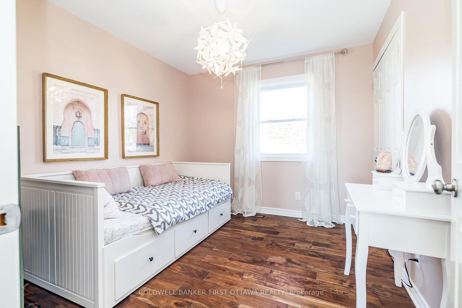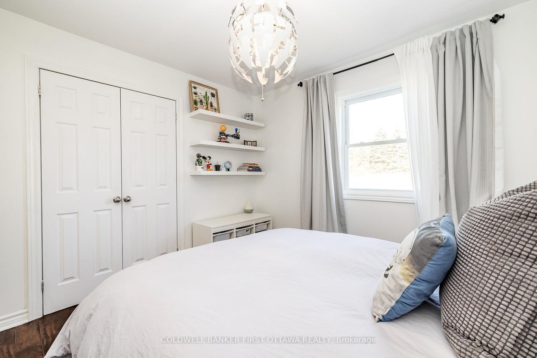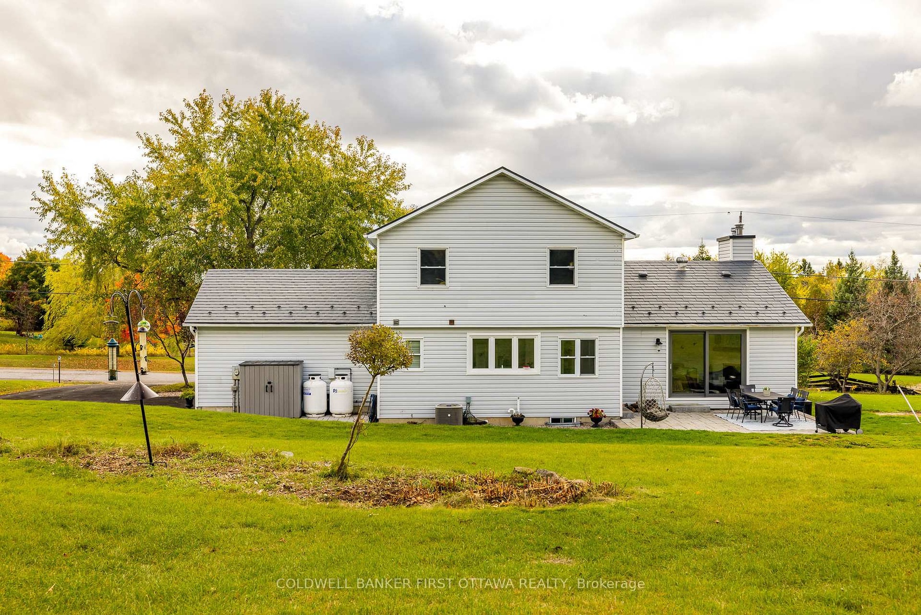 Welcome to this beautifully updated 4-bedroom family home on a treed and landscaped corner lot in the desirable country neighbourhood of Manion Heights. Enjoy the peaceful setting with southwest exposure and stunning sunset views, just minutes from Stittsville, Kanata, Almonte, and Carp.Inside, the spacious layout features large living and family rooms, each with a cozy fireplace, ideal for relaxing or entertaining. The updated kitchen showcases new cabinet doors, quartz countertops, a stylish backsplash, and stainless steel appliances, all professionally installed. A separate dining room and a mudroom off the kitchen with direct access to the garage add everyday functionality. Upstairs, the spa-inspired ensuite (2022) offers a luxurious touch off the primary bedroom. The upstairs also features 3 additional bedrooms and a full bathroom. Additional updates include modern flooring and refreshed bathrooms (2018), tilt-and-turn windows (2022), furnace (2019), AC (2016), and a metal roof (2006). The professionally installed interlock patio (2022) creates an inviting outdoor space perfect for entertaining.The unfinished basement provides excellent potential for future customization. A reverse osmosis water system, currently rented for convenience, includes filter replacements and full maintenance service.Move-in ready and meticulously maintained, this home blends country charm, modern updates, and thoughtful design in a truly special setting.