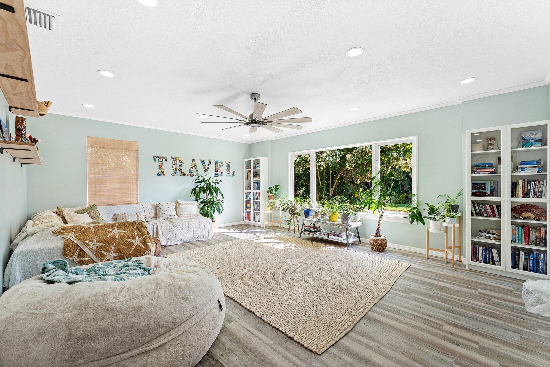 Your dream home is just a lease away! Welcome to the bucolic charm of Palm Beach Country Estates, where this exceptional property awaits. Situated on over an acre of fully fenced land, this beautifully maintained home offers 3 bedrooms (optional 4th) and 2 full bathrooms, along with an impressive 6-car detached garage/workshop, perfect for car enthusiasts, hobbyists, or extra storage. Step onto the inviting covered front porch and into a spacious open-concept floor plan designed for both comfort and entertaining. The chef-inspired kitchen offers ample counter space, ideal for hosting gatherings and creating memorable meals. Enjoy outdoor living at its finest on this expansive property with plenty of room to relax or play. Annual Rental Only-Lawn Care included in rent. Available 2/1/26.